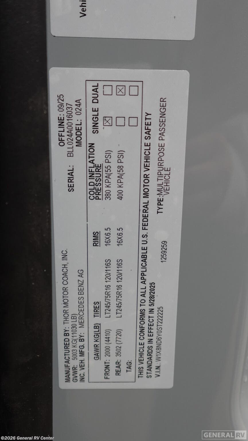 Request More Info on this 2026 Thor Motor Coach Tranquility 24A Offered for sale by General RV Center