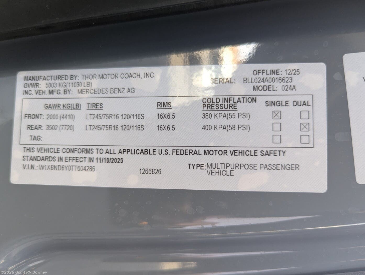 Request More Info on this 2026 Thor Motor Coach Tranquility 24A Offered for sale by Giant RV