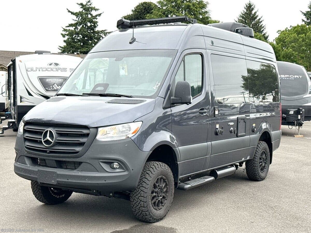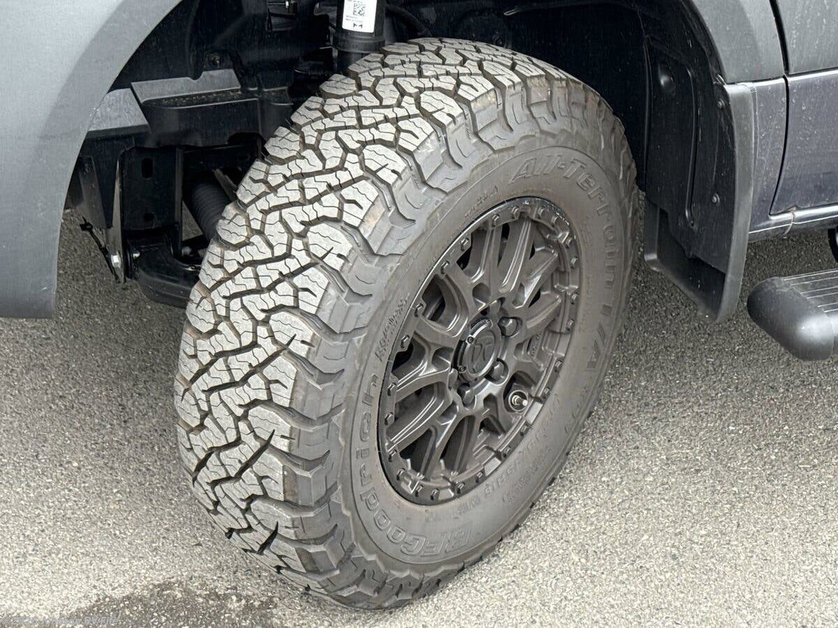 Features Include: 144-inch Wheelbase, 250-Amp Alternator, Black Rims, Off-Road Tires, Attention Assist, Traffic Signe Assist, Keyless Entry System, Sun Visors, Map Lights, Cockpit Floor Mat, Dash Applique, Backup Monitor, Side Steps, Side Screen Door, Vinyl Flooring, LED Lighting, Cassette Shades, Sink Cover, Single Handle Faucet, Microwave Oven, Cable TV Ready, Starlink Plug Prep, Enclosed Wet Bath, Sink, Woven Bath Mat, Toilet, 200w Solar Panel, Outdoor Solar Plug, Sewer Hose, Roof Access Ladder