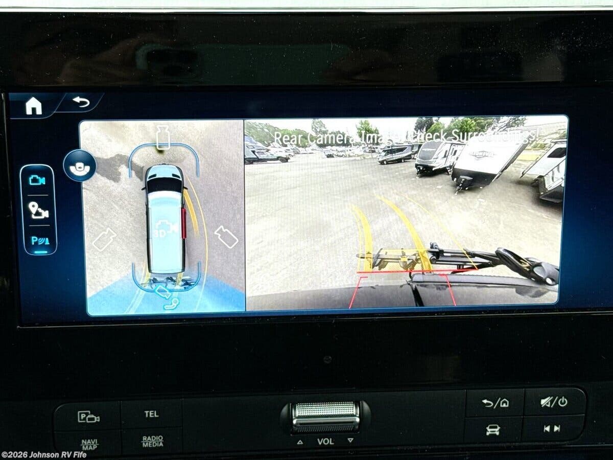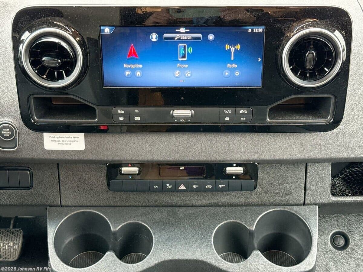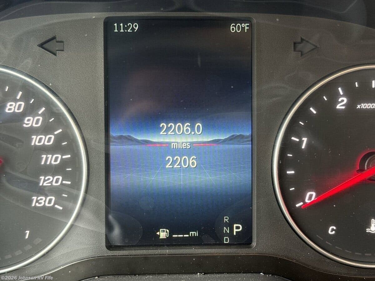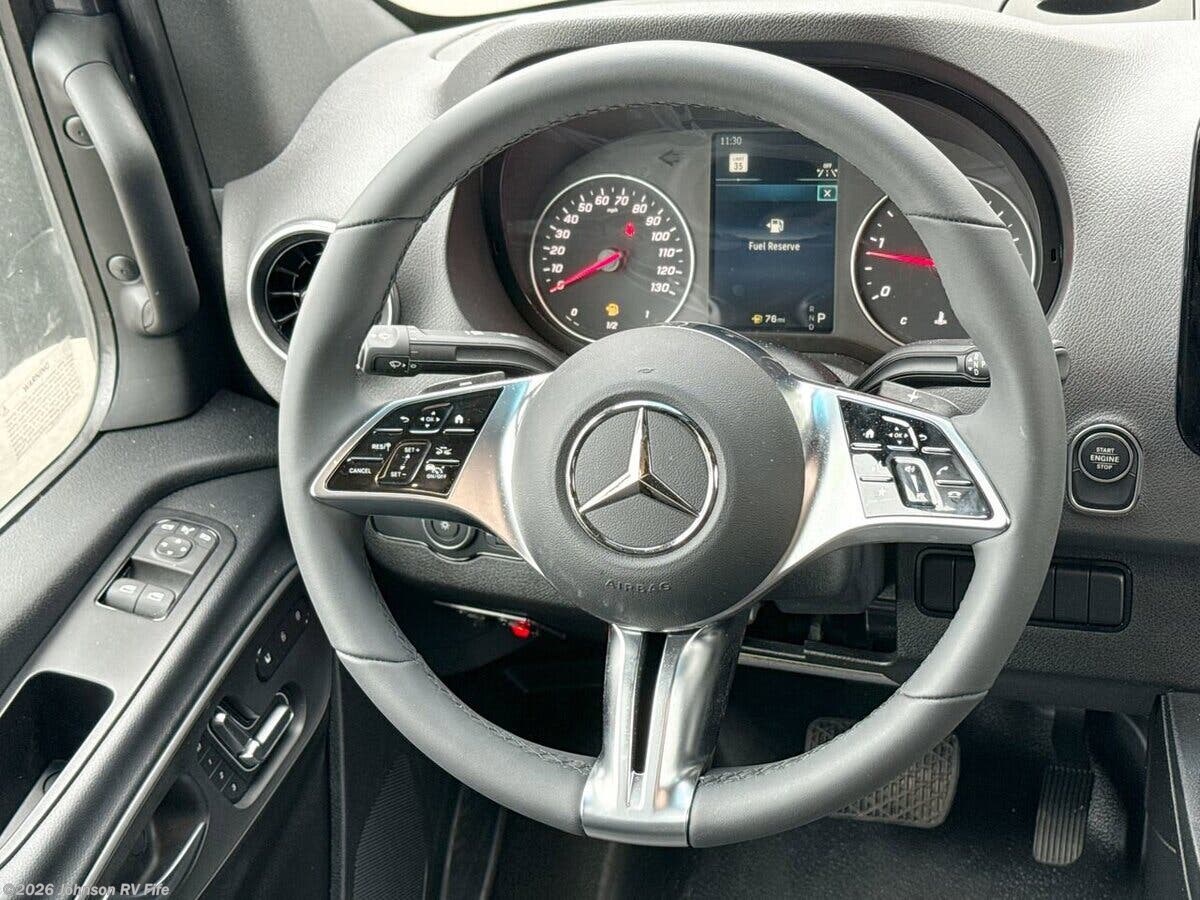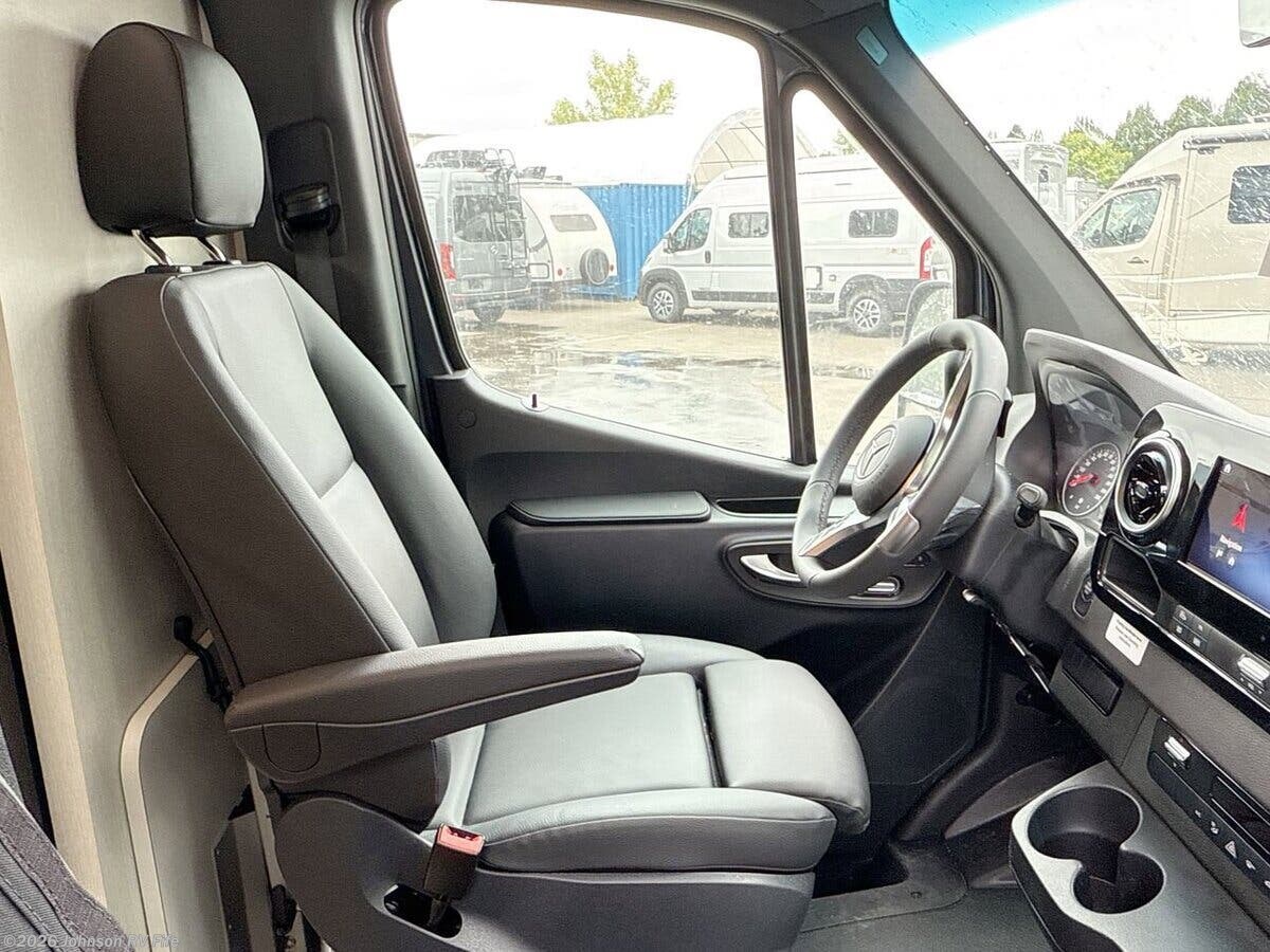 The 2026 Thor Motor Coach Tranquility 2500 AWD is a state-of-the-art recreational vehicle designed for adventure seekers who crave both comfort and capability. This Class B RV is built on the robust Mercedes Sprinter 2500 AWD chassis, ensuring a smooth and reliable ride across various terrains. Its 144-inch wheelbase and 2.0L 4-cylinder diesel engine deliver 211 horsepower and 332 lb-ft of torque, making it a powerful yet efficient choice for long journeys. The vehicle is equipped with a 250-amp alternator, black rims, and off-road tires, enhancing its rugged appeal and performance. Additionally, it features a 5000-pound hitch with a 7-pin connector, perfect for towing needs. Safety is a top priority in the Tranquility 2500 AWD, with features such as Attention Assist, Traffic Sign Assist, Active Lane Keeping Assist, and Blind Spot Assist. These systems work together to provide peace of mind on the road, ensuring you and your passengers are protected at all times. The cockpit is designed with convenience and comfort in mind. It includes: - Keyless entry system - Windshield privacy shades - Sun visors and map lights - Swivel captain's chairs with diamond-quilted fabric - Cockpit floor mat - Driver and passenger airbags - Power windows and door locks - Emergency engine start switch - Tilt telescoping steering wheel - Steering wheel audio control buttons - Deluxe heated remote side-mirrors - Backup monitor - Cruise control Inside, the living spaces are thoughtfully designed to maximize comfort and functionality. The RV features a 14-foot armless awning with LED lights, side steps, and a sliding door with an opening window and side screen door. The interior boasts vinyl flooring, a soft-touch vinyl ceiling, well-formed interior wall panels, LED lighting, large opening side windows, cassette shades, and lightweight cabinetry with ball-bearing drawer guides. The second row of heated captain's chairs adds an extra layer of luxury. The dining area is equipped with a pull-out dinette bench that converts into a bed, a solid surface countertop, a stainless steel single bowl sink with a cover, a single-handle faucet, a 12V single-door refrigerator, a one-burner induction cooktop, and a microwave oven. A 12V power ceiling vent ensures proper ventilation. For entertainment and connectivity, the Tranquility 2500 AWD includes: - FireFly multiplex wiring control - LP CO and smoke detectors - Electronics stations with HDMI and USB ports - Cable TV readiness - Starlink plug prep - HS DDS satellite readiness - Winegard ConnecT 2.0 4G WiFi TV antenna - Front overhead flip-down TV - 24-inch smart TV in the living area Sleeping arrangements are versatile, with twin beds featuring the Zomi Bed Sleep System and a fold-out sleeping area. The rear screen door allows for fresh air and a connection to the outdoors. The bathroom is a compact yet functional space, featuring an enclosed wet bath with a sink, deluxe curtain shower, woven bath mat, toilet, and a power vent wall switch. Mechanically, the RV is equipped with a 200W solar panel, solar charge controller, outdoor solar plug, 460Ah lithium battery, battery disconnect switch, 30-amp detachable service cord, 3000W pure sine inverter, auto shoreline to generator transfer, diesel furnace and hot water system, 11K low profile power saver AC, holding tank heat pads, 360 siphon RV holding tank vent, sewer hose, and an outdoor sprayer. The coach build includes a seamless composite deck, rear hitch step and pet tie-down, top mount LED light bar, and a roof access ladder, ensuring durability and ease of use. Overall, the 2026 Thor Motor Coach Tranquility 2500 AWD is a well-rounded RV that combines luxury, safety, and off-road capability, making it an ideal choice for those who love to explore the great outdoors without sacrificing comfort. ??