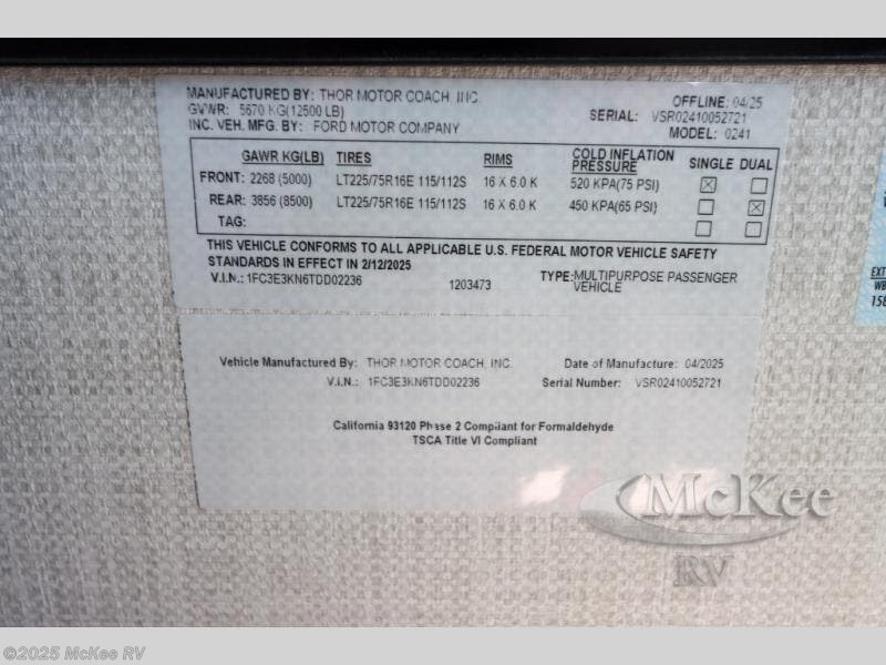 Request More Info on this 2026 Thor Motor Coach Vegas 24.1 Offered for sale by McKee RV
