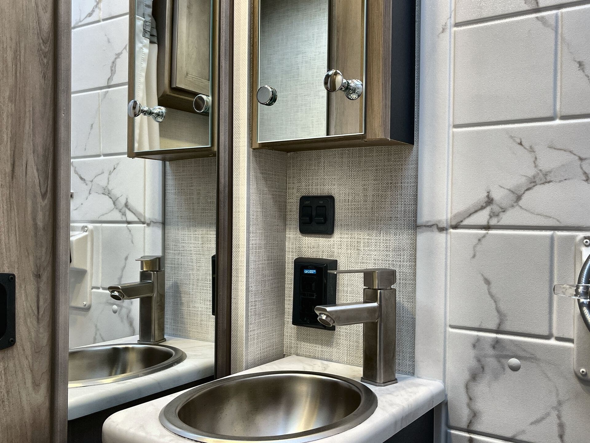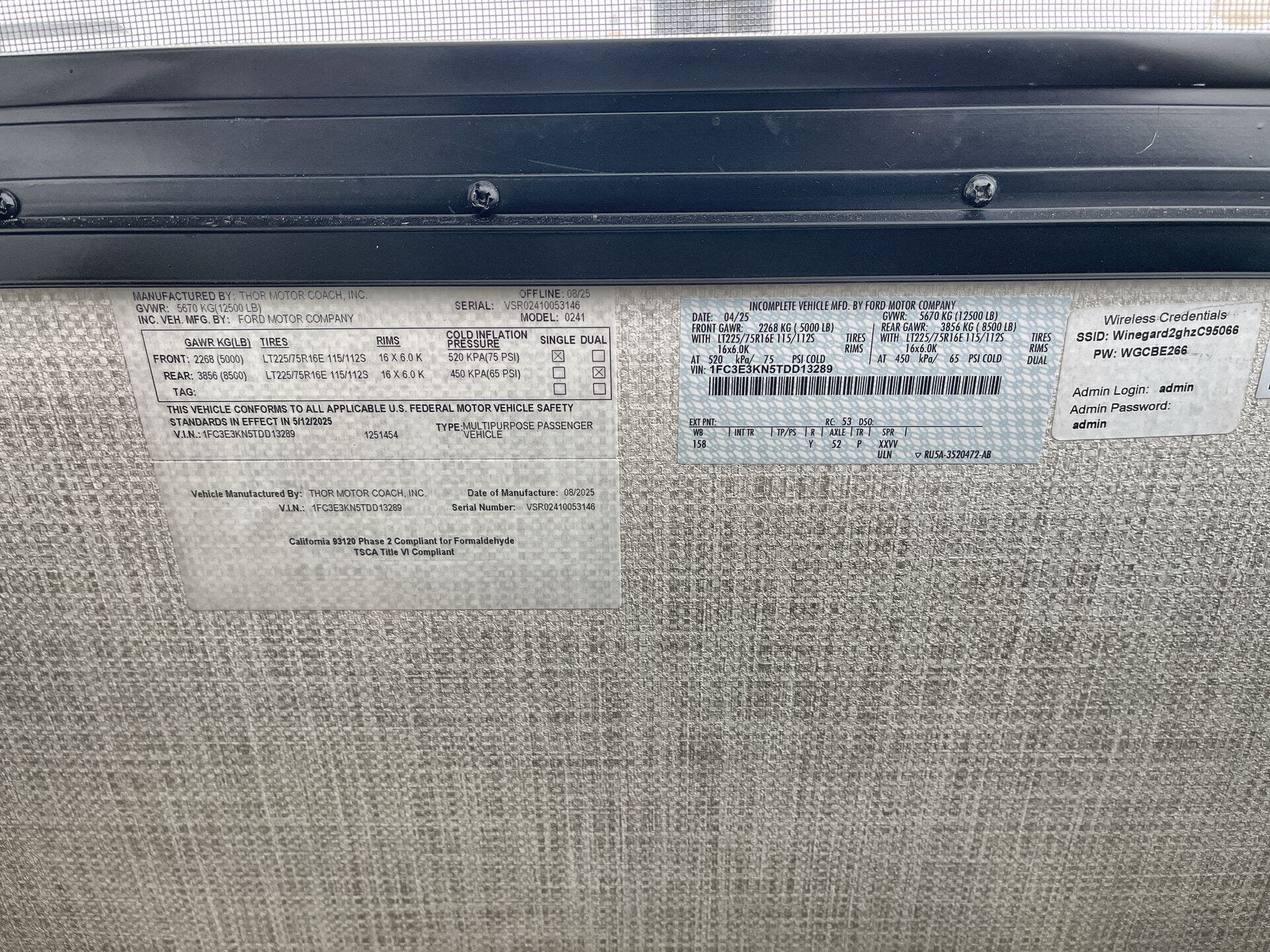 Introducing the all-new 2026 Thor Vegas motorhome, a versatile and comfortable recreational vehicle designed for seamless weekend getaways and longer excursions. Built on the Ford E-Series chassis with a robust 7.3L V8 gas engine delivering 325 horsepower and 450 lb-ft of torque, this Class A motorhome blends easy handling with impressive power. With a GVWR of 12,500 pounds and a hitch rating of 8,000 pounds, Vegas is ready to tow your gear while delivering a smooth ride for up to five travelers.