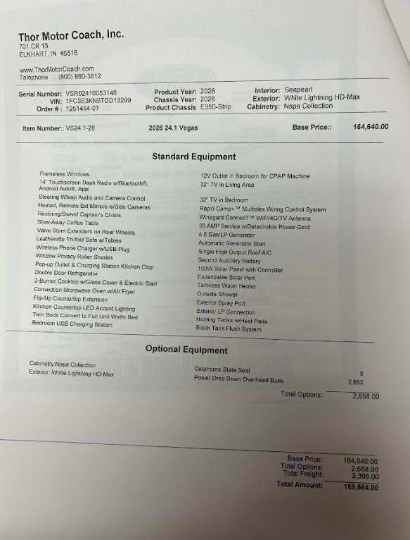 Request More Info on this 2026 Thor Motor Coach Vegas 24.1 Offered for sale by McClain's RV Oklahoma City