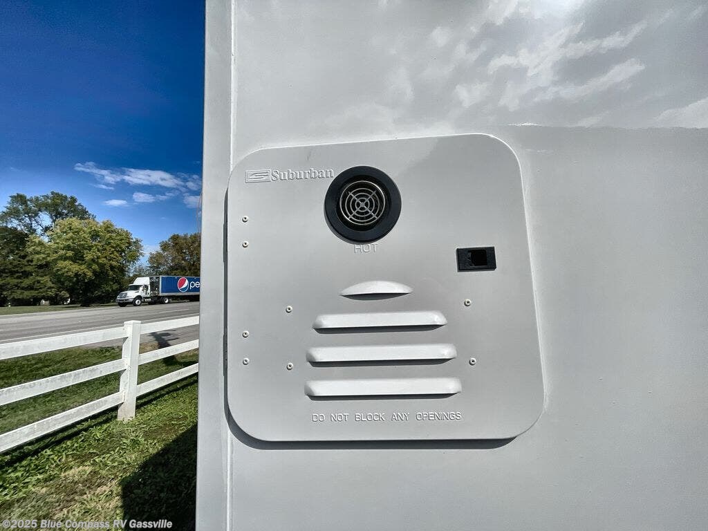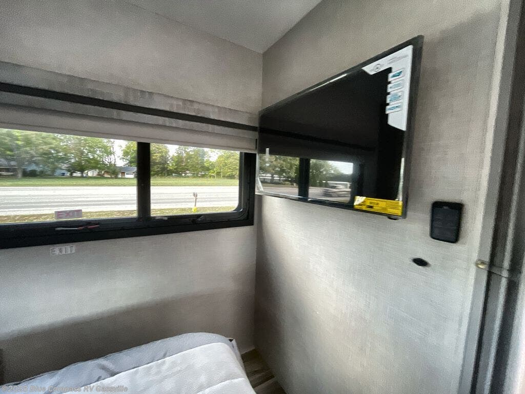 You're going to love the interior and exterior amenities found with this coach! The 73.7 cu. ft. of exterior storage will allow you to bring along hiking and fishing gear, and you can add an optional slide out griddle if you enjoy cooking outdoors. Once you unpack and head inside, you can relax on the theater seating. And a 32" Smart TV is across from the sofa for easy viewing! It will be so easy to prepare meals each day in the kitchen with its two burner gas cooktop and convection microwave with an air fryer, and the 12V double door refrigerator can keep food fresh. You'll appreciate the rear bedroom with a privacy curtain, an RV queen bed, plus dual closets to keep your clothes wrinkle free. This model also includes an independent shower across from the private toilet and sink, allowing two people to freshen up at once!