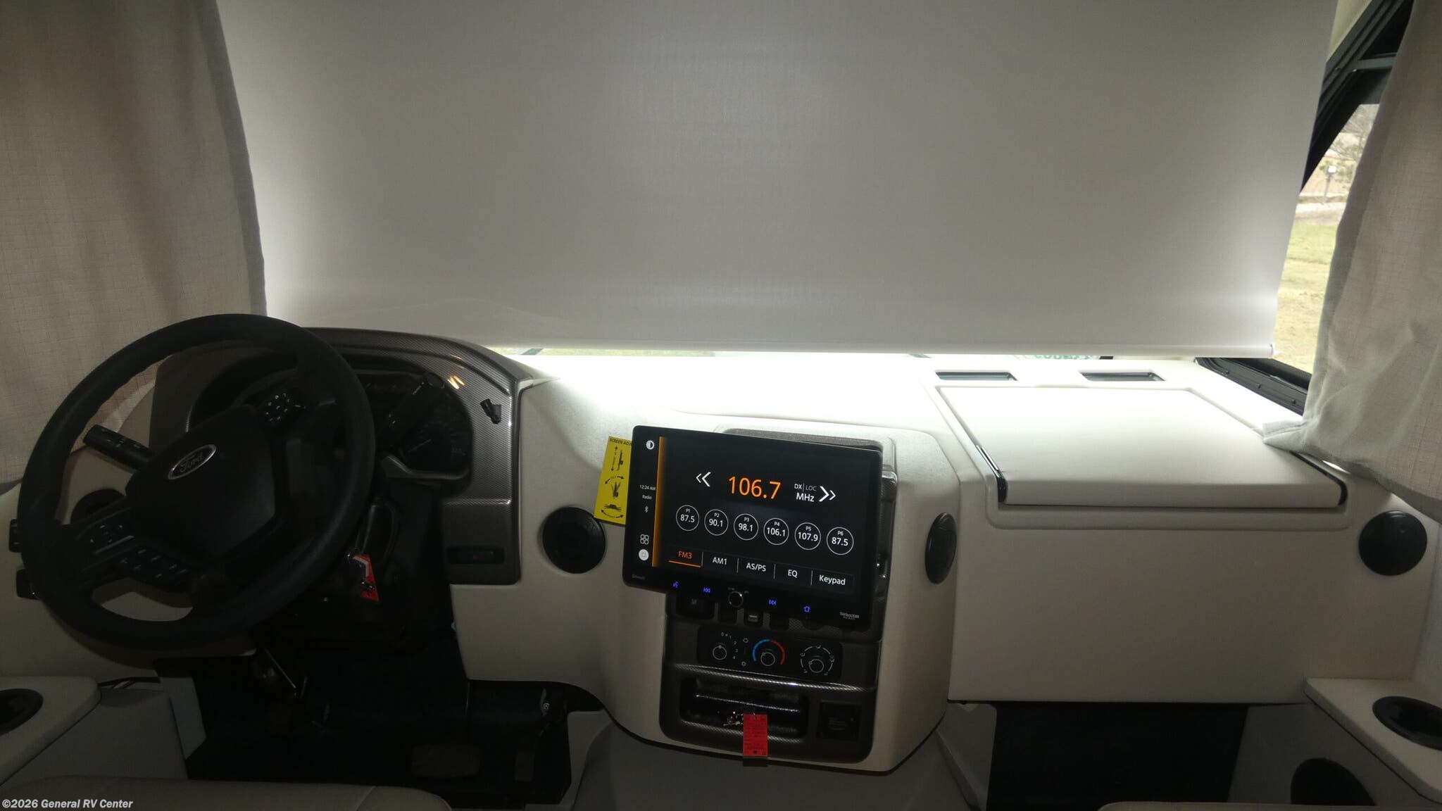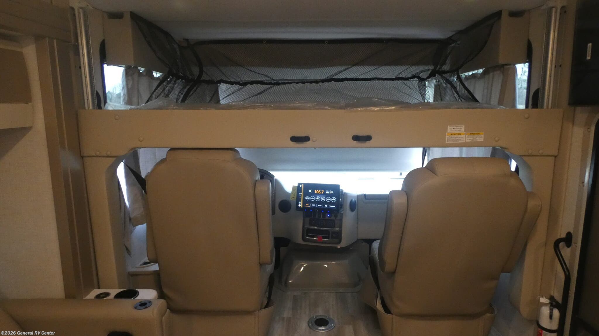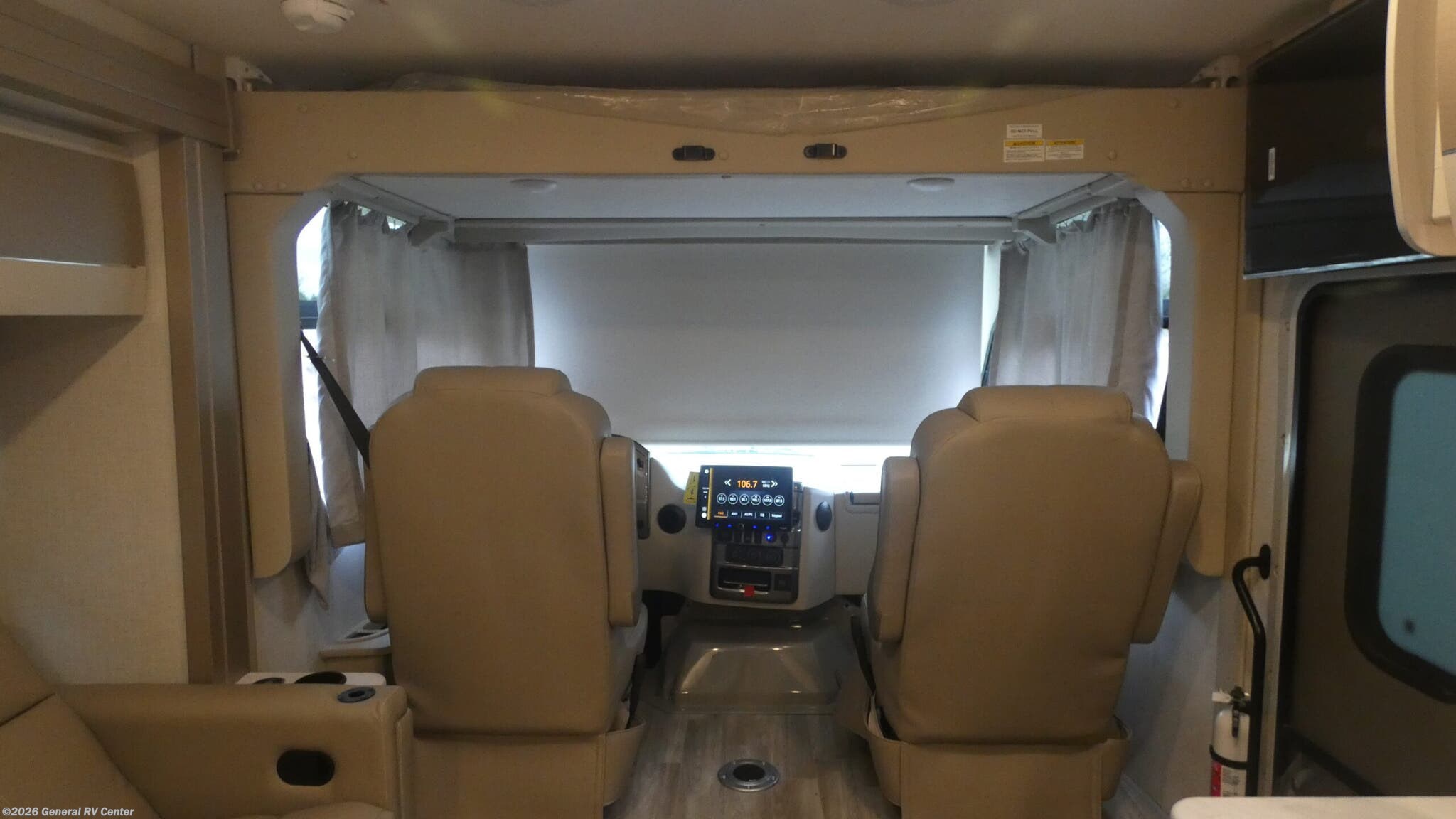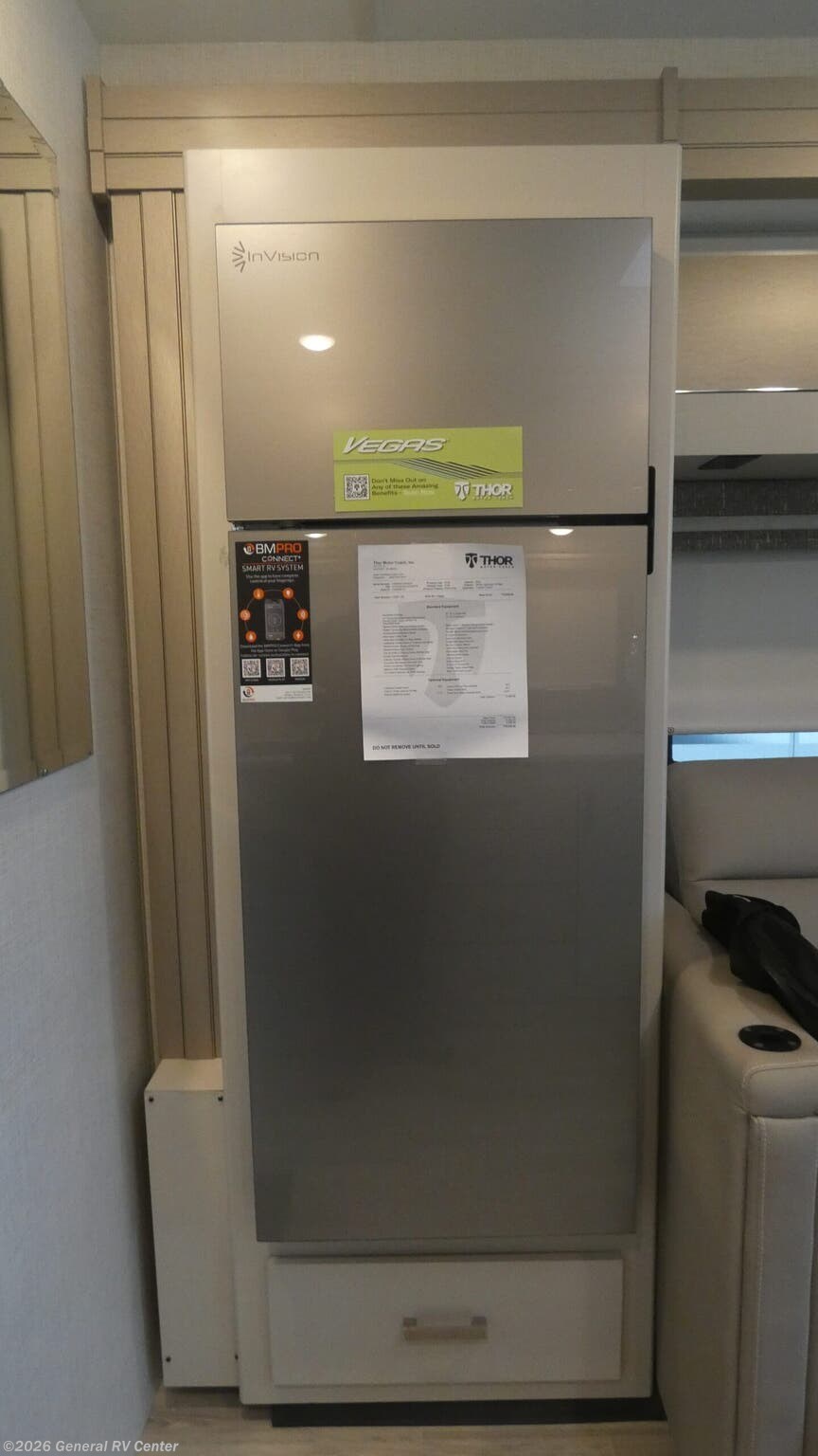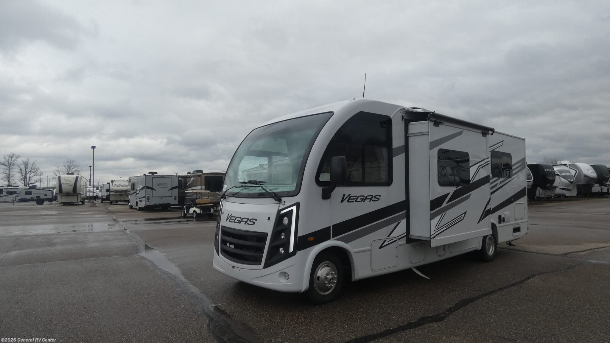 Experience the open road like never before with the 2026 Thor Motor Coach Vegas 26.1. This compact yet spacious RV is designed for comfort and adventure, boasting a sleek 27-foot frame built on a robust Ford E350 chassis. With a powerful 325 horsepower engine and 450 lb-ft of torque, your journey will be smooth and efficient, whether you're navigating city streets or cruising down the highway. The exterior features an 18-foot powered retractable awning, perfect for creating a shaded oasis wherever you park. Inside, the Vegas 26.1 is a marvel of thoughtful design. The front living area offers plush theater seating with a removable pedestal table, ideal for dining or relaxing. The center kitchen is equipped with a mid-size electric refrigerator and a two-burner cooktop, making meal prep a breeze. Retreat to the rear bedroom, where a queen-size bed awaits, flanked by ample closet space for all your travel essentials. The center bath provides convenience with a shower and curtain, ensuring you have all the comforts of home. With a towing capacity of 8,000 pounds, this RV is ready to bring along all your favorite toys for the ride. For more details and to see this beauty in person, visit your nearest General RV dealership.