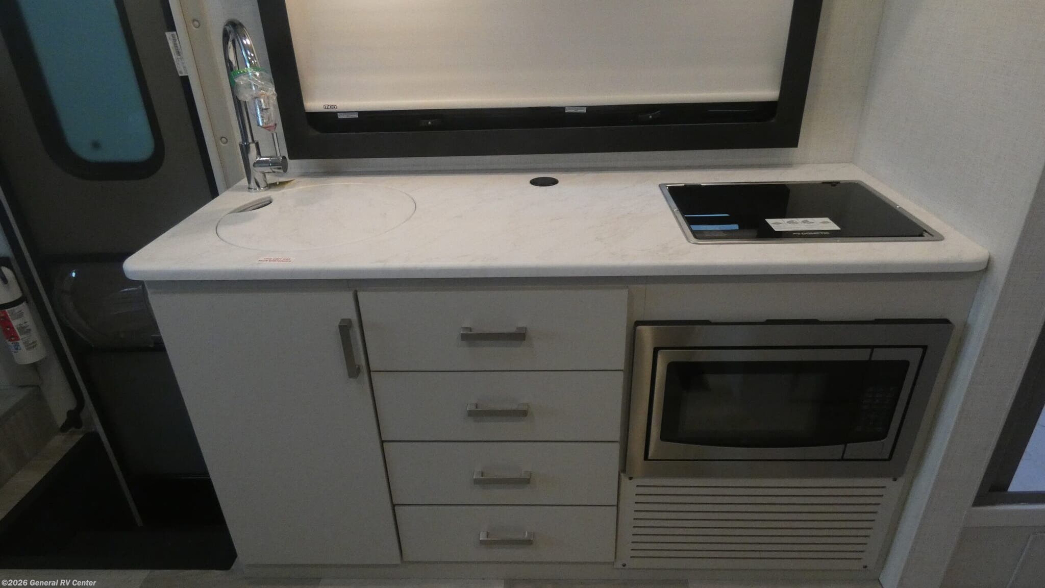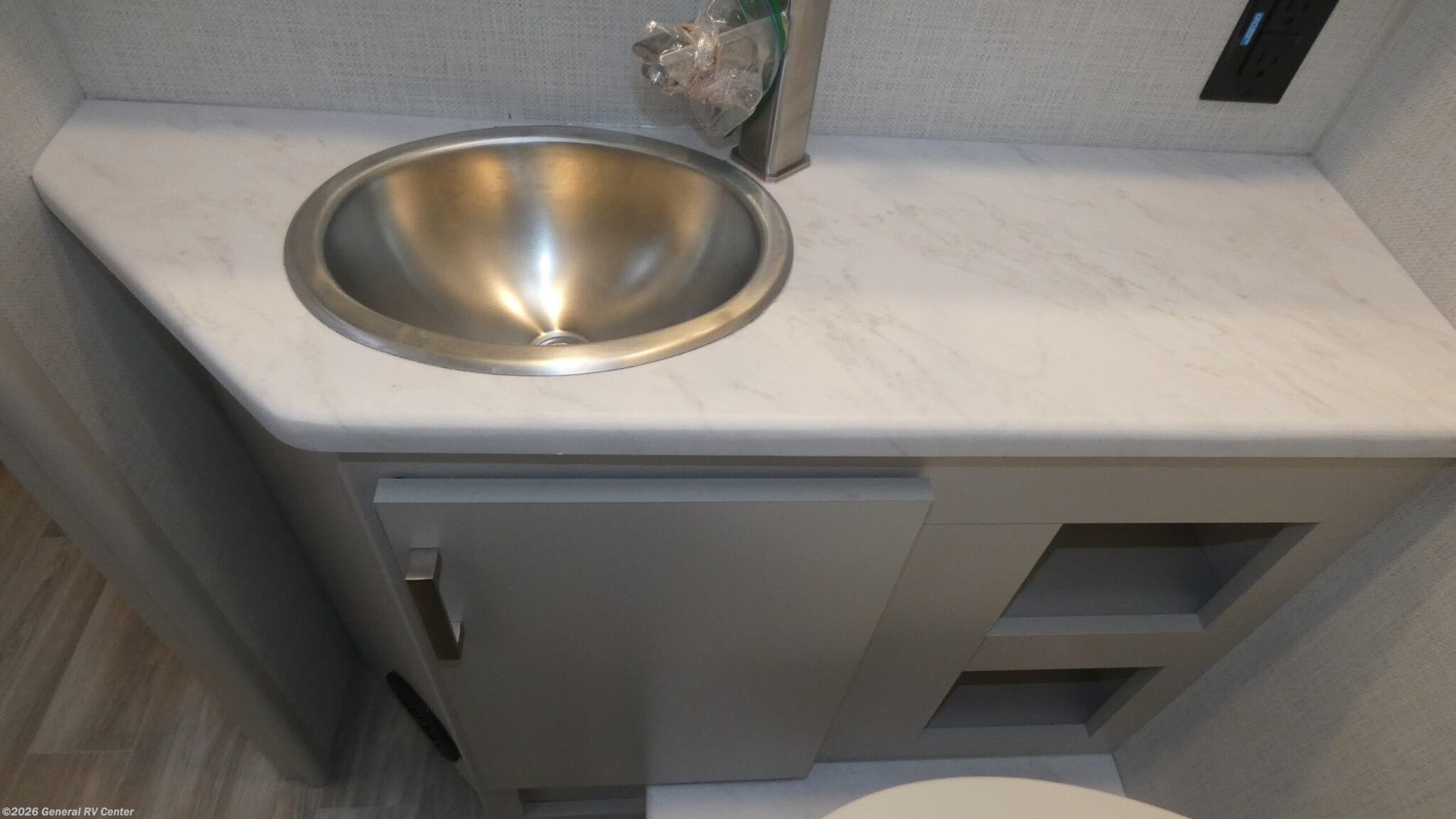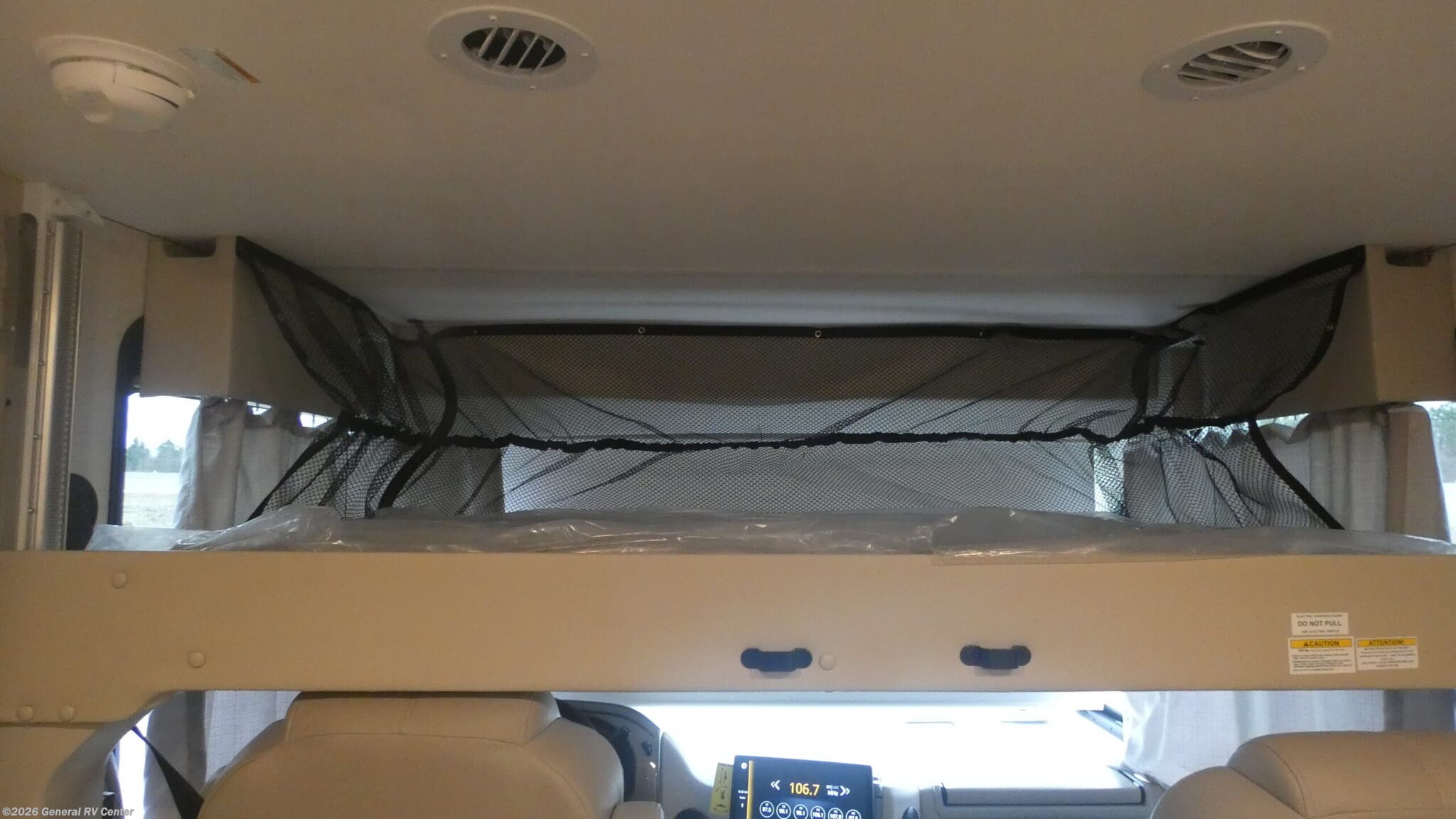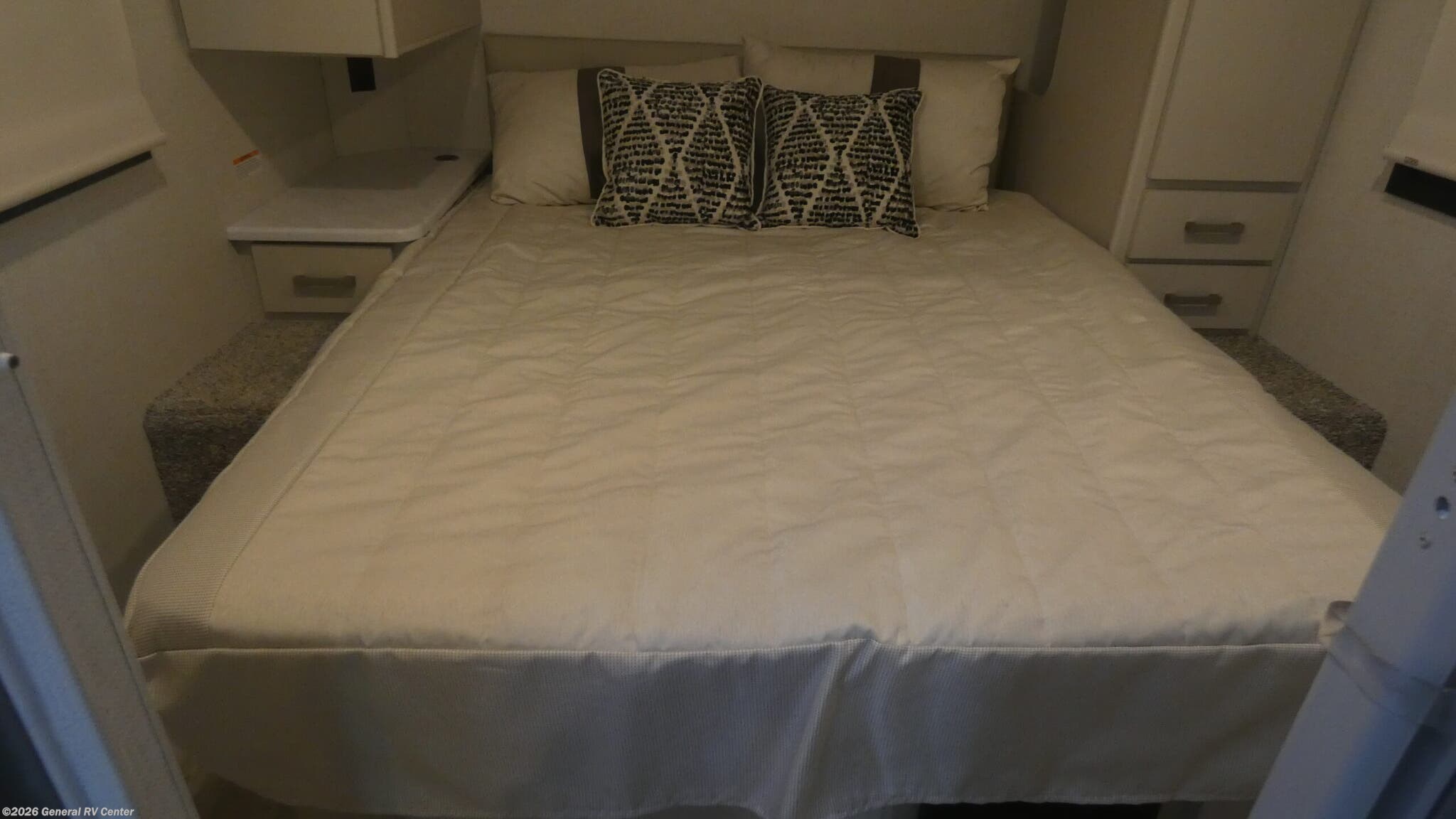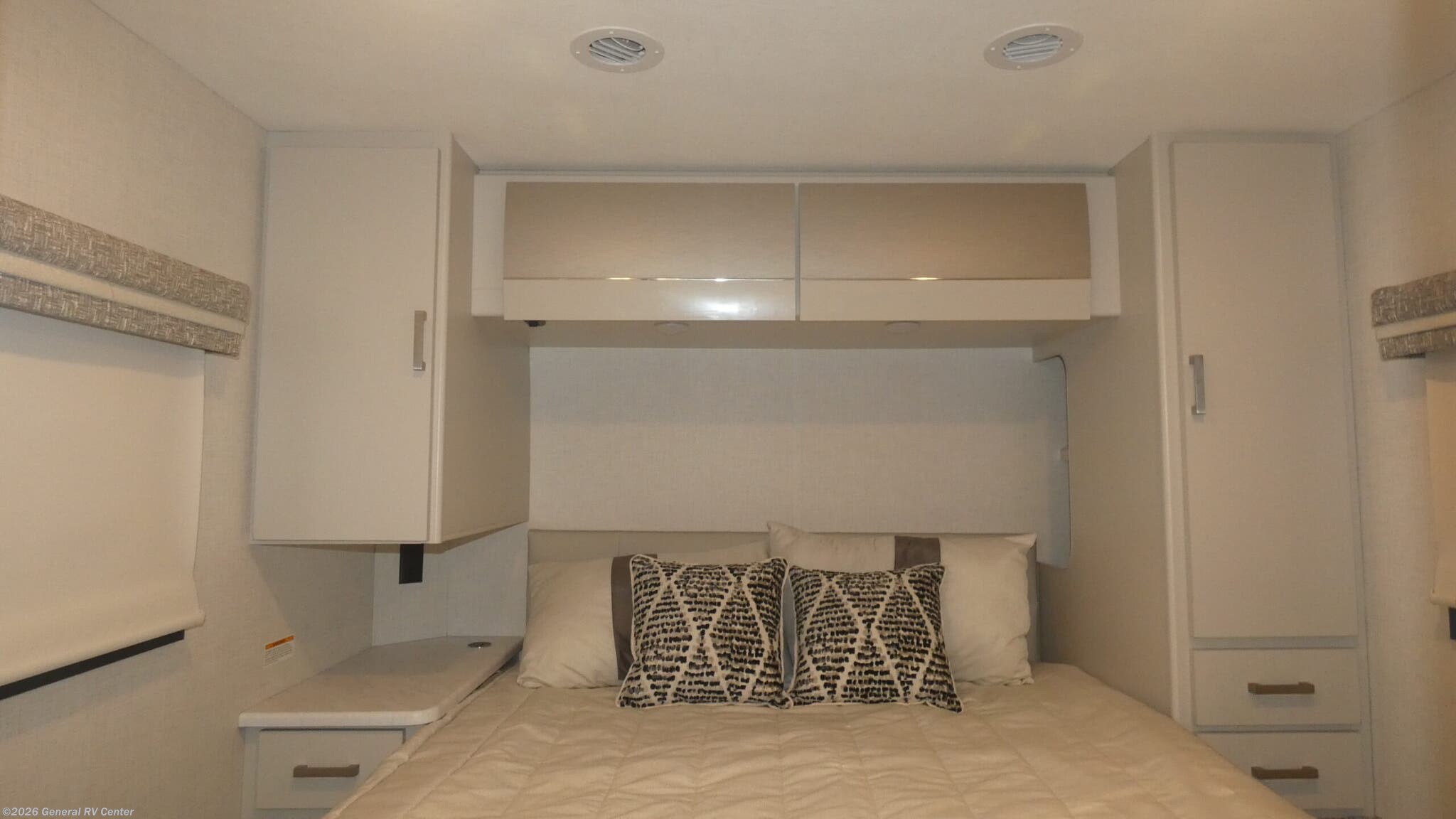 Experience the open road like never before with the 2026 Thor Motor Coach Vegas 26.1. This compact yet spacious RV is designed for comfort and adventure, boasting a sleek 27-foot frame built on a robust Ford E350 chassis. With a powerful 325 horsepower engine and 450 lb-ft of torque, your journey will be smooth and efficient, whether you're navigating city streets or cruising down the highway. The exterior features an 18-foot powered retractable awning, perfect for creating a shaded oasis wherever you park. Inside, the Vegas 26.1 is a marvel of thoughtful design. The front living area offers plush theater seating with a removable pedestal table, ideal for dining or relaxing. The center kitchen is equipped with a mid-size electric refrigerator and a two-burner cooktop, making meal prep a breeze. Retreat to the rear bedroom, where a queen-size bed awaits, flanked by ample closet space for all your travel essentials. The center bath provides convenience with a shower and curtain, ensuring you have all the comforts of home. With a towing capacity of 8,000 pounds, this RV is ready to bring along all your favorite toys for the ride. For more details and to see this beauty in person, visit your nearest General RV dealership.