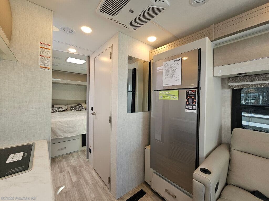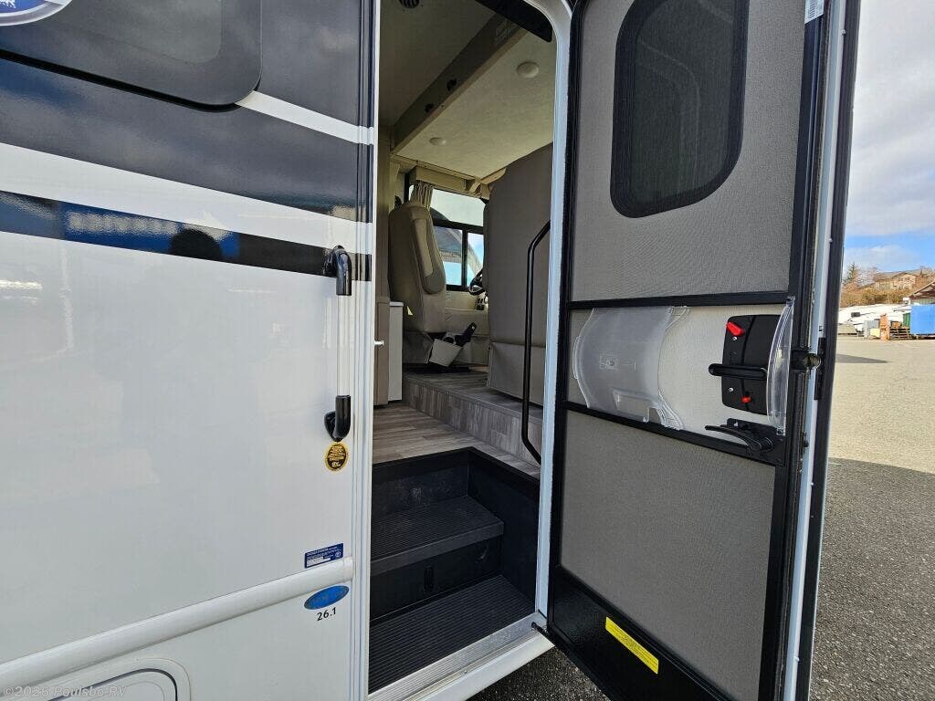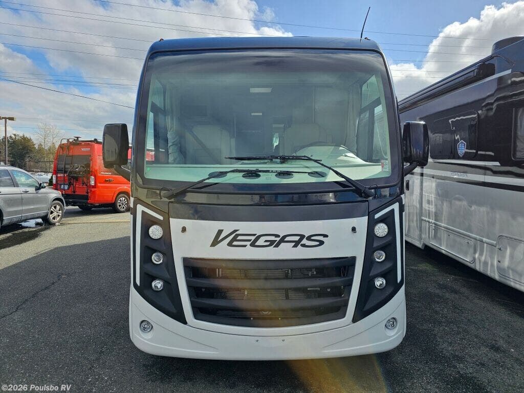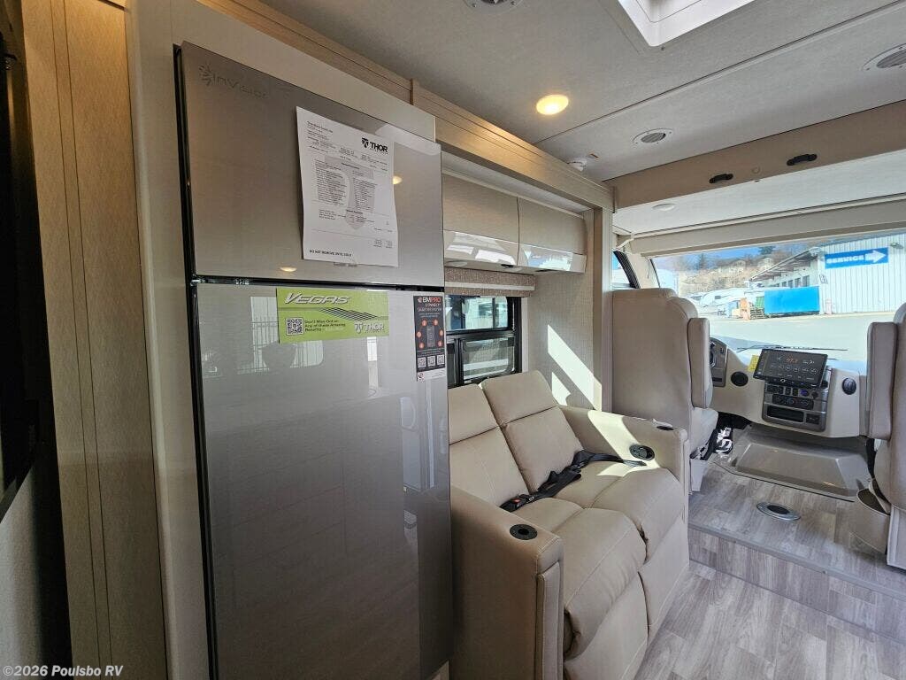The 2026 Thor Motor Coach Vegas 26.1 is a new Class A motorhome expertly crafted for travelers who value both style and functionality on the road. At 27.2 feet in length, this coach offers an ideal size for manageable driving with ample interior space. Featuring one slide out, it expands the living area significantly, providing room to move freely and enjoy all the comforts of home while away. With a comfortable sleeping capacity for two, the Vegas 26.1 is perfectly suited for couples or solo adventurers looking for a cozy retreat after a day of exploration. One awning extends your living space outdoors, creating a shaded area ideal for relaxing or dining al fresco as you take in the scenery. Practical conveniences such as leveling jacks ensure your motorhome remains stable and secure on any terrain, contributing to a restful and enjoyable stay. The thoughtfully designed floor plan focuses on providing comfort and ease of use, with smart storage solutions and functional amenities that support a convenient lifestyle on the road. Whether preparing meals or unwinding in the spacious interior, every feature is geared toward enhancing your RVing experience. The Vegas 26.1 delivers a perfect balance of mobility and comfort for memorable travel experiences. As a family owned, award winning local RV dealer with multiple locations in Sumner, Everett, Kent, and Mt Vernon Washington, Poulsbo RV here to help you find the perfect RV. Stock#: E6030, VIN: 1FC4E4KN5TDD31267.
