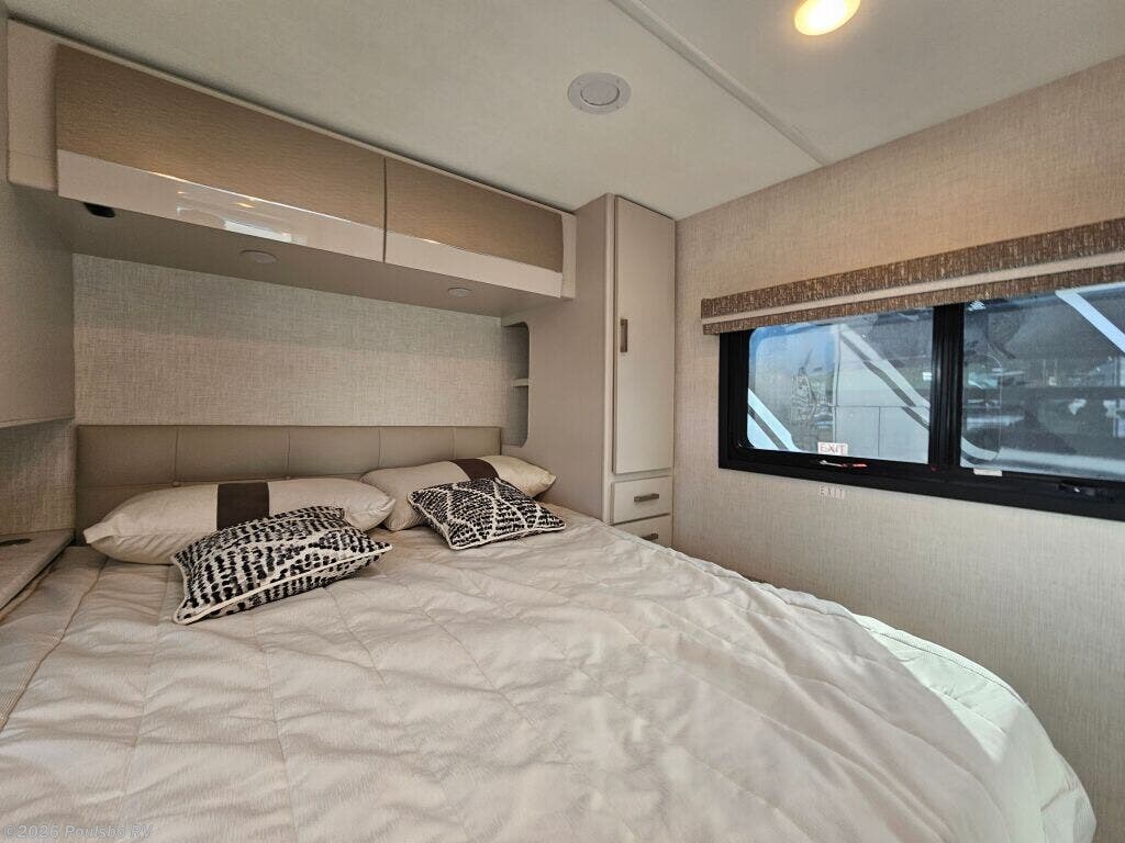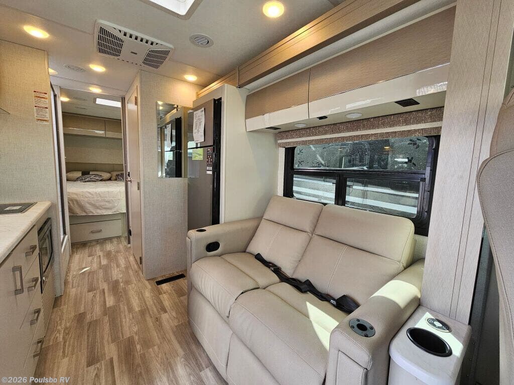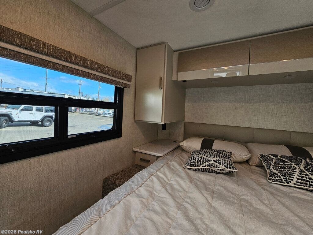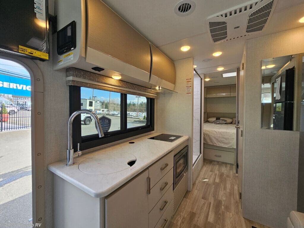 The 2026 Thor Motor Coach Vegas 26.1 is a new Class A motorhome expertly crafted for travelers who value both style and functionality on the road. At 27.2 feet in length, this coach offers an ideal size for manageable driving with ample interior space. Featuring one slide out, it expands the living area significantly, providing room to move freely and enjoy all the comforts of home while away. With a comfortable sleeping capacity for two, the Vegas 26.1 is perfectly suited for couples or solo adventurers looking for a cozy retreat after a day of exploration. One awning extends your living space outdoors, creating a shaded area ideal for relaxing or dining al fresco as you take in the scenery. Practical conveniences such as leveling jacks ensure your motorhome remains stable and secure on any terrain, contributing to a restful and enjoyable stay. The thoughtfully designed floor plan focuses on providing comfort and ease of use, with smart storage solutions and functional amenities that support a convenient lifestyle on the road. Whether preparing meals or unwinding in the spacious interior, every feature is geared toward enhancing your RVing experience. The Vegas 26.1 delivers a perfect balance of mobility and comfort for memorable travel experiences. As a family owned, award winning local RV dealer with multiple locations in Sumner, Everett, Kent, and Mt Vernon Washington, Poulsbo RV here to help you find the perfect RV. Stock#: E6030, VIN: 1FC4E4KN5TDD31267.