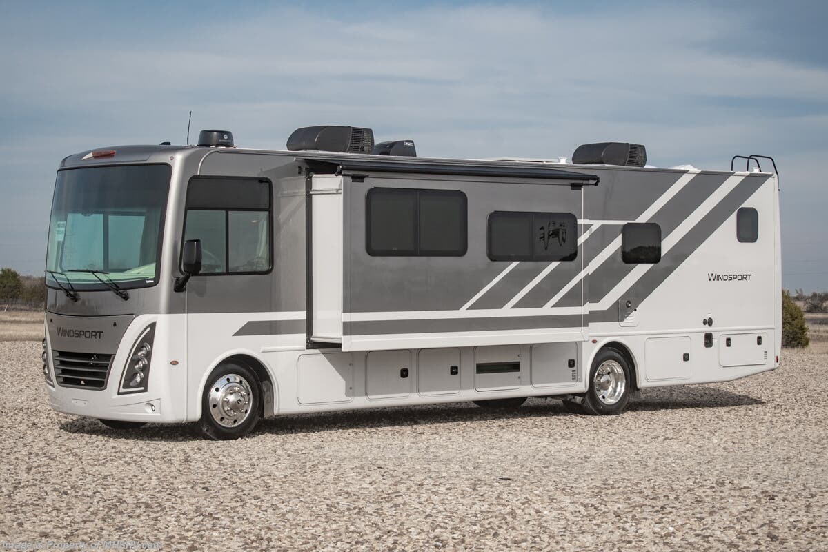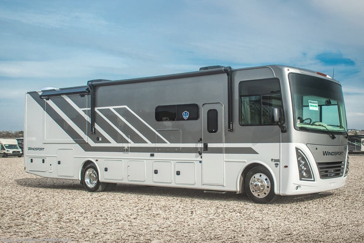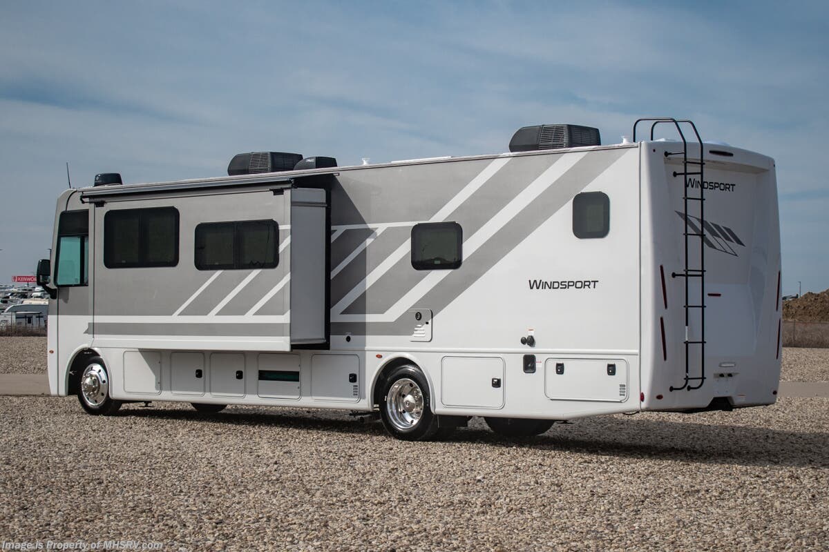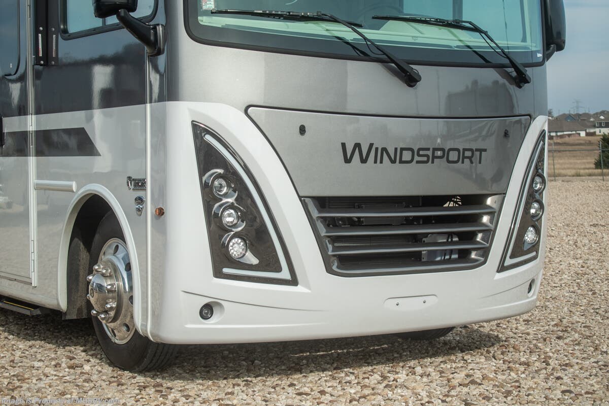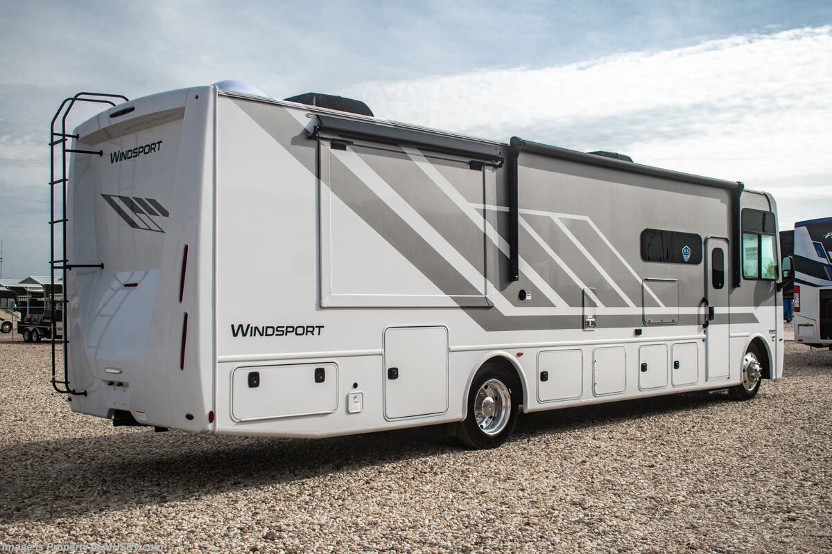 - Frameless Dual Pane Windows Shop hundreds of motorhomes including Class A RVs at MHSRV! Choose from Thor A.C.E. – Resonate – Hurricane – Windsport – Luminate – Indigo – Vegas – Axis – Challenger – Miramar Fleetwood Flair – Fortis – Flex – Bounder - Forest River Georgetown - FR3 – Entegra Coach Vision – Vision XL – Emblem – Holiday Rambler Admiral – Eclipse – Invicta – Vacationer - and much more. We also sell quality pre-owned models such as Jayco Alante SE – Alante – Precept – Precept Prestige – Tiffin Allegro Open Road – Newmar Canyon Star – Bay Star – Winnebago Vista – Sunstar – Adventurer – Coachmen Mirada – Pursuit - Encore and much more. Visit for our complete line-up and the sale prices that have made us the #1 volume selling motor home dealership in the world 12 years in a row! About This RV This RV is approximately 36 feet in length with 2 slides including a king size bed and automatic leveling jacks. This beautiful new motorhome also features the new Ford chassis with 7.3L PFI V-8, a 6-speed TorqShift® automatic transmission, an updated instrument cluster, automatic headlights and a tilt/telescoping steering wheel. The Thor Motor Coach Windsport RV also features tinted one-piece windshield, multiple USB charging ports throughout, Winegard ConnecT WiFi extender +4G, heated and enclosed underbelly, black tank flush, LED ceiling lighting, bedroom TV, LED running and marker lights, power driver's seat, power overhead loft, power patio awning with LED lighting, night shades, flush covered glass stovetop, refrigerator, microwave, and much more. This RV features the optional frameless dual pane windows. About Us For more details on this unit, our full inventory, brochures, window stickers, videos, photos, and customer reviews, visit or call 800-335-6054 for the Texas location or 334-288-0331 for our Alabama location. At Motor Home Specialist, we never charge prep or orientation fees. Every new RV sale includes a multi-point inspection, full interior and exterior detail. At our Texas location we also offer a high-pressure rain booth test—an exclusive service in the industry. You'll also receive a comprehensive coach orientation with an MHSRV technician and a complimentary night in our delivery park with full hook-ups at our Texas Location. --Why Pay More? Why Settle for Less?—