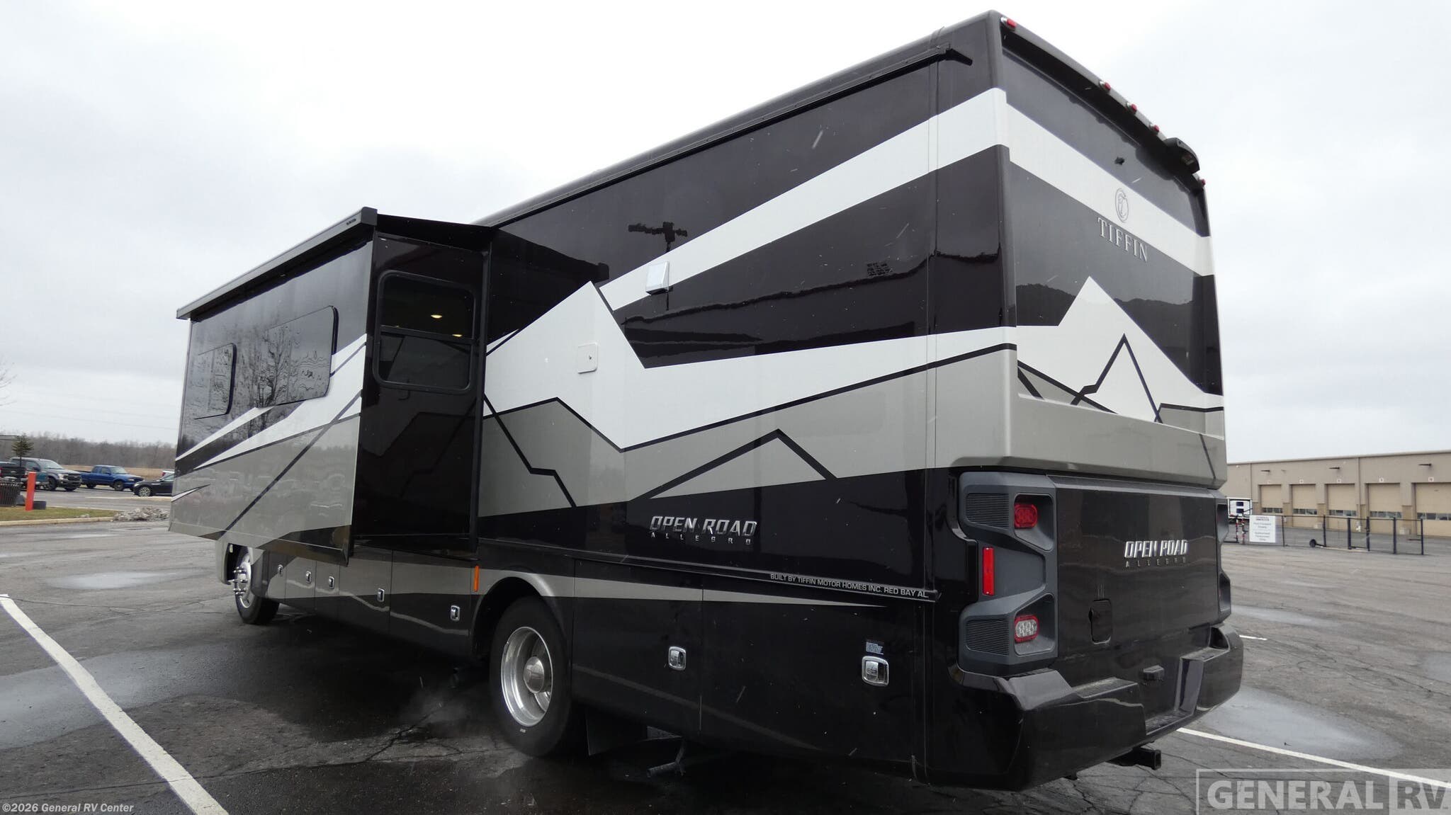 Tiffin Open Road Allegro Class A gas motorhome 32 SA highlights: Rear Private Bedroom Convection Microwave with Air Fryer Exterior TV Double Slides You will feel right at home in this motorhome! It features a rear private bedroom with a king bed slide that has an egress window behind it and a wardrobe with drawers. Just outside the bedroom is the split-style bath where one person can freshen up in the shower while another uses the private toilet and sink. After you have prepared a delicious meal with the three burner liquid propane cooktop. The dinette can become a place to relax after a long day and plenty of extra space in the living room that also includes an entertainment area, a 20 cu. ft. stainless steel residential refrigerator with a top freezer, and many more interior comforts! Every one of these Tiffin Motorhomes Open Road Allegro Class A gas motorhomes are ready to go when ever you are! A Ford 7.3L V8 engine powers these units and a durable, yet lightweight, tubular aluminum wall skeleton holds them together. They are beautifully designed with handcrafted cabinetry and a panoramic kitchen galley window for breathtaking views. A couple electronic features you will appreciate include an exterior TV with a soundbar and a Spyder multiplex system, plus there are two 13.5k BUT AC units to keep you cool on those hot summer days. The color back-up camera and side-view cameras will make parking easier than ever, and you'll appreciate hydraulic leveling jacks with a control panel for hassle-free set up.