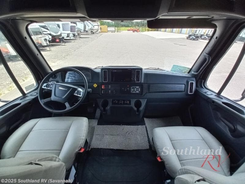 Each Allegro Bay Super C diesel coach by Tiffin Motorhomes sits on a durable Freightliner Custom S2RV chassis with an impressive 360 HP Cummins B6.7 engine for power you can feel. You will appreciate smooth handling thanks to the Trac-Tech full-time NoSPIN differential single rear axle and the automatic traction control. There is a manual release valve for the rear air suspension for added convenience, plus a 12,000 lb. towing capacity that will allow you to bring along the family car or even a horse trailer! This coach includes a Truma AquaGo Comfort instant water heater, AGM extended cycle house batteries, an 8.0 Onan Quiet Diesel generator, plus many more top of the line amenities. You will also love the new Generation 3 paint schemes, an exterior ladder, new matte finish tile flooring option, plus optional Starlink prep in the sewer bay that will give you the option to have internet while you're away from home!