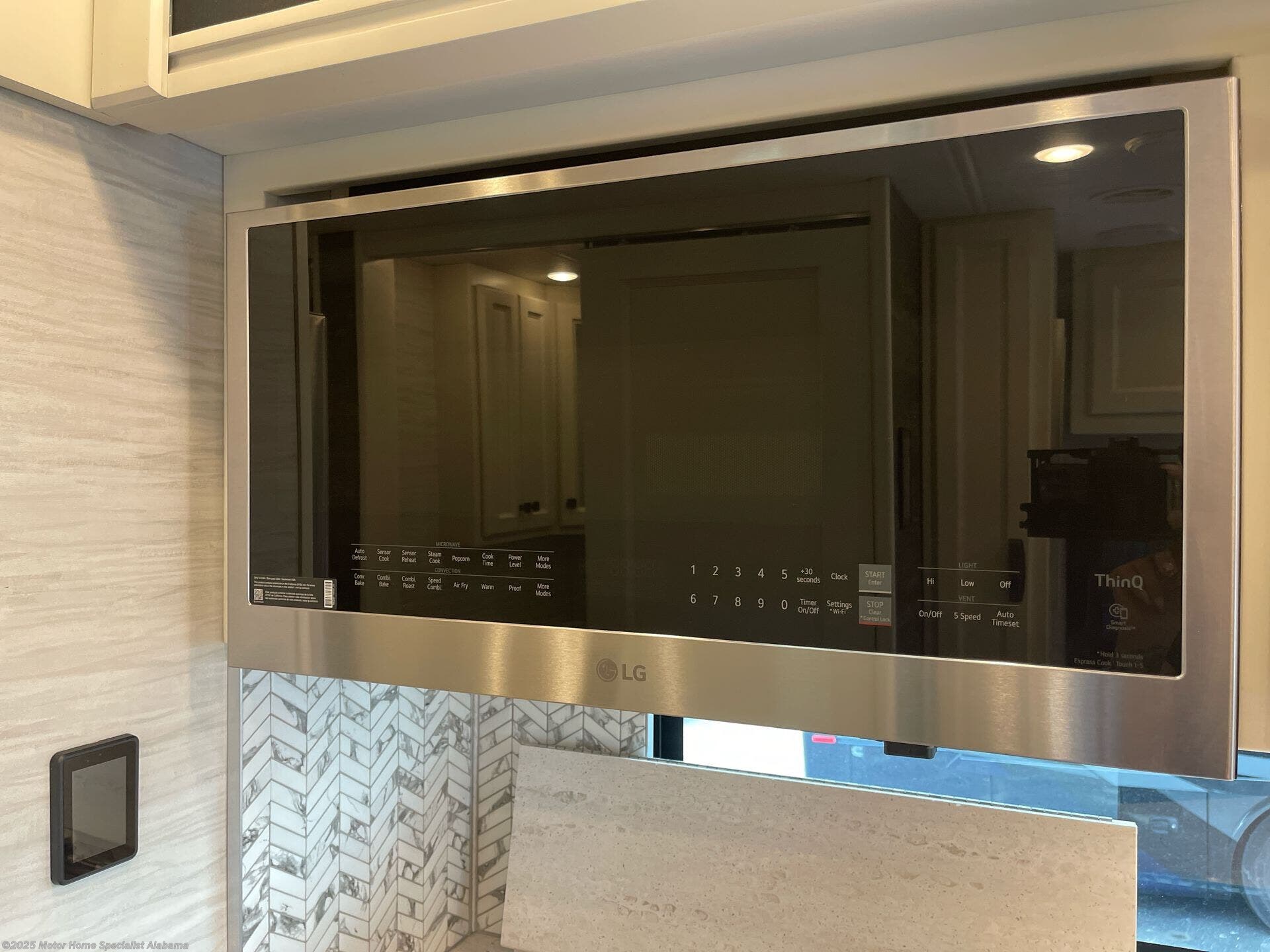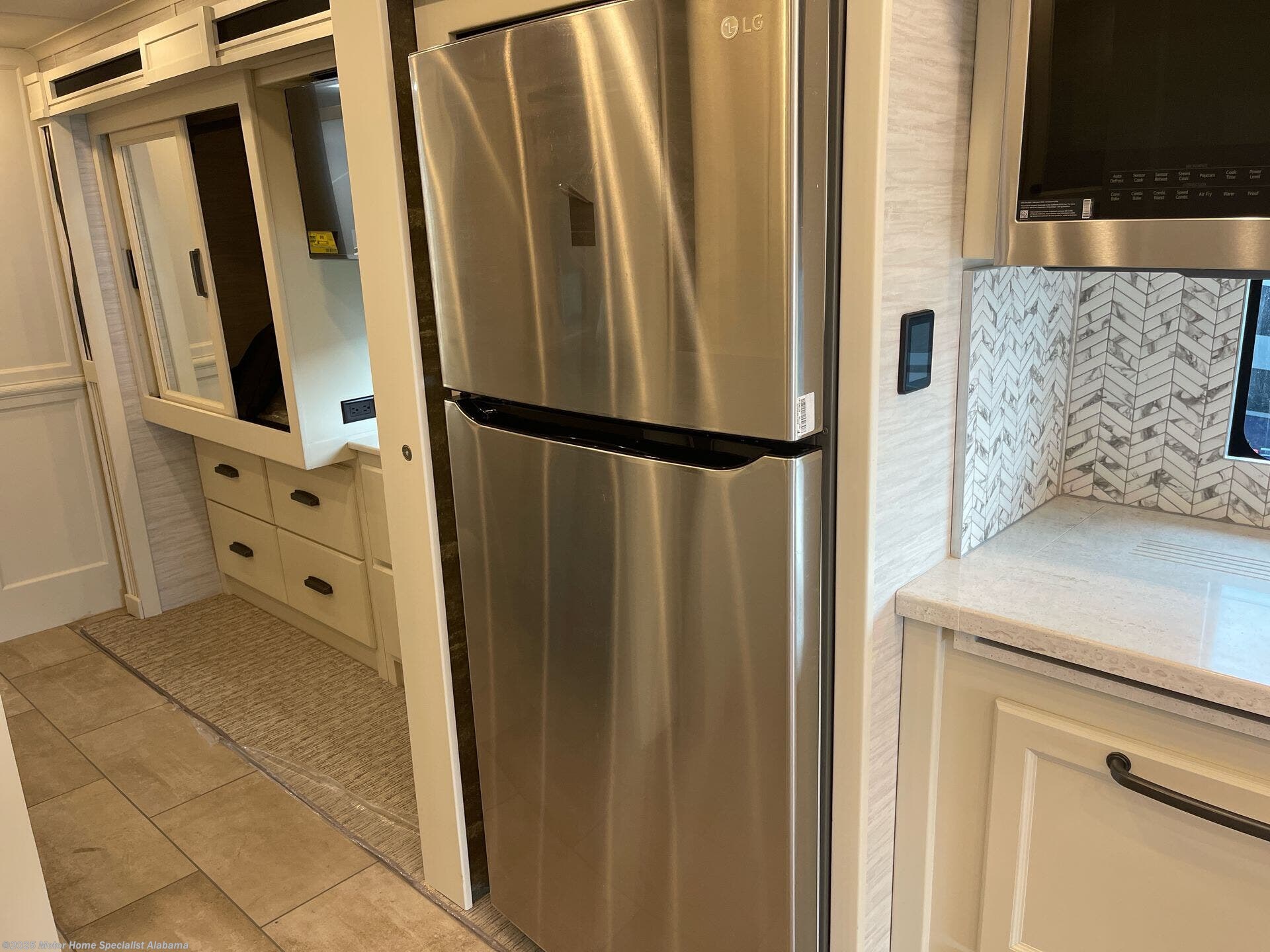 You're going to love the amount of space you having in this coach thanks to the full-wall slide and two additional slides. There is a bath and a half that is sure to come in handy when traveling with friends and family, plus sleeping space for six or seven. The master bedroom will feel just like home with its king bed, wardrobe with drawers below, plus a mounted TV! The booth dinette will provide a place to dine, and there is an air coil sofa bed with furniture mounted swivel tables for even more dining and sleeping space. This model includes a full kitchen with a three burner cooktop, a convection microwave, a counter extension, plus a stainless steel residential refrigerator for all your perishables. There are many options to choose from, including theater seating, a dinette bar, plus an optional stacked washer and dyer and more!