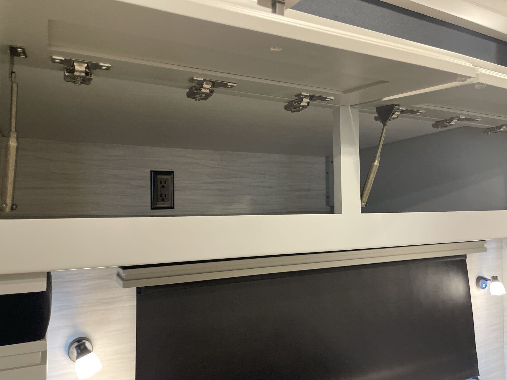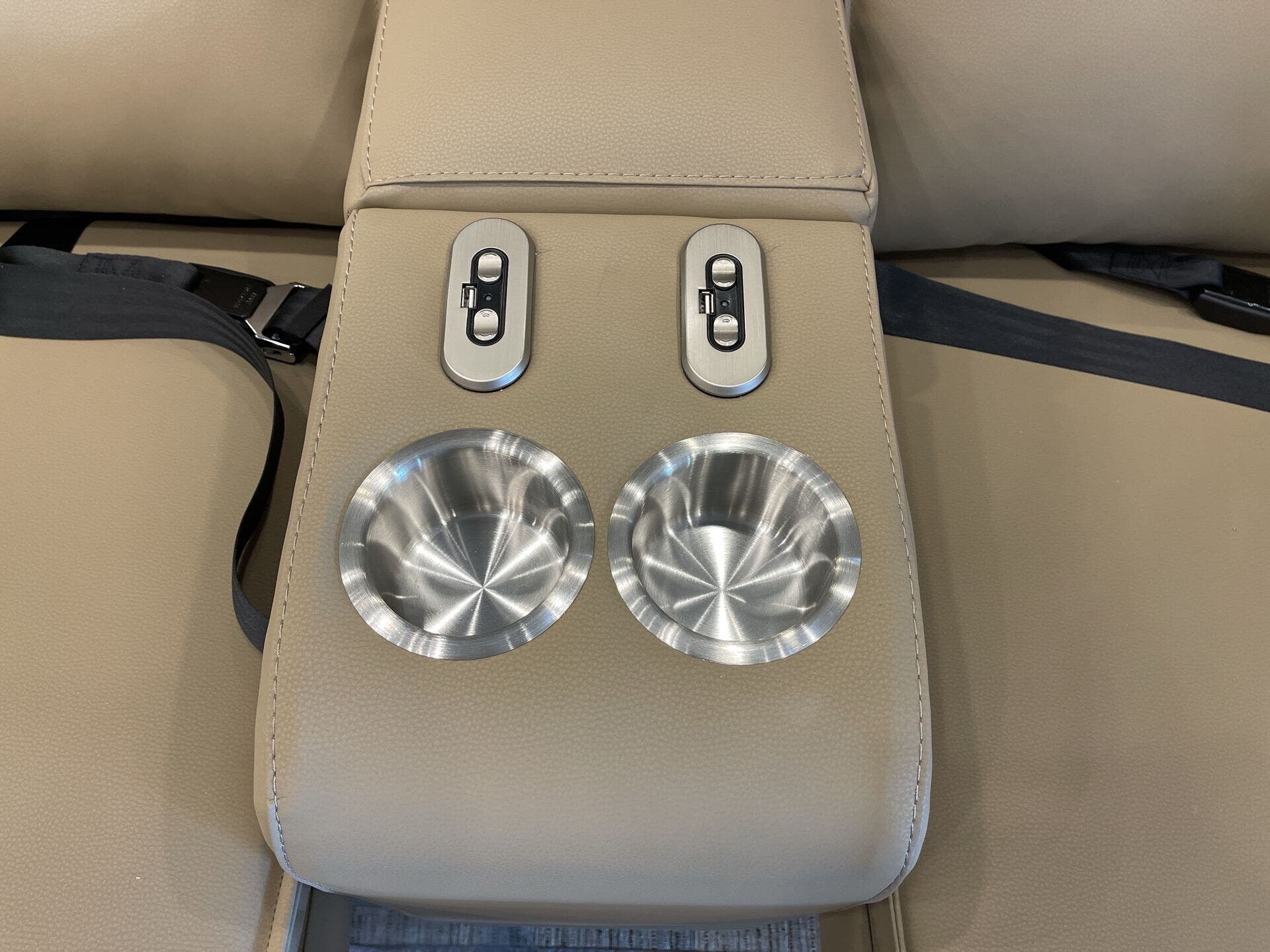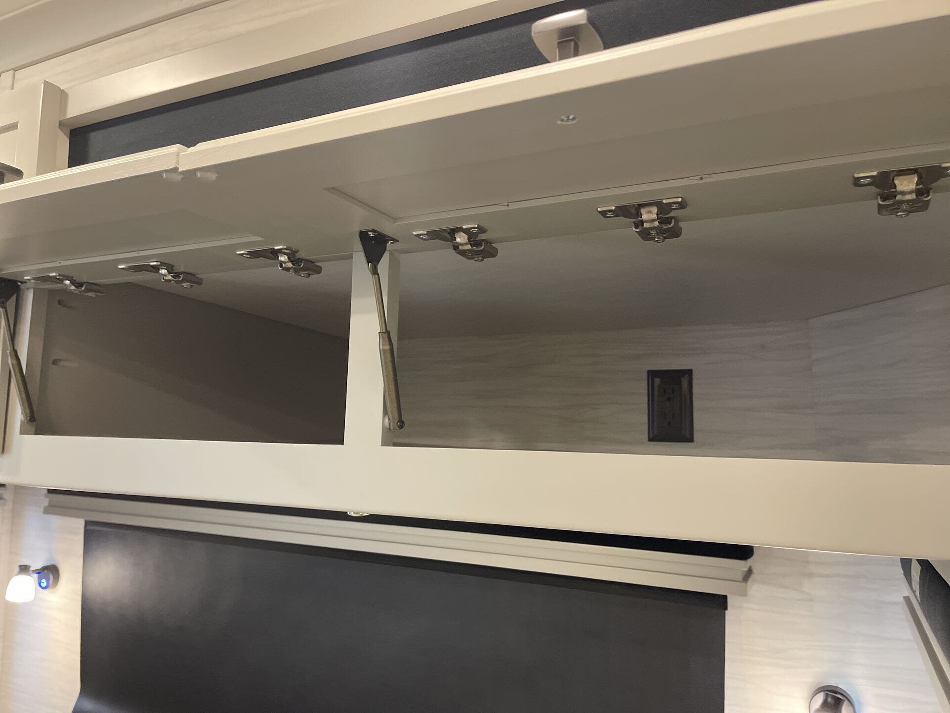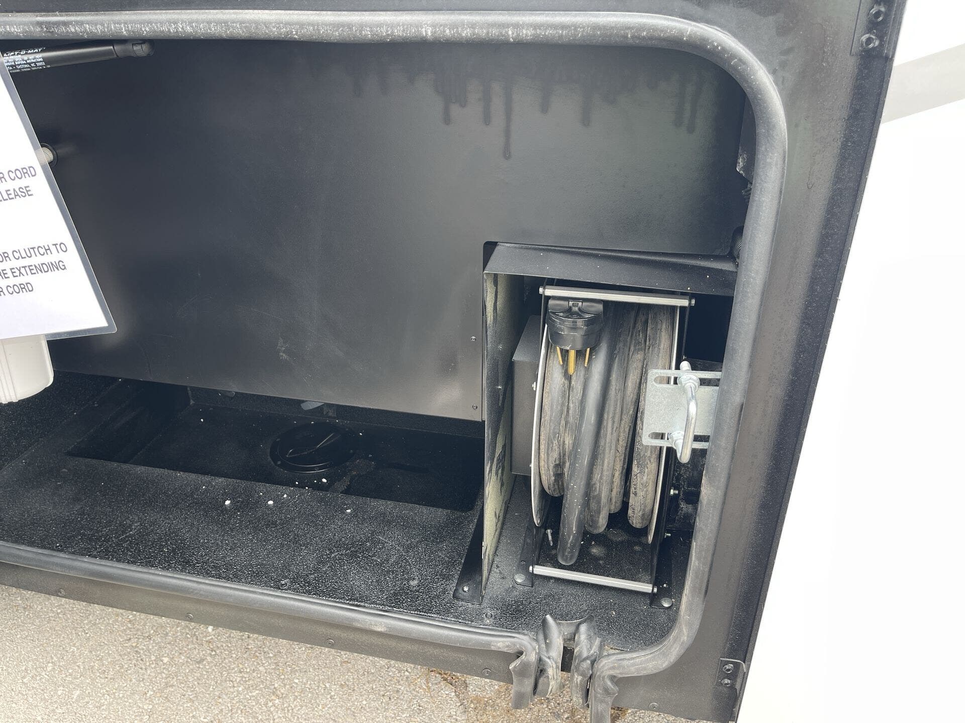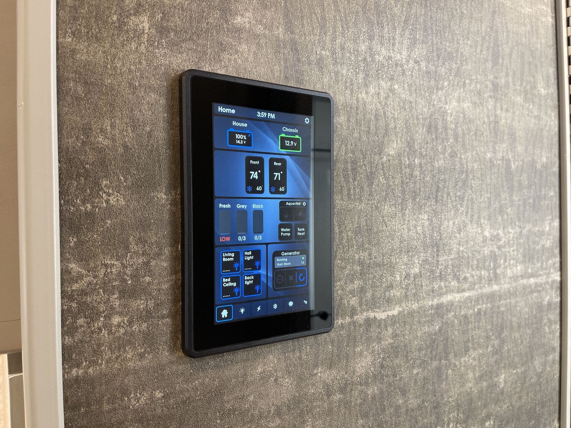 No detail is overlooked in the Allegro Bay’s luxury appointments and utility systems. Tiffin’s tile floor option, handcrafted cabinetry, and tile backsplash add a refined aesthetic. Plumbing and comfort systems include a Truma AquaGo instant water heater, Onan Quiet Diesel 8 kW generator, dual 15,000 BTU A/C units with heat pump, and a 35,000 BTU furnace. Beneath the coach are 136 cu ft of pass-through storage, satellite and Starlink prep, exterior entertainment hookup, and a Girard power awning with LED lighting—all making it an ideal coach for families or couples who seek a premium travel experience .