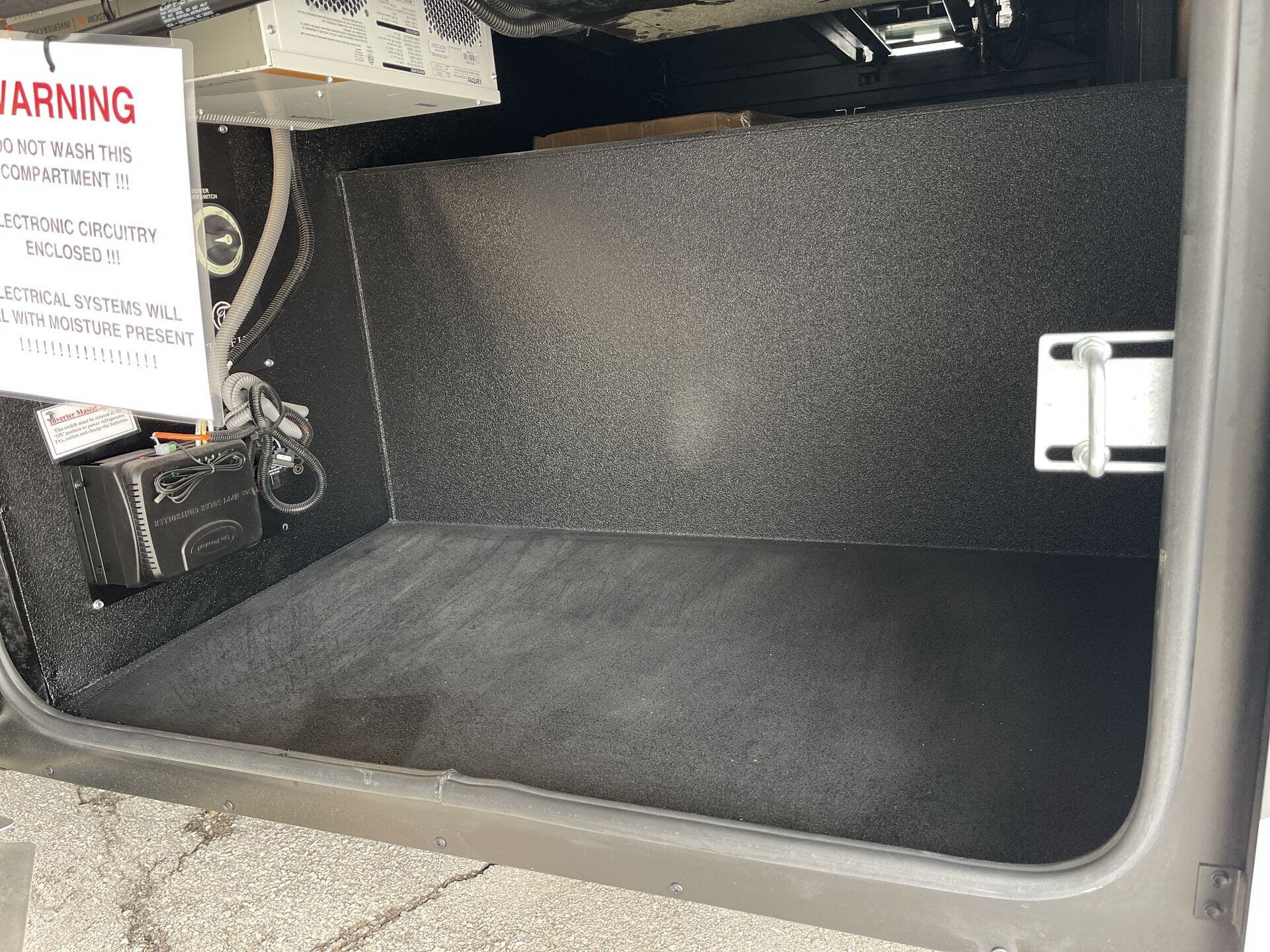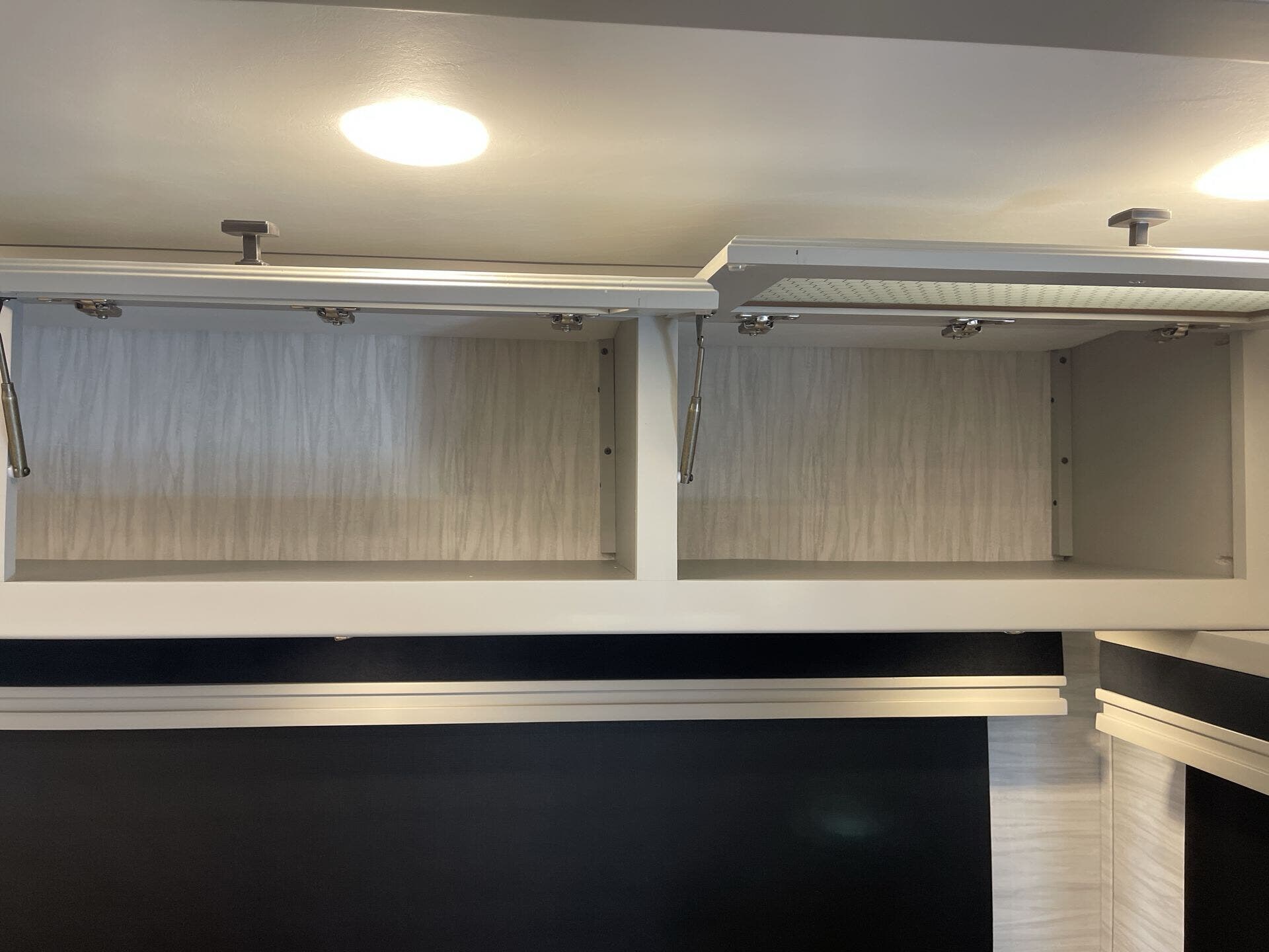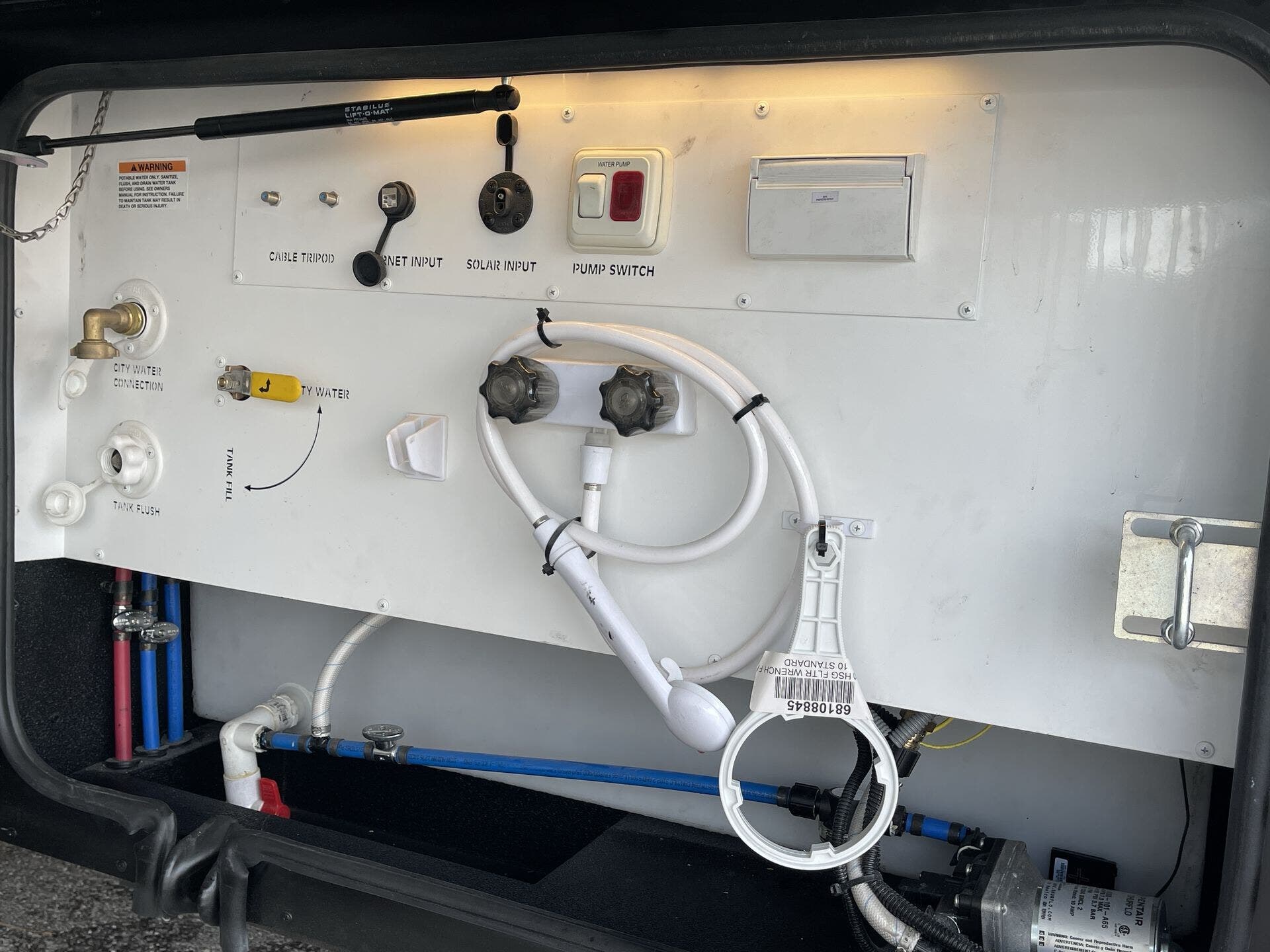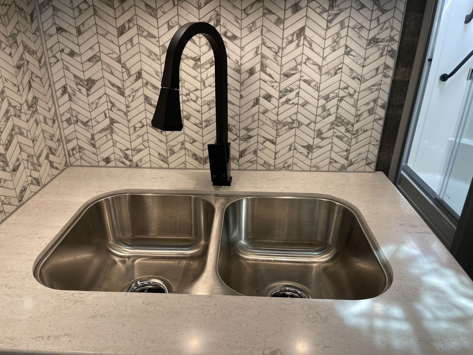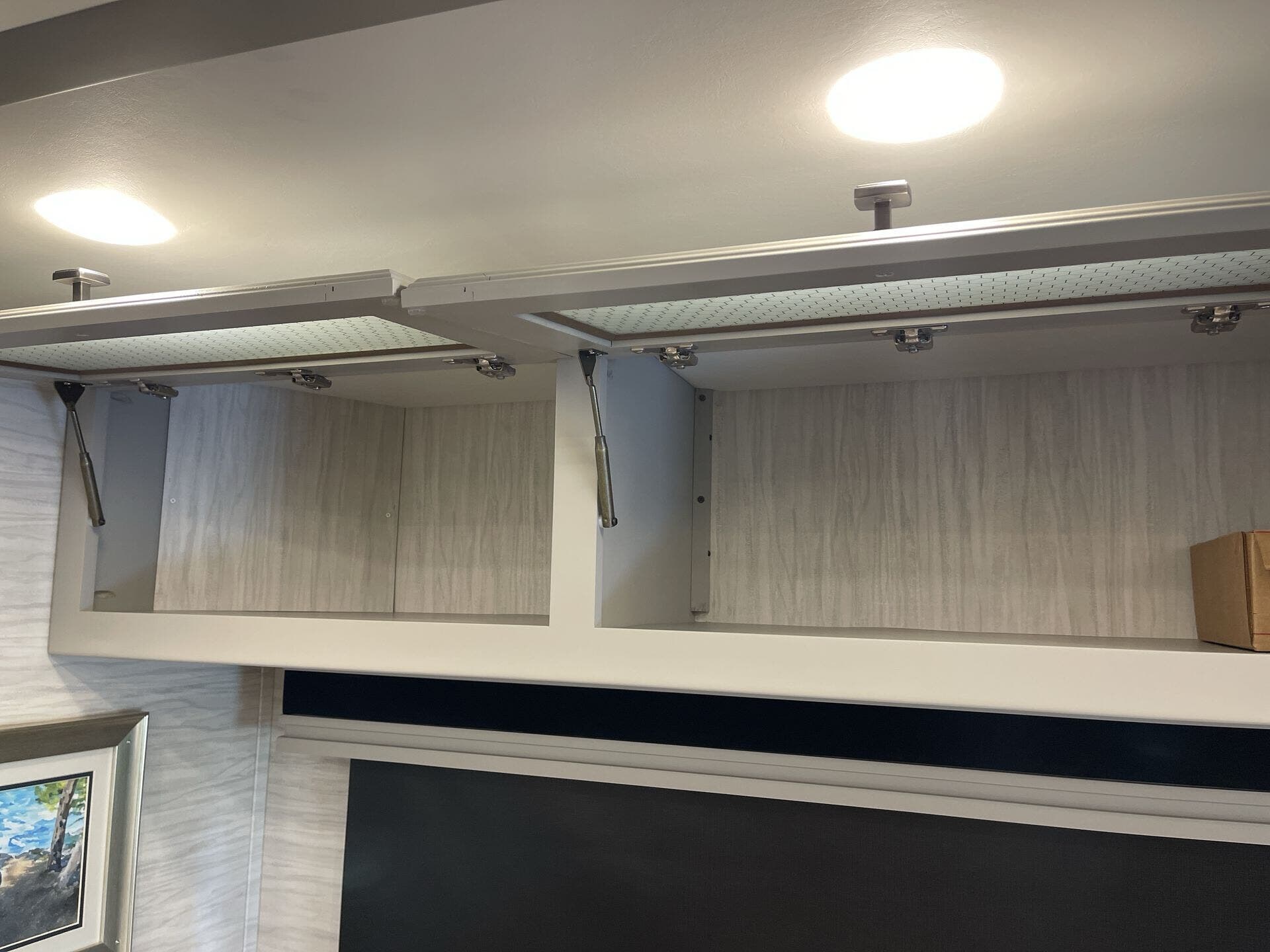 No detail is overlooked in the Allegro Bay’s luxury appointments and utility systems. Tiffin’s tile floor option, handcrafted cabinetry, and tile backsplash add a refined aesthetic. Plumbing and comfort systems include a Truma AquaGo instant water heater, Onan Quiet Diesel 8 kW generator, dual 15,000 BTU A/C units with heat pump, and a 35,000 BTU furnace. Beneath the coach are 136 cu ft of pass-through storage, satellite and Starlink prep, exterior entertainment hookup, and a Girard power awning with LED lighting—all making it an ideal coach for families or couples who seek a premium travel experience .