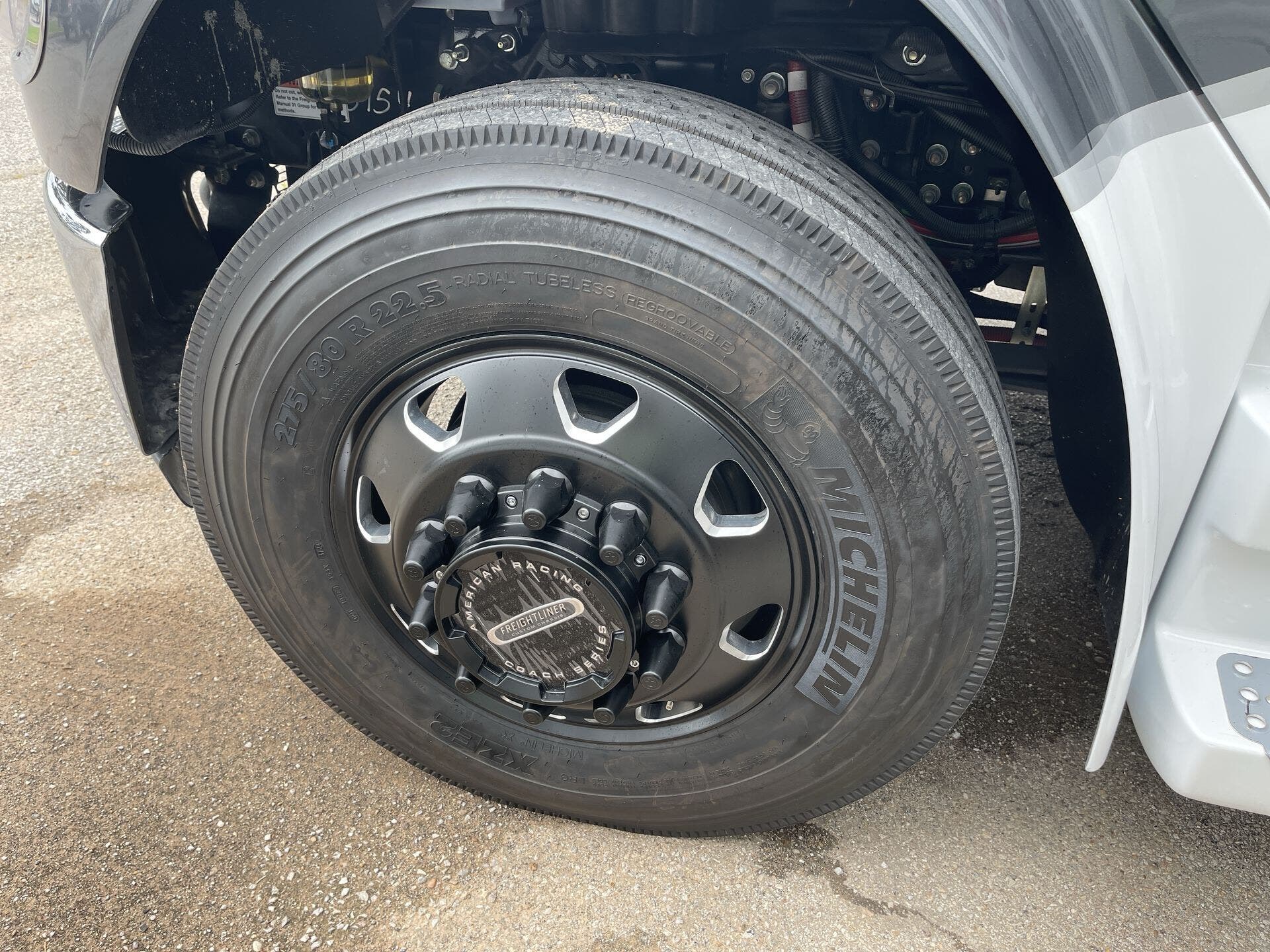 The 2026 Tiffin Allegro Bay 38AB is a rugged yet luxurious Super C diesel motorhome built on the reputable Freightliner S2RV chassis. Under the hood, it features a powerful Cummins B6.7 360 HP engine paired with an Allison 3000 MH 6-speed automatic transmission, delivering a robust 800 lb-ft of torque. With a GVWR of 33,000 lb and a towing capacity of up to 12,000 lb, this coach effortlessly handles heavy loads and sizeable trailers . The rugged underpinnings are complemented by advanced safety features such as full-time NoSPIN rear differential, automatic traction control, and BrakeSync, while hydraulic leveling jacks and air suspension ensure stability both on the move and at the campsite .