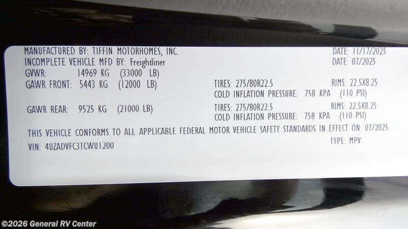 Request More Info on this 2026 Tiffin Allegro Bay 38BB Offered for sale by General RV Center