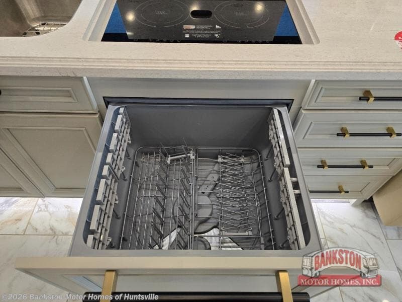 With any Allegro Bus Class A diesel coaches by Tiffin Motorhomes you will experience ultimate luxury, breakthrough technology, and unmatched power thanks to the 450 HP Cummins L9 engine. The captain's job is made easier than ever with the adaptive cruise control, the collision mitigation with forward warning and active braking, and the Valid instrument cluster display with integrated leveling controls. This hydronic heating and electronic appliance-equipped coach features two Girard roof awnings, an Onan 10.0 kW generator, and three 15,000 BTU A/C units to keep you comfortable all year long. New and exciting features include a drawer-style dishwasher on each model, Gold Heat dual zones heated tile floors, Starlink Pro with a subscription, and more!