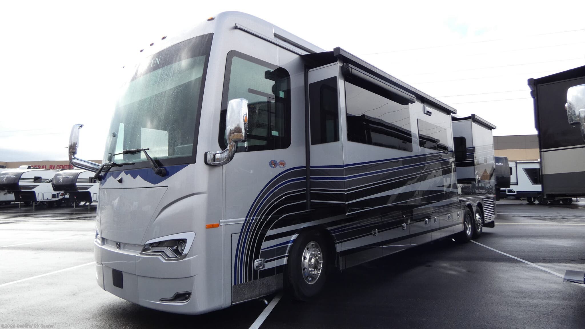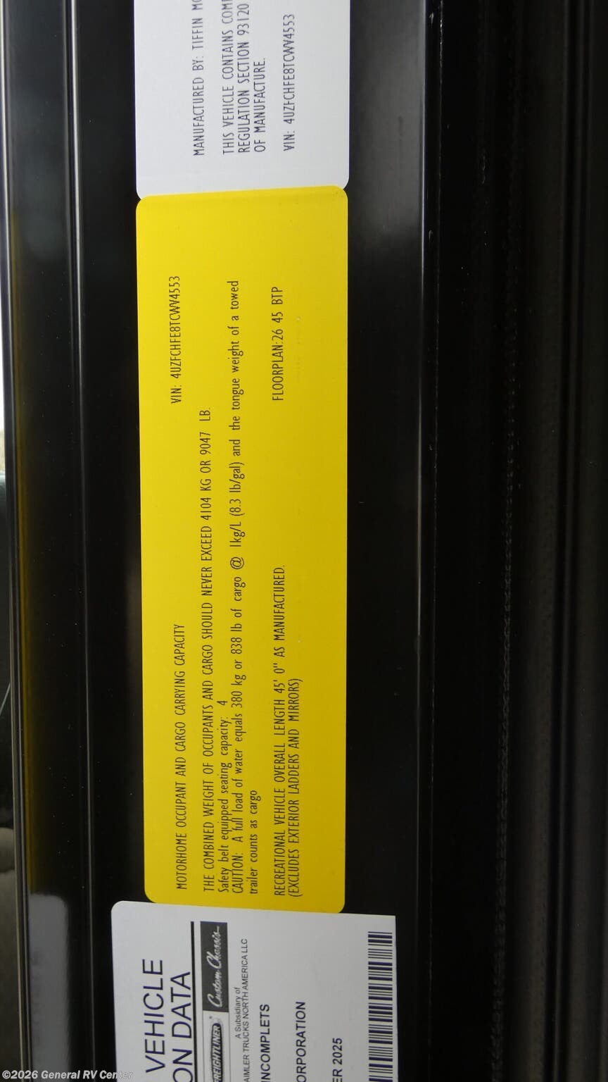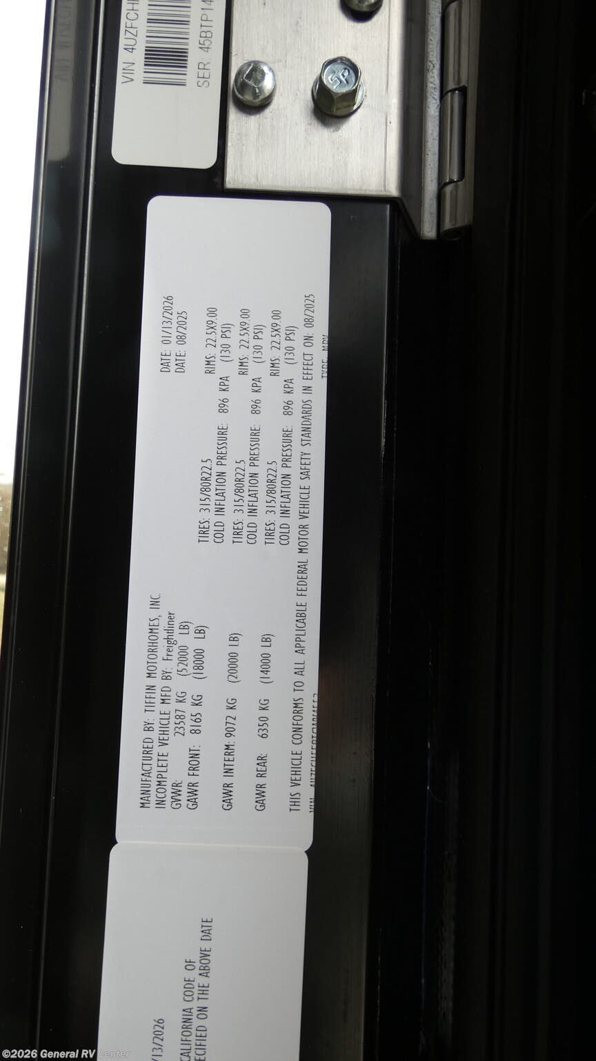 **Tiffin Motorhomes Bob Tiffin Limited Edition Bus Class A diesel motorhome 45 BTP highlights:** * Four Slide Outs * Bath and a Half * Residential Refrigerator * DE Sofa Bed with Lift TV * Drawer Type Dishwasher * Dual Bath Sinks Get ready for luxury trips both near and far in this spacious coach! Once you find somewhere to park for the night, you can cook dinner on the two burner induction cooktop or in the 1.7 cu. ft. Smart convection microwave with an air fryer. There is an Expand-An-Island for more prep space plus pull-out storage and a drawer-type dishwasher to make clean up easier than ever. You can then relax on the DE sofa bed with a lift TV above it or on the air coil sofa bed with an ottoman. There is also a dinette with chairs where you can dine together or get some work done while you're away from home. And the half bath off of the kitchen is convenient for everyone. A master bedroom is sure to meet your needs with a power Smart king bed slide with dual nightstands, a 50" TV, and drawers below an optional fireplace. The feature you might like most on this coach is the full rear bath! Here, you'll find dual bath sinks with a tri-view mirror, a spacious shower, and a floor-to-ceiling closet, complete with storage cabinets, a safe, plus prep for a washer and dryer! The Bob Tiffin Limited Edition Bus by Tiffin Motorhomes is specifically designed with Tiffin Motorhomes', founder Bob Tiffin in mind! This Class A diesel coach sits on a durable PowerGlide raised rail rear engine diesel chassis with a powerful Cummins L9 450 HP diesel engine. High-end features included are the exterior paint scenes highlighting the Rocky Mountains and the slide fascia that takes after the grill of a Packard, Bob's favorite car! It will be so easy to manage the functions of your coach with a Spyder controls multiplex system, and the 10.0 kW Onan quiet diesel generator will keep you powered up and ready to go. Inside, there are powered solar and privacy shades, egress windows throughout, a central vacuum system with a VacPan automatic dustpan, handcrafted overhead cabinetry, and many more comforts. This is also a hydronic heating and electronic appliances equipped coach and there are three 15k BTU A/C units to keep you comfortable all year long. And we haven't even touched on the exterior features, like the Girard roof-mounted awnings, exterior TV with a soundbar, side-swinging exterior storage doors with gas shocks, and the list goes on. Bob Tiffin's 51 years and counting in the motorhome industry is honored perfectly in this coach, check it out today!