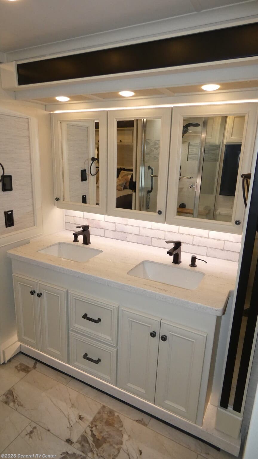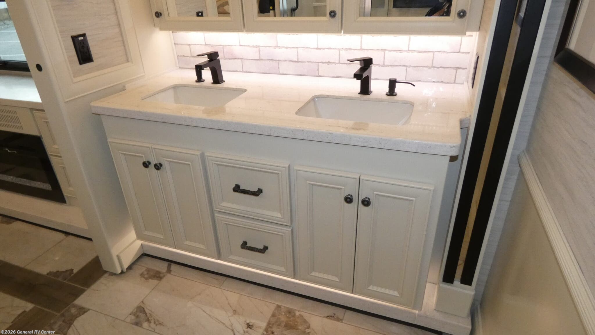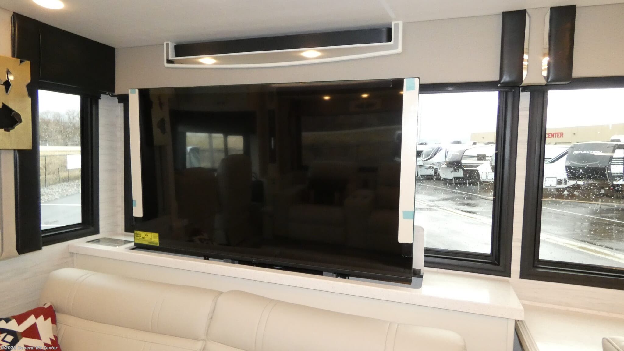 **Tiffin Motorhomes Bob Tiffin Limited Edition Bus Class A diesel motorhome 45 BTP highlights:** * Four Slide Outs * Bath and a Half * Residential Refrigerator * DE Sofa Bed with Lift TV * Drawer Type Dishwasher * Dual Bath Sinks Get ready for luxury trips both near and far in this spacious coach! Once you find somewhere to park for the night, you can cook dinner on the two burner induction cooktop or in the 1.7 cu. ft. Smart convection microwave with an air fryer. There is an Expand-An-Island for more prep space plus pull-out storage and a drawer-type dishwasher to make clean up easier than ever. You can then relax on the DE sofa bed with a lift TV above it or on the air coil sofa bed with an ottoman. There is also a dinette with chairs where you can dine together or get some work done while you're away from home. And the half bath off of the kitchen is convenient for everyone. A master bedroom is sure to meet your needs with a power Smart king bed slide with dual nightstands, a 50" TV, and drawers below an optional fireplace. The feature you might like most on this coach is the full rear bath! Here, you'll find dual bath sinks with a tri-view mirror, a spacious shower, and a floor-to-ceiling closet, complete with storage cabinets, a safe, plus prep for a washer and dryer! The Bob Tiffin Limited Edition Bus by Tiffin Motorhomes is specifically designed with Tiffin Motorhomes', founder Bob Tiffin in mind! This Class A diesel coach sits on a durable PowerGlide raised rail rear engine diesel chassis with a powerful Cummins L9 450 HP diesel engine. High-end features included are the exterior paint scenes highlighting the Rocky Mountains and the slide fascia that takes after the grill of a Packard, Bob's favorite car! It will be so easy to manage the functions of your coach with a Spyder controls multiplex system, and the 10.0 kW Onan quiet diesel generator will keep you powered up and ready to go. Inside, there are powered solar and privacy shades, egress windows throughout, a central vacuum system with a VacPan automatic dustpan, handcrafted overhead cabinetry, and many more comforts. This is also a hydronic heating and electronic appliances equipped coach and there are three 15k BTU A/C units to keep you comfortable all year long. And we haven't even touched on the exterior features, like the Girard roof-mounted awnings, exterior TV with a soundbar, side-swinging exterior storage doors with gas shocks, and the list goes on. Bob Tiffin's 51 years and counting in the motorhome industry is honored perfectly in this coach, check it out today!