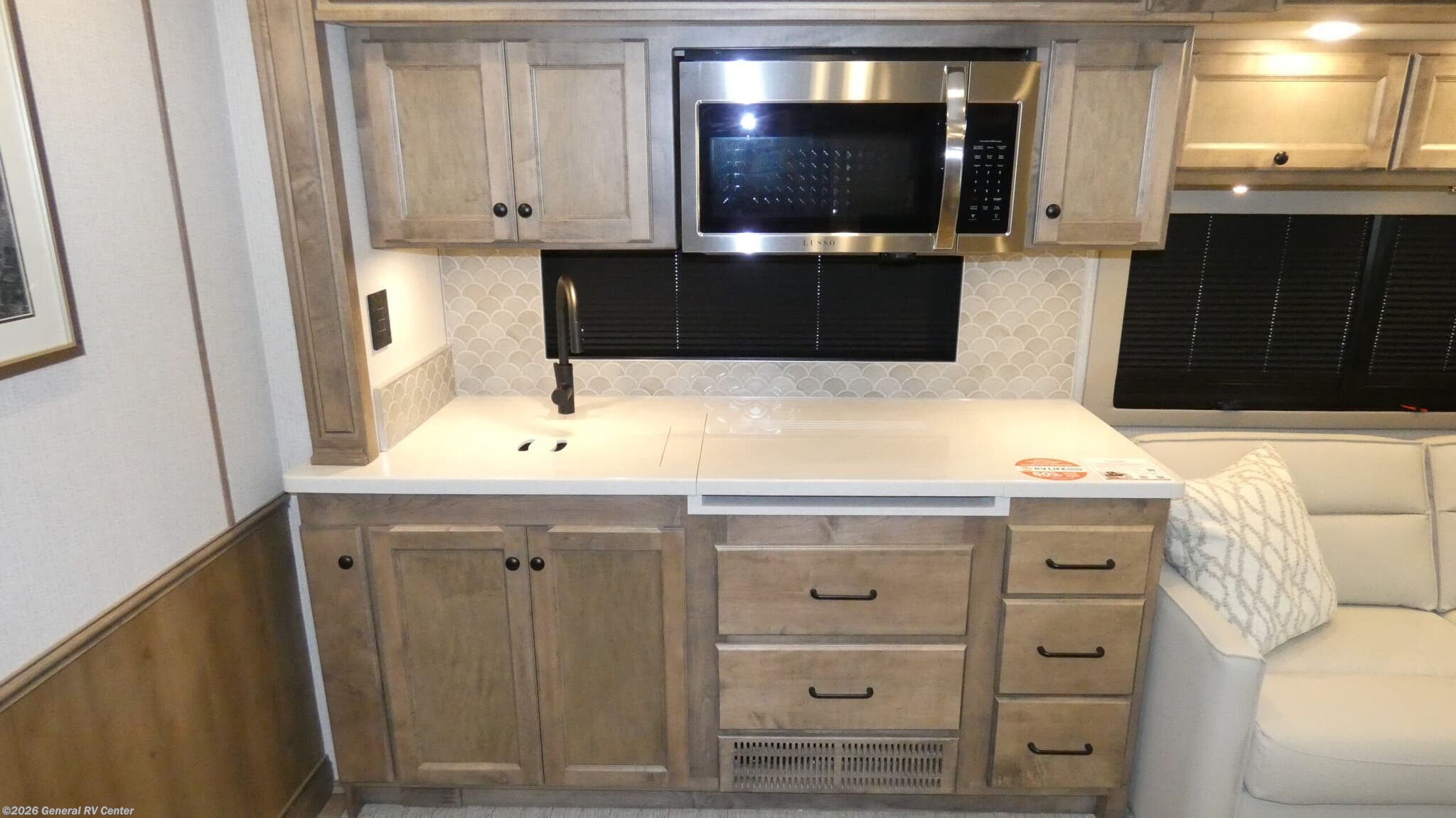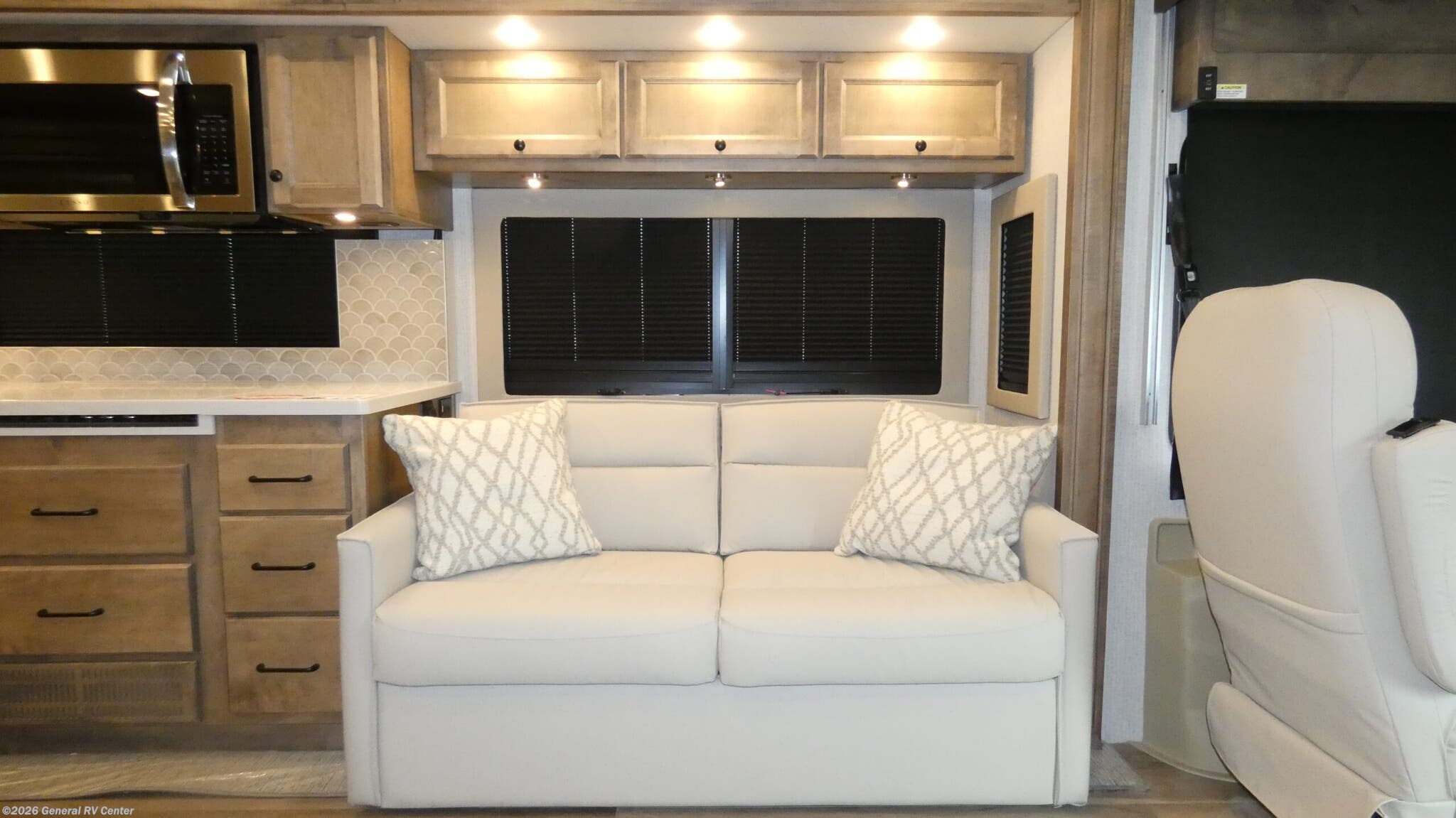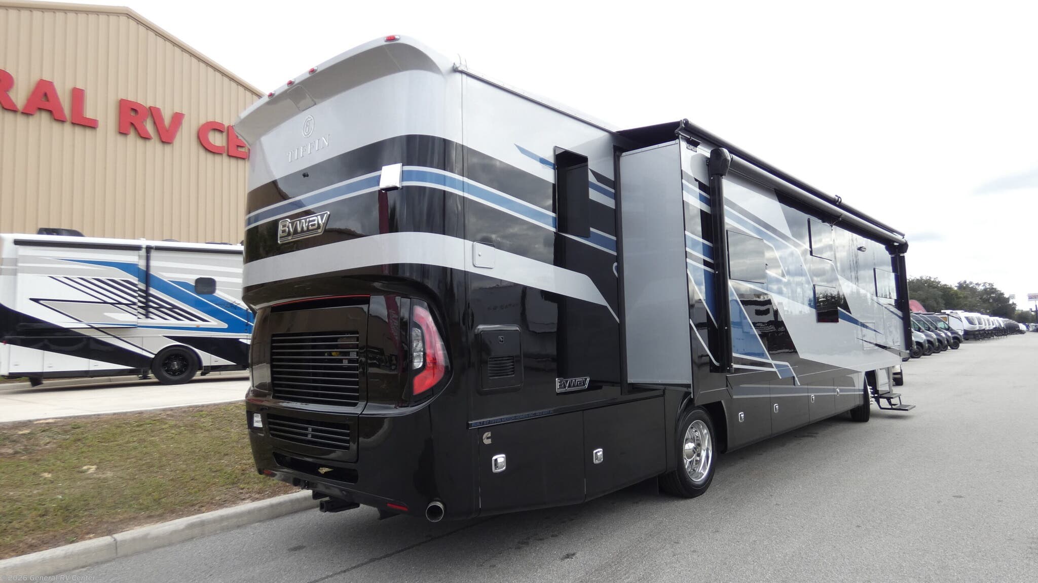 Experience the pinnacle of luxury travel with the 2026 Tiffin Byway 38 BL. This magnificent RV is designed to accommodate up to nine travelers in comfort and style, making it perfect for family adventures or road trips with friends. The spacious interior features a king-sized bed, two convertible beds, and cozy bunks, ensuring everyone has a comfortable place to rest. With its front living area and center kitchen, you'll find a welcoming space to relax and entertain. The kitchen is equipped with a full-size electric refrigerator, a three-burner cooktop, and convection cooking, allowing you to prepare gourmet meals on the go. The Tiffin Byway 38 BL is built on a robust Freightliner XC-Series chassis with a powerful Cummins I6 Diesel Pusher engine, delivering 340 horsepower and 700 lb-ft of torque. This ensures a smooth and powerful ride, whether you're cruising down the highway or navigating winding mountain roads. The RV's 39.5-foot length and three slide-outs provide ample living space, while the powered retractable awning offers a perfect outdoor retreat. With a 70-gallon fresh water capacity and ample gray and black water storage, you'll be ready for extended adventures without missing a beat. Visit your nearest General RV dealership to explore this exceptional RV and start planning your next journey.