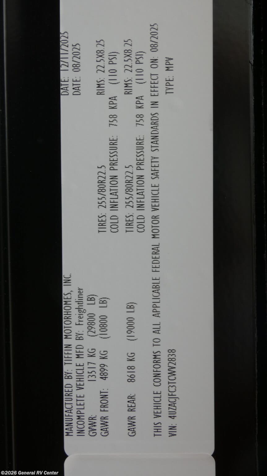 - VIN4UZACJFC3TCWV2838