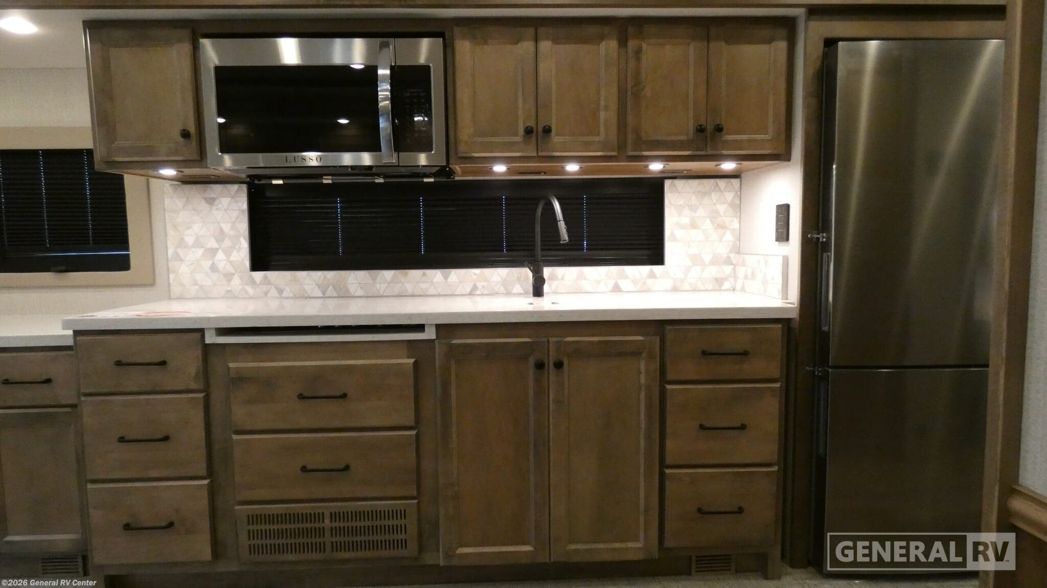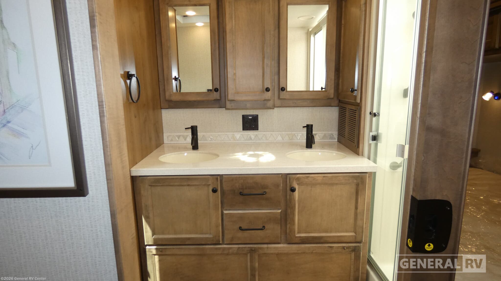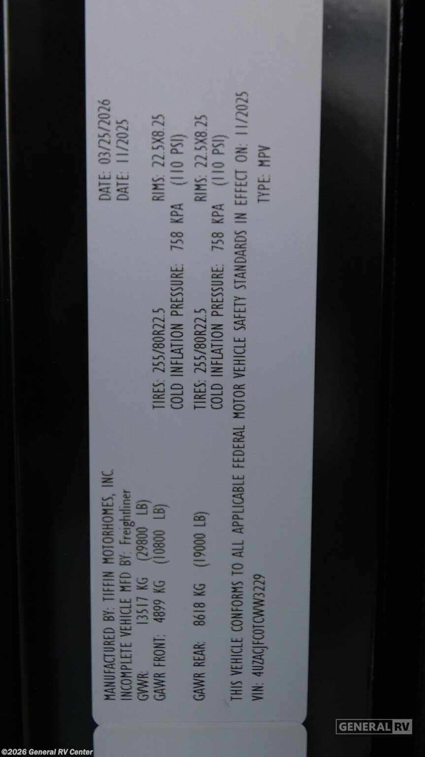 Experience the ultimate in luxury travel with the 2026 Tiffin Byway 38 CL. This stunning motorhome combines elegance and functionality, making it the perfect choice for both short getaways and extended adventures. With its spacious design, this model comfortably sleeps up to seven, featuring a king-size bed, a full-size bed, and a convertible option, plus a convenient bunk for added versatility. The center kitchen is a chef’s delight, equipped with a full-size electric refrigerator, convection cooking, and a three-burner cooktop, ensuring you have everything you need to create culinary masterpieces on the road. The Byway 38 CL is designed for comfort and convenience, boasting a front living area with theater seats and an optional fireplace, creating a cozy ambiance for relaxing evenings. The powered retractable awning extends your living space outdoors, perfect for enjoying the scenic views at your favorite campsite. The rear/center bath adds a touch of luxury with its sleek design, while the center bedroom offers a tranquil retreat. Built on a sturdy Freightliner XC-Series chassis and powered by a robust Cummins I6 Diesel Pusher engine, this RV ensures a smooth and powerful ride. Visit your nearest General RV dealership to explore this exceptional model and start your journey in style.