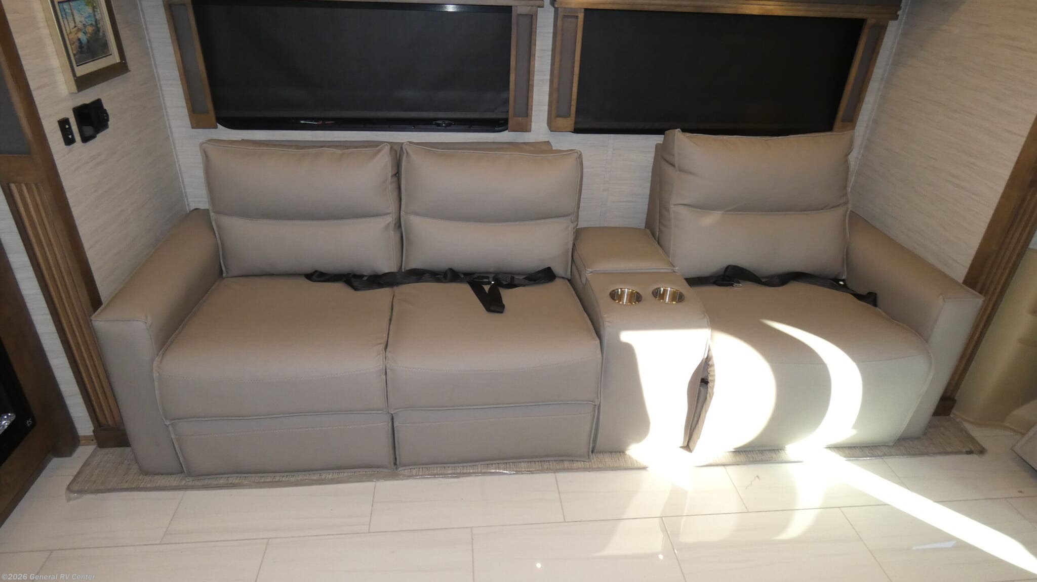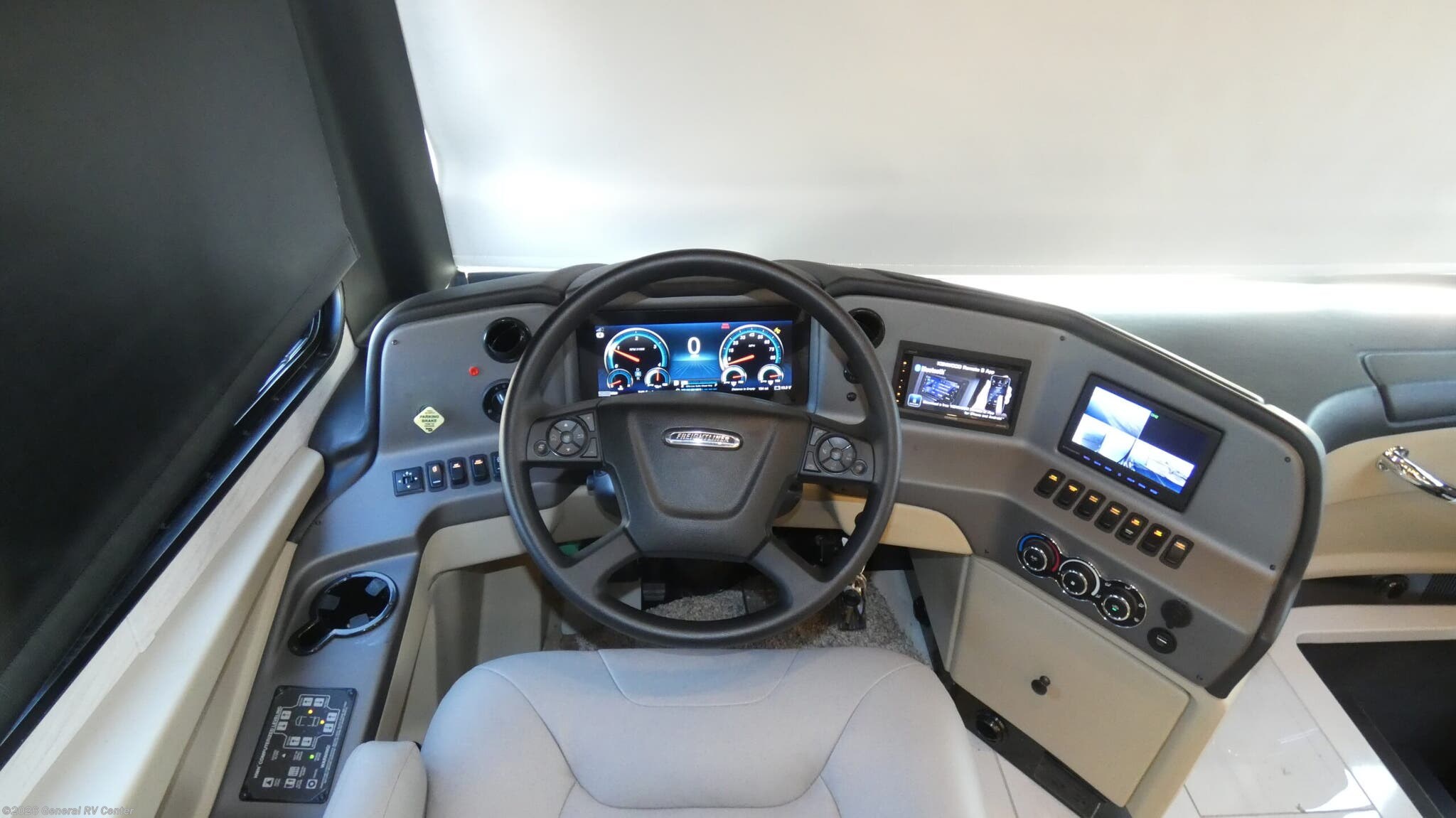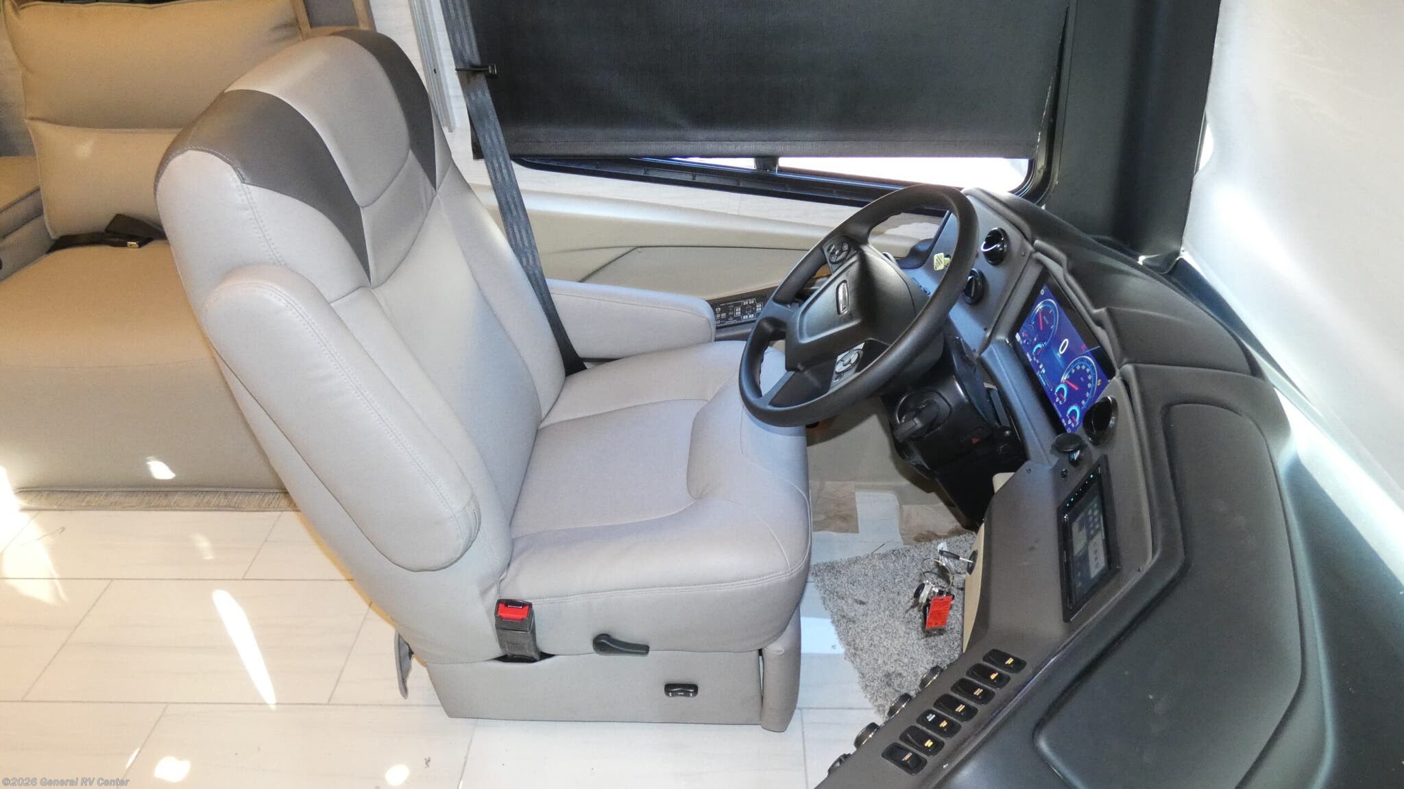 Discover the 2026 Tiffin Allegro RED 33 AA, where luxury meets practicality in a beautifully designed motorhome. With a length of just over 35 feet, this diesel pusher is built on the robust Freightliner XC-Series chassis and powered by a mighty Cummins I6 engine, offering 380 horsepower and 1150 lb-ft of torque. This ensures you have the power and performance to explore any destination with ease. The spacious interior features four slides, providing ample room for relaxation and entertainment, whether you're lounging on the air-coil sofa bed or enjoying a meal at the booth dinette-sleeper. The Allegro RED 33 AA is thoughtfully designed for comfort and convenience. The rear bedroom boasts a luxurious king-sized bed, while the center bathroom offers a practical layout with a shower enclosed in stylish plastic and glass. The center kitchen is well-equipped with a full-size electric refrigerator, convection cooking, and a three-burner cooktop, making meal preparation a breeze. With a fresh water capacity of 90 gallons and generous storage throughout, this RV is perfect for extended adventures. The powered retractable awning invites you to enjoy the great outdoors, whether you're parked at a scenic campsite or tailgating with friends. For more details or to see this beauty in person, visit your nearest General RV dealership.