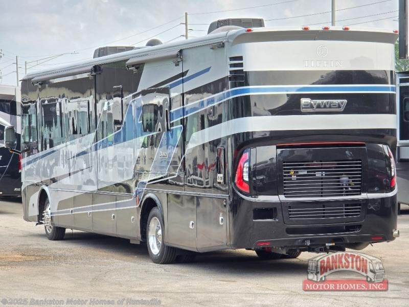 Say hello to affordable luxury with the Byway Class A diesel motorhomes by Tiffin Motorhomes. Each model includes an Allison 2500 MH 6-speed automatic transmission for power you can feel, and a Freightliner XCS straight rail rear engine diesel chassis for a strong foundation. All of your power needs will be met with an 8.0kW Onan Quiet diesel generator, 2,000-watt Pure Sine wave inverter, and (4) 6-volt, 230-amp hours flooded lead-acid house batteries. A Truma AquaGo comfort instant water heater is a feature you won't want to travel without, and the Spyder controls multiplex system keeps you in control of your units functions. It won't be hard to find luxury features inside, like the handcrafted overhead cabinetry, solid surface countertops, full tile backsplash in the kitchen, and Ultrafabrics Montage captain's seats. The driver will also love the 7" high-def LED multichannel monitor for the side-view and back up cameras plus an in-dash navigation system to help you arrive at your destination. The Lippert On-The-Go ladder is now standard, and the optional Starlink prep means you can work while you're on the road if you choose!