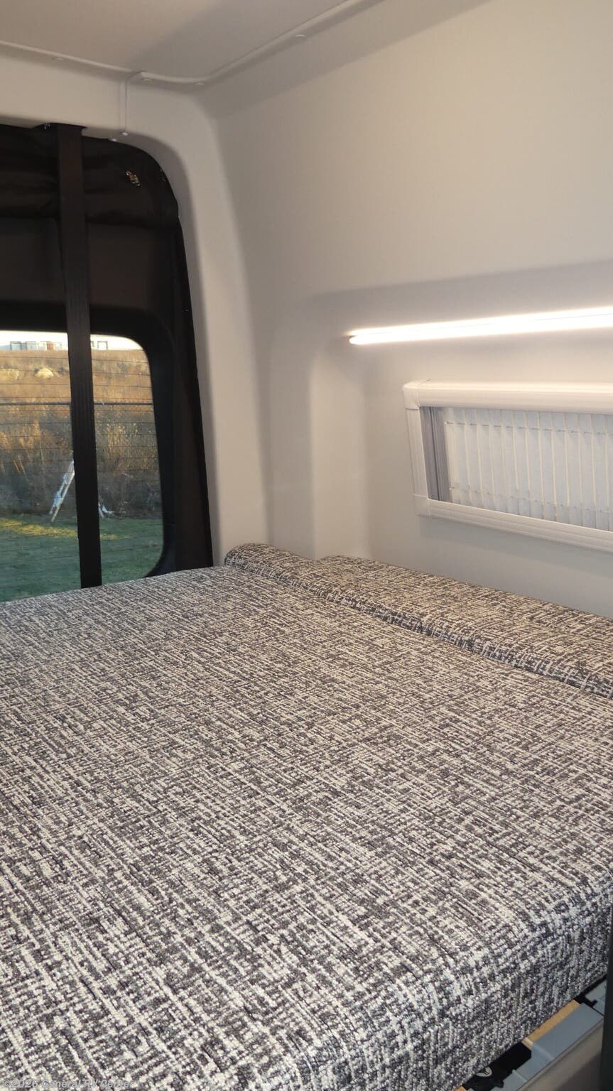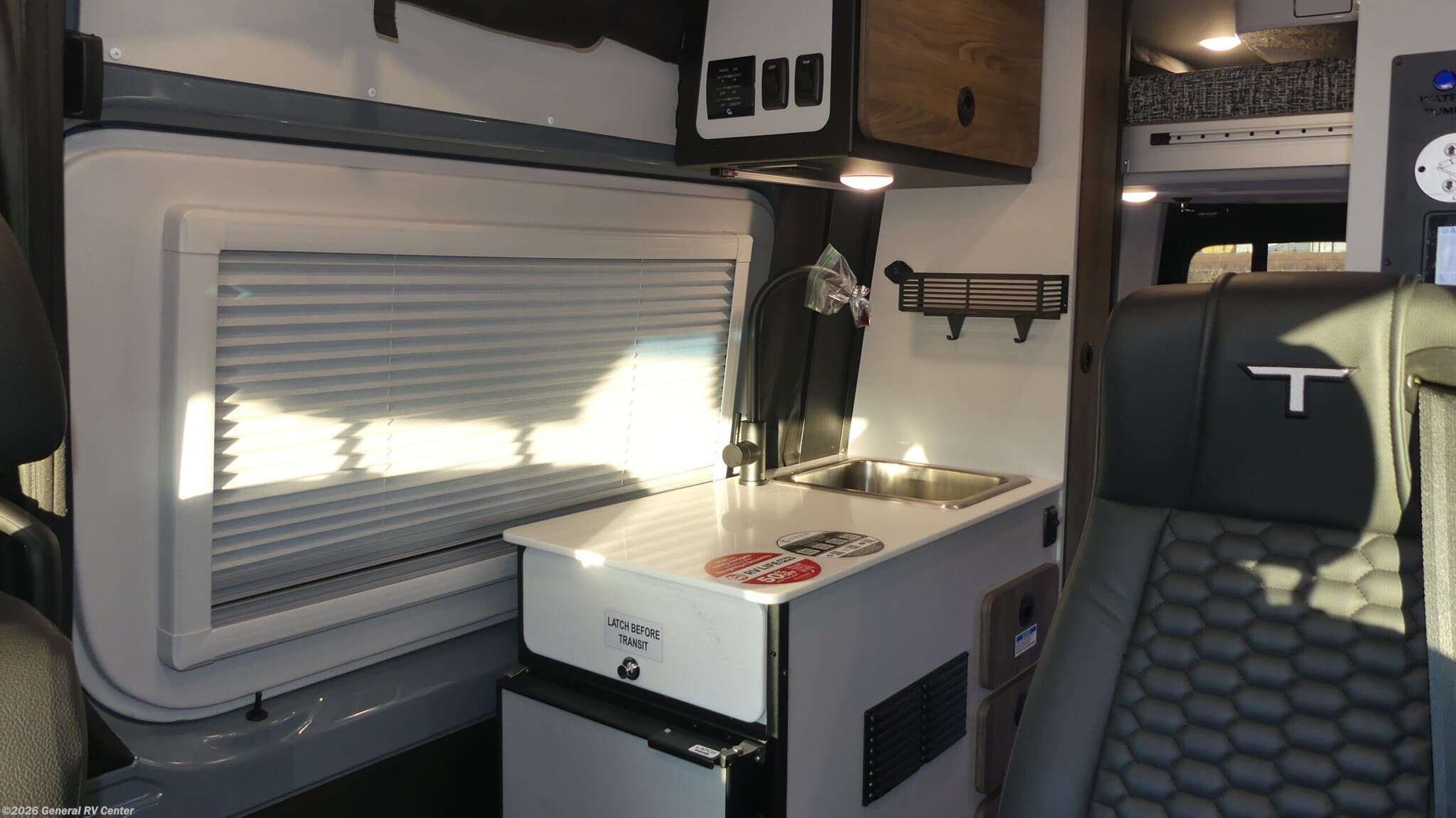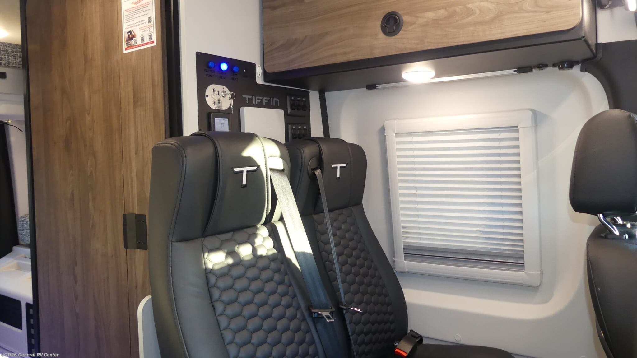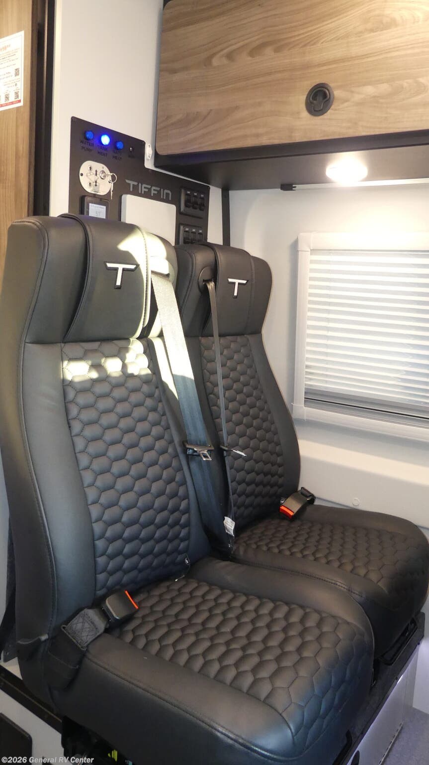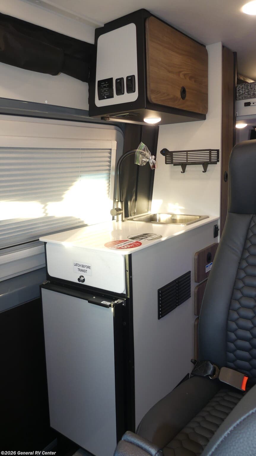 Tiffin Motorhomes GH1 Class B diesel motorhome highlights: 49" x 79" Gear Garage Below Power Bed Wet Bath Pantry All-Wheel Drive Pick a place, any place, and start packing. This off-road capable diesel van features a 49" x 79" gear garage beneath the power lift bed where you can store camp chairs, paddle boards for the lake, outdoor games and plenty of hiking gear. The on-board wet bath will keep you fresh and clean, and you can easily whip up meals and snacks in the kitchen with a single-burner induction cooktop and refrigerator beneath the counter for your perishables. There is also a sink for cleaning up and a removable counter extension. Both front driver and passenger seats swivel to the back so you'll have plenty of seating even with company. At night, the power lift bed will allow you to get a great night's rest so you can enjoy it all again the next day! The GH1 by Tiffin is the perfect couples coach that can take you just about anywhere you dream to go. The all-wheel drive chassis is equipped with a Fox Shock suspension package so that you can handle any type of terrain. You will enjoy on-board solar, climate controls with wall-mounted thermostat that features a built-in temperature sensor to keep you comfortable so you can go off the beaten path and stay awhile. Solid surface countertops are easy to clean and the Premium hardwood Plywood with high-pressure laminate lower cabinets pairs nicely with the grey nickel plate thermoplastic polyolefin flooring. Enjoy cooking meals using the portable single-burner induction cooktop and 12-volt 3.1 cu. ft. refrigerator freezer with an integrated whiteboard for your perishables. You are going to love traveling in this class B diesel adventure van that will take you anywhere, even a little off-road!