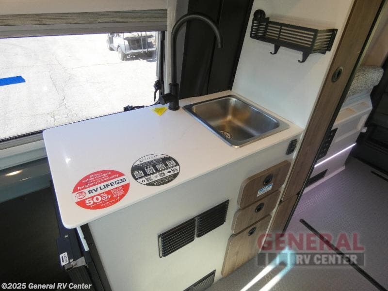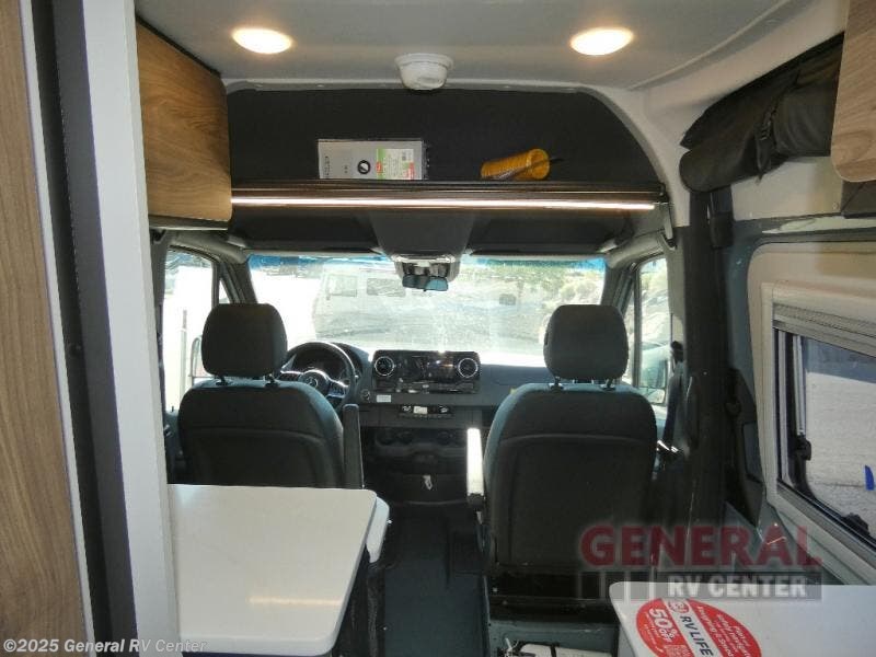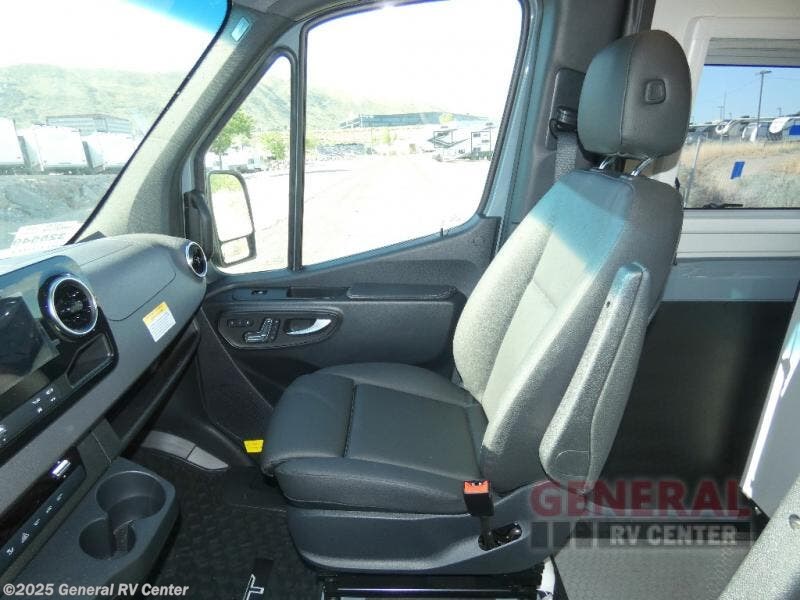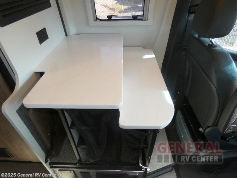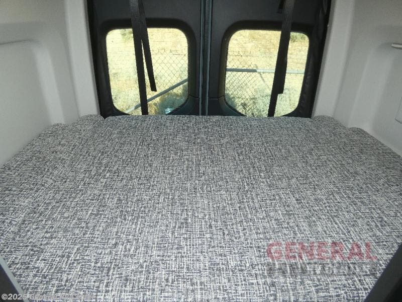 Pick a place, any place, and start packing. This off-road capable diesel van features a 49" x 79" gear garage beneath the power lift bed where you can store camp chairs, paddle boards for the lake, outdoor games and plenty of hiking gear. The on-board wet bath will keep you fresh and clean, and you can easily whip up meals and snacks in the kitchen with a single-burner induction cooktop and refrigerator beneath the counter for your perishables. There is also a sink for cleaning up and a removable counter extension. A jump seat and removable wall mounted swivel table behind the driver's seat can accommodate you for meals or a game of cards. Both front driver and passenger seats swivel to the back so you'll have plenty of seating even with company. At night, the power lift bed will allow you to get a great night's rest so you can enjoy it all again the next day!