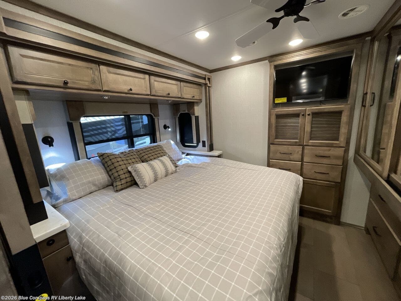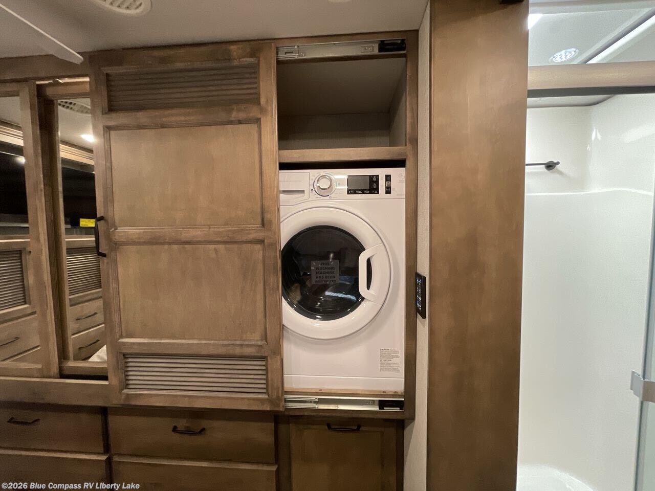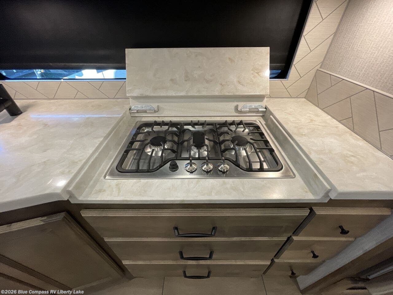 You will feel right at home in this motorhome! It features a rear private bedroom with a king bed slide that has an egress window behind it, a wardrobe with drawers, and an optional combo washer/dryer. Just outside the bedroom is the split-style bath where one person can freshen up in the shower while another uses the private toilet and sink. After you have prepared a delicious meal with the three burner liquid propane cooktop, you can enjoy it at the booth dinette-sleeper. The dinette can become your guests' sleeping space at night, along with the flip and fold sofa bed or the optional drop-down front bunk! You can also choose the optional theater seating if you don't need the additional sleeping space. This model also includes a living area TV with an optional fireplace below, a 20 cu. ft. stainless steel residential refrigerator with a top freezer, and many more interior comforts!