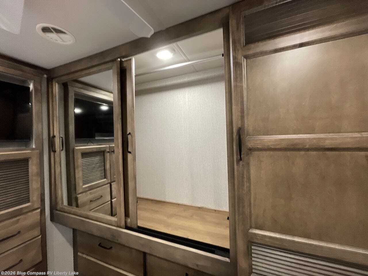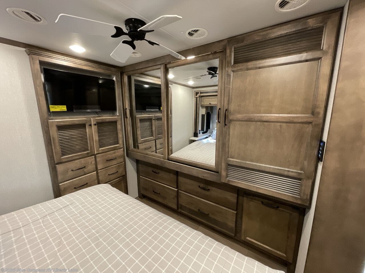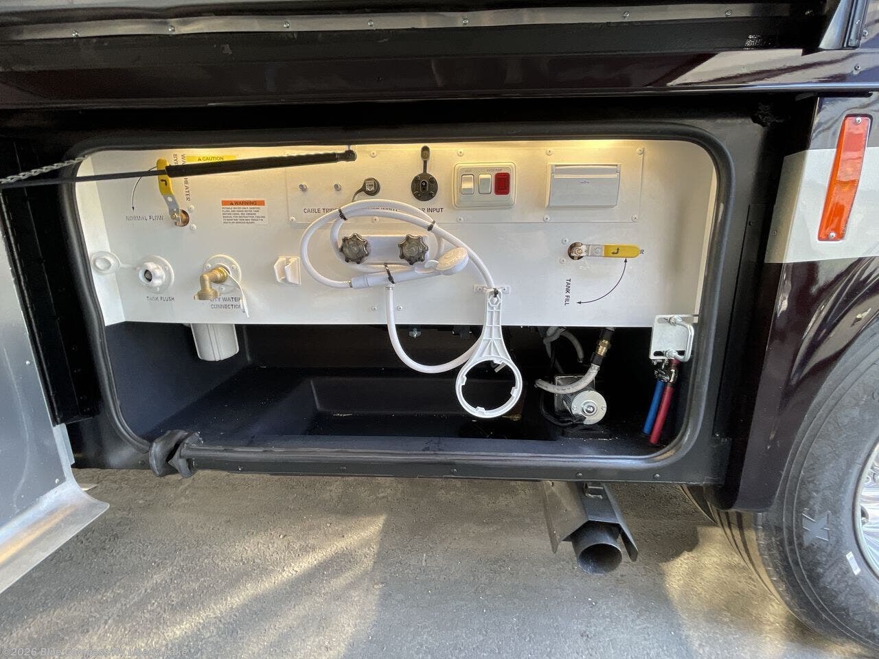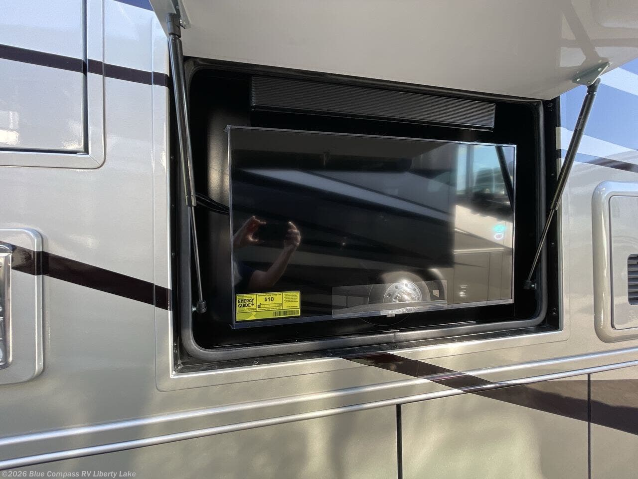 You will feel right at home in this motorhome! It features a rear private bedroom with a king bed slide that has an egress window behind it, a wardrobe with drawers, and an optional combo washer/dryer. Just outside the bedroom is the split-style bath where one person can freshen up in the shower while another uses the private toilet and sink. After you have prepared a delicious meal with the three burner liquid propane cooktop, you can enjoy it at the booth dinette-sleeper. The dinette can become your guests' sleeping space at night, along with the flip and fold sofa bed or the optional drop-down front bunk! You can also choose the optional theater seating if you don't need the additional sleeping space. This model also includes a living area TV with an optional fireplace below, a 20 cu. ft. stainless steel residential refrigerator with a top freezer, and many more interior comforts!