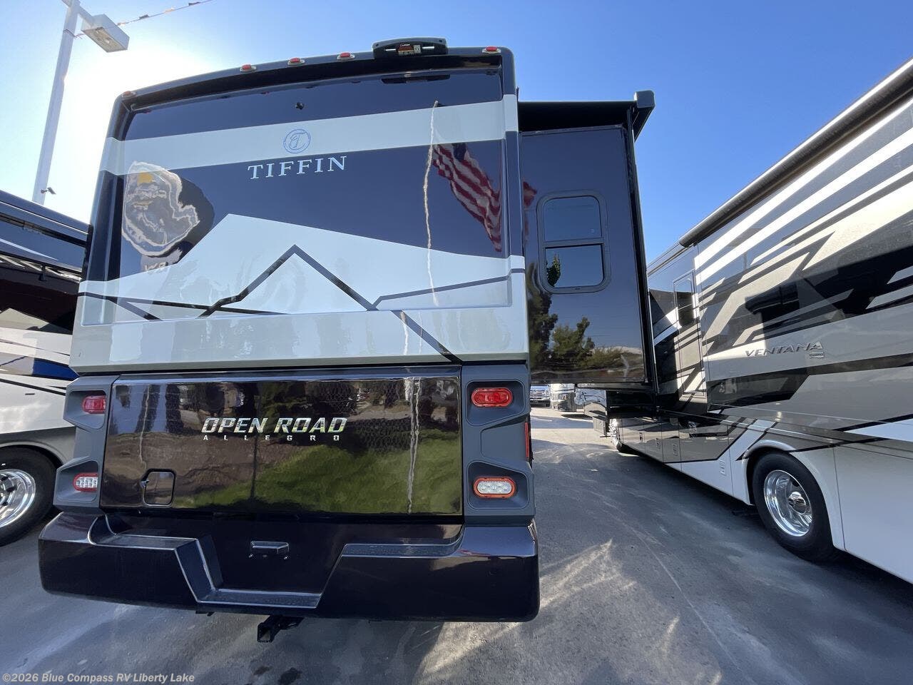 Every one of these Tiffin Motorhomes Open Road Allegro Class A gas motorhomes are ready to go when ever you are! A Ford 7.3L V8 engine powers these units and a durable, yet lightweight, tubular aluminum wall skeleton holds them together. They are beautifully designed with handcrafted cabinetry and a panoramic kitchen galley window for breathtaking views. A couple electronic features you will appreciate include an exterior TV with a soundbar and a Spyder multiplex system, plus there are two 13.5k BUT AC units to keep you cool on those hot summer days. The color back-up camera and side-view cameras will make parking easier than ever, and you'll appreciate hydraulic leveling jacks with a control panel for hassle-free set up. You'll love the new decor options, along with the new Generation 12 exterior color paint options, plus a 10" detachable touchscreen with a media center!
