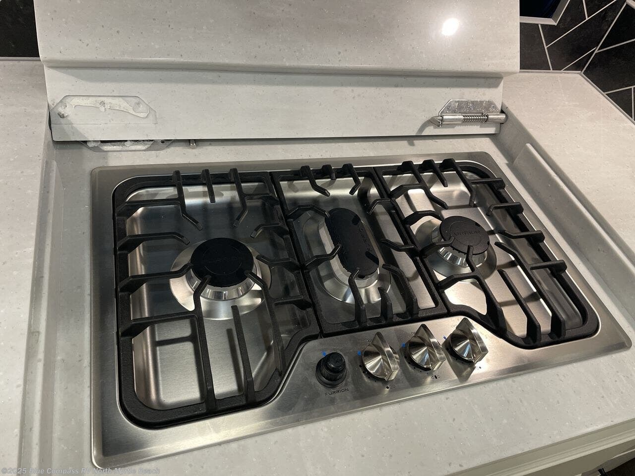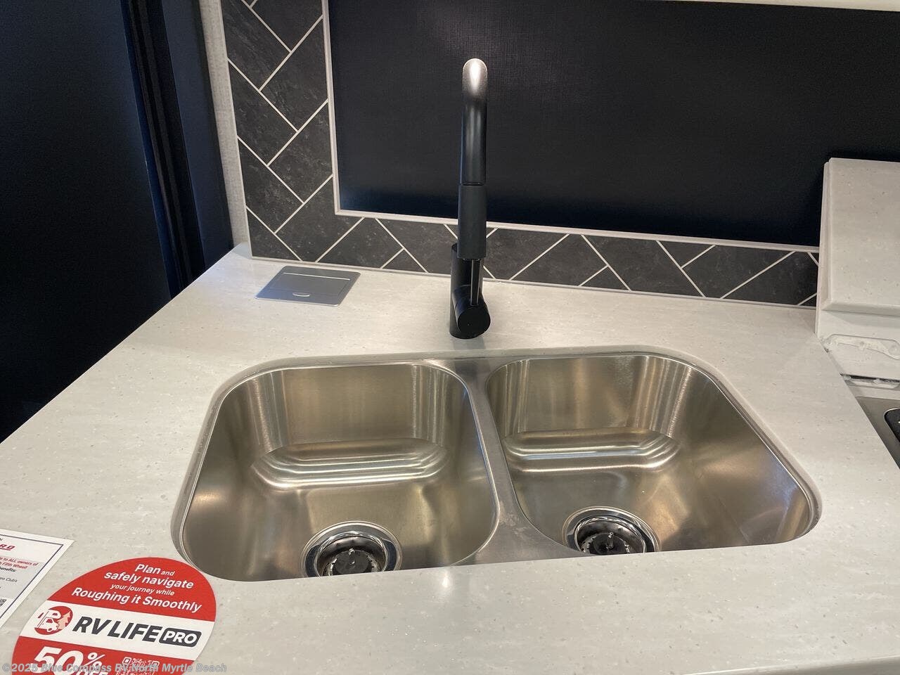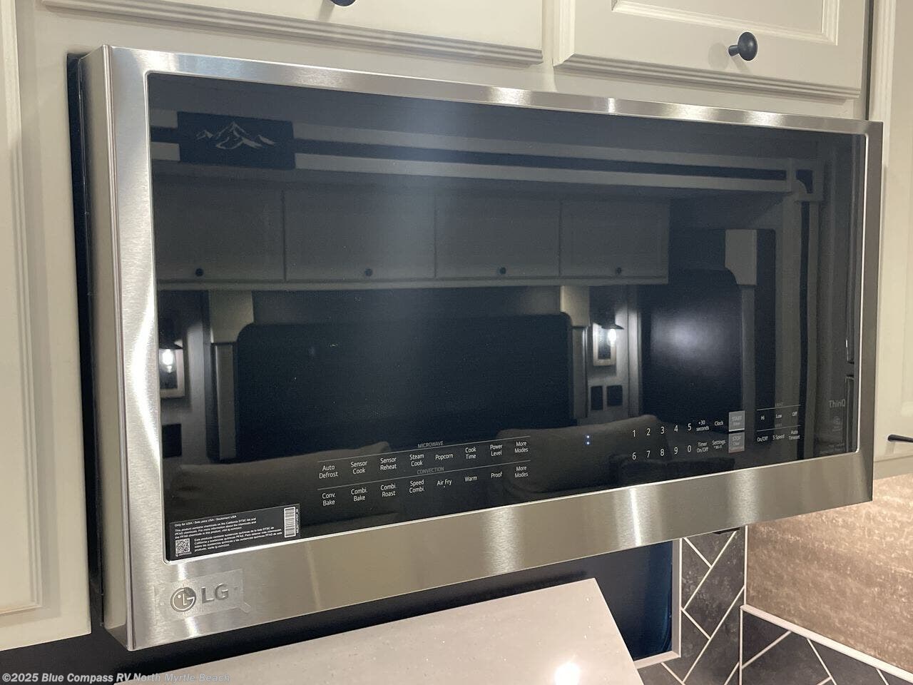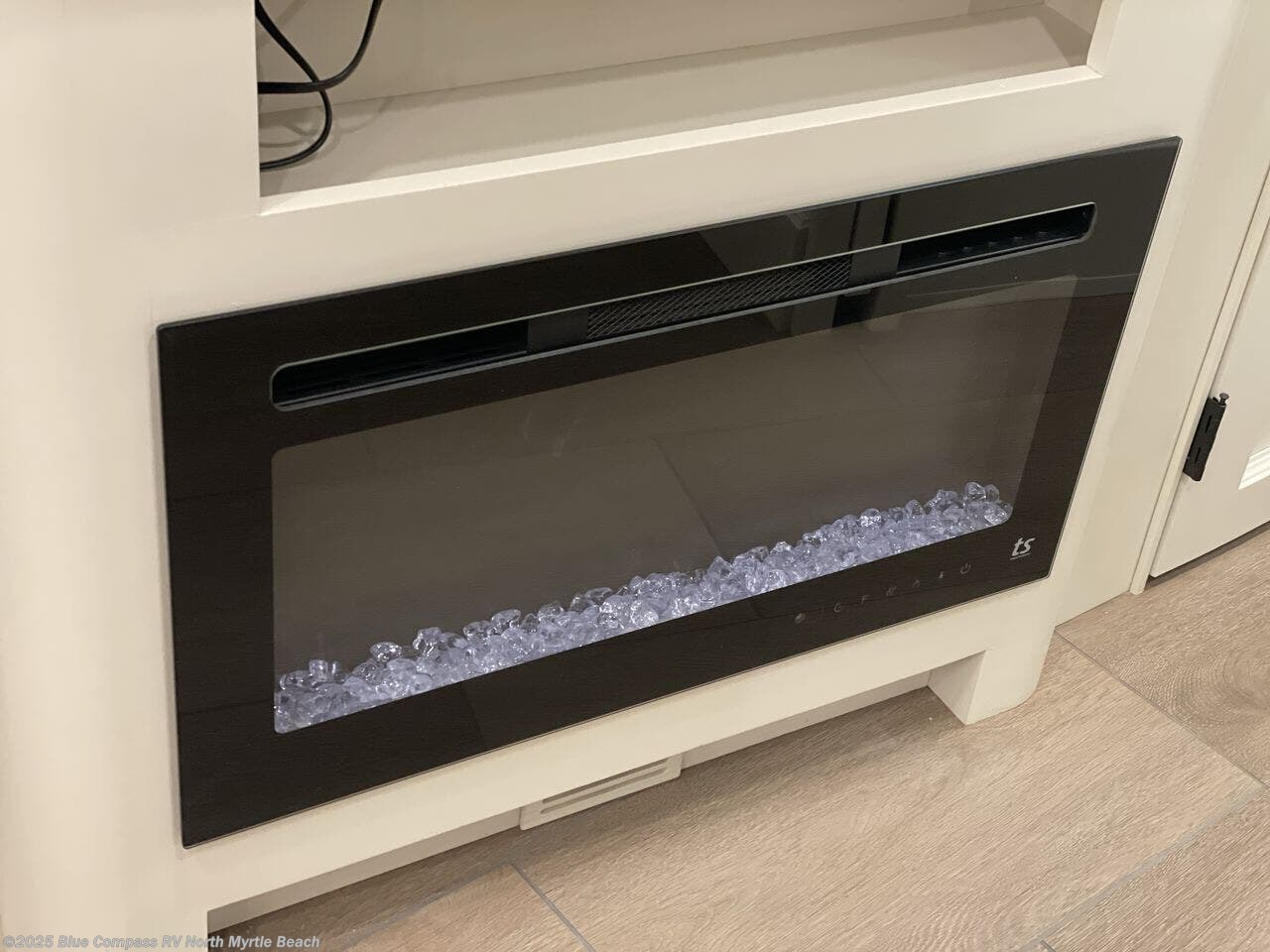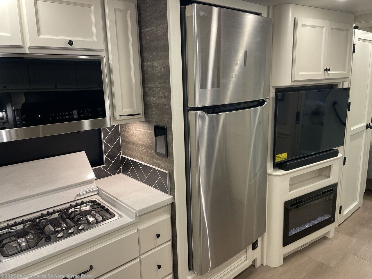 You will feel right at home in this motorhome! It features a rear private bedroom with a king bed slide that has an egress window behind it, a wardrobe with drawers, and an optional combo washer/dryer. Just outside the bedroom is the split-style bath where one person can freshen up in the shower while another uses the private toilet and sink. After you have prepared a delicious meal with the three burner liquid propane cooktop, you can enjoy it at the booth dinette-sleeper. The dinette can become your guests' sleeping space at night, along with the flip and fold sofa bed or the optional drop-down front bunk! You can also choose the optional theater seating if you don't need the additional sleeping space. This model also includes a living area TV with an optional fireplace below, a 20 cu. ft. stainless steel residential refrigerator with a top freezer, and many more interior comforts!