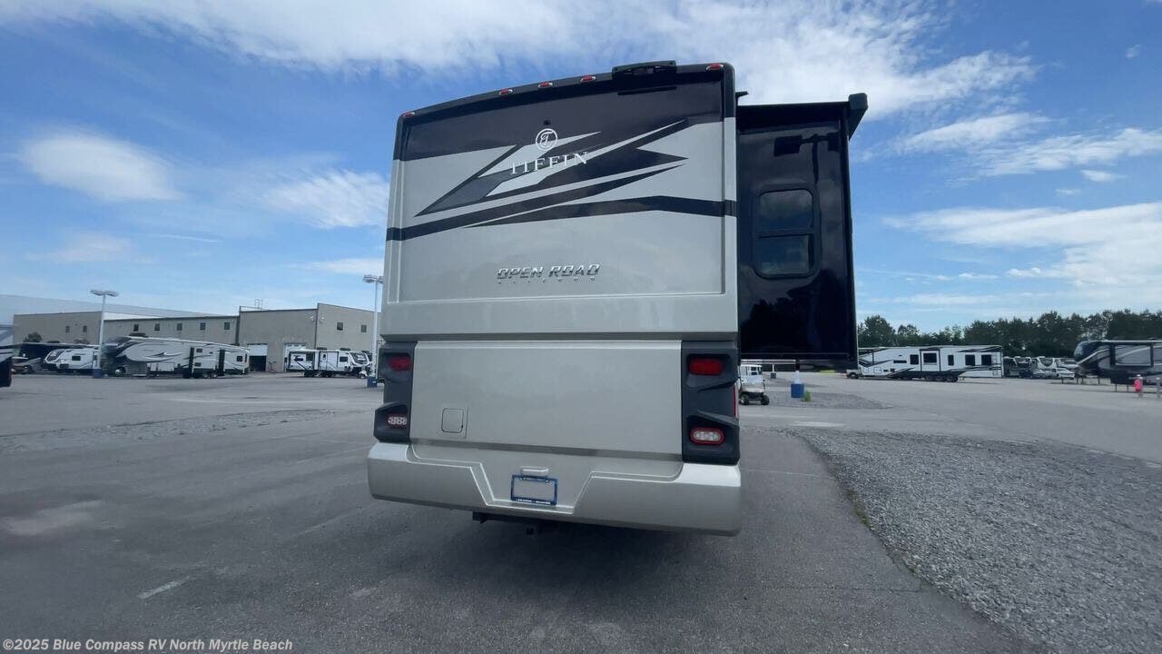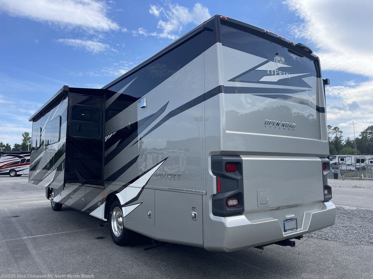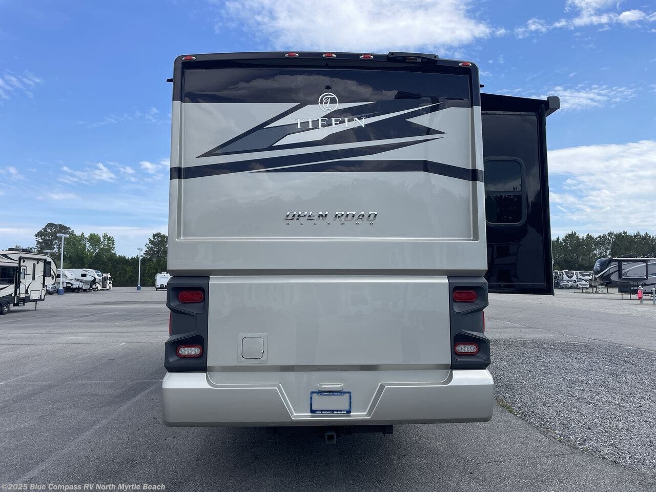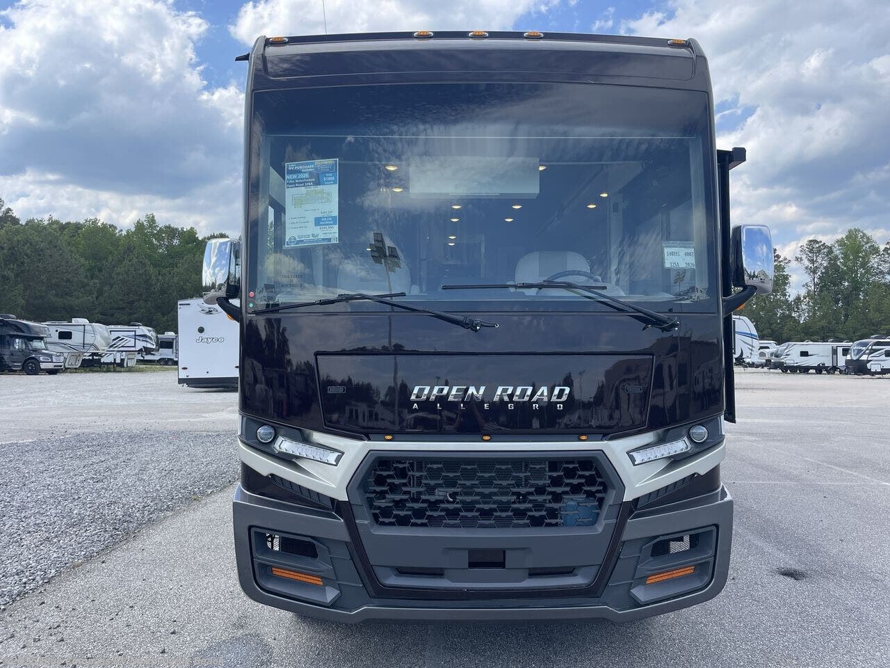 Every one of these Tiffin Motorhomes Open Road Allegro Class A gas motorhomes are ready to go when ever you are! A Ford 7.3L V8 engine powers these units and a durable, yet lightweight, tubular aluminum wall skeleton holds them together. They are beautifully designed with handcrafted cabinetry and a panoramic kitchen galley window for breathtaking views. A couple electronic features you will appreciate include an exterior TV with a soundbar and a Spyder multiplex system, plus there are two 13.5k BUT AC units to keep you cool on those hot summer days. The color back-up camera and side-view cameras will make parking easier than ever, and you'll appreciate hydraulic leveling jacks with a control panel for hassle-free set up. New features include an exterior ladder now standard, new Generation 11 paint schemes, optional Starlink prep, and more!