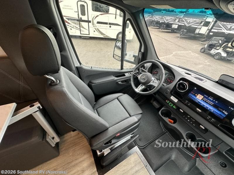 If you're an outdoor enthusiast who doesn't want to sacrifice comfort, this coach is for you! The premium Mercedes captain's seats include heat for added comfort plus they can swivel around to become part of the living area seating. You can make lunch on the single burner portable induction stove or in the stainless steel microwave/air fryer. There is a sleeper sofa for cozy seating and additional sleeping space for a guest, or you can choose the optional L-shaped lounge if you're wanting a table. The full residential-style wet bath includes a roof vent fan, towel and toilet paper holders, an oversized mirror, plus a large black aluminum under-sink cabinet with a GFCI outlet to plug in any accessories you may need. Head to the rear of this coach to find the 32" x 76" twin beds with a nightstand in between, or you can convert them into one king-size bed. There is also an overhead cabinet and dual pull-out closets so you both have a place for your things!