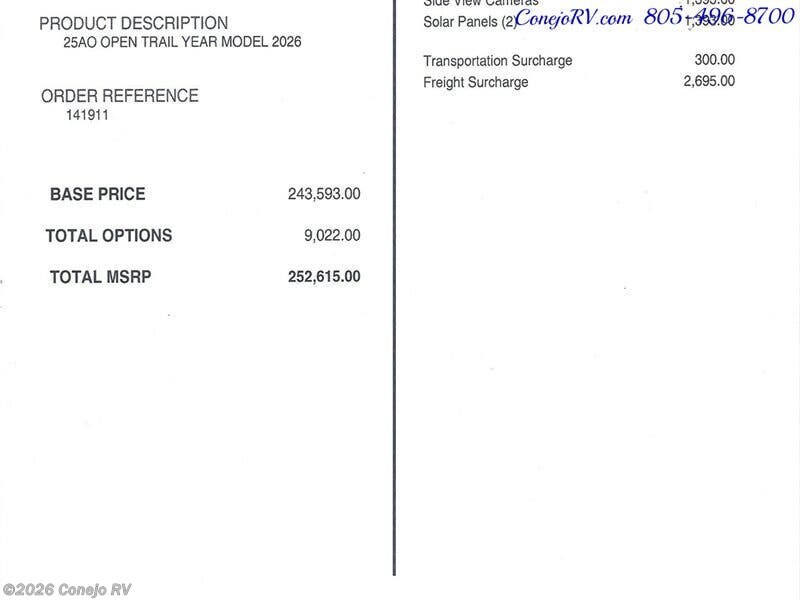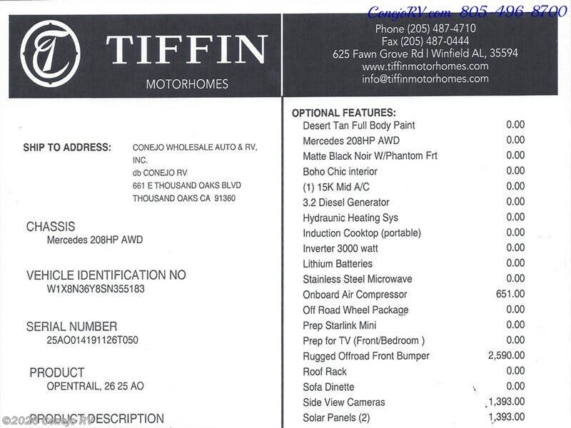 Request More Info on this 2026 Tiffin Open Trail 25AO Offered for sale by Conejo RV