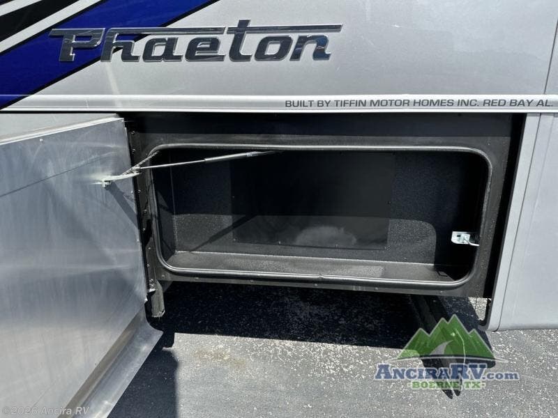 Each one of these Tiffin Motorhomes Phaeton Class A diesel motorhomes offer high-end elegance at every turn! A PowerGlide XC raised rail rear engine diesel chassis will give you a smooth ride for every mile, and each coach comes with a Cummins L9 450 HP engine to power your journeys. There is a 10.0 kW Onan Quiet Diesel generator, three 15k BTU A/C units, and a Firefly integrations Mira module to keep you connected wherever you go. Outside, you'll appreciate the custom rock guard to protect your unit, along with full-body paint with four layers of clear coat and high-performance protection film on the front cap and select areas. A Girard power awning with LED lights also comes standard plus a fiberglass reinforced plastic basement floor, an exterior TV, and more. If you're traveling with pets, the optional Pet Perks Package can be added that includes a pet dish holder and a leash holder at the entrance door for added convenience!