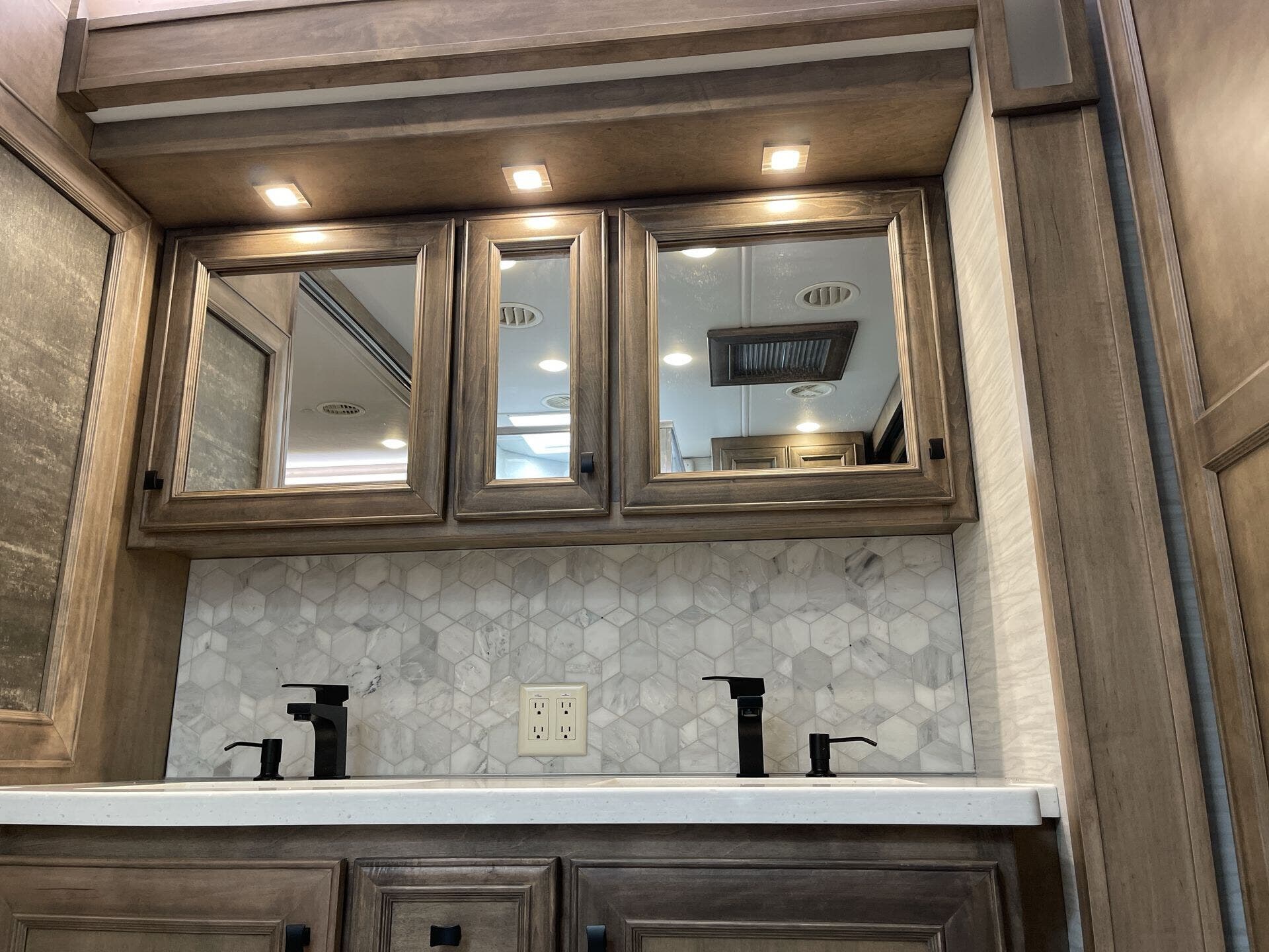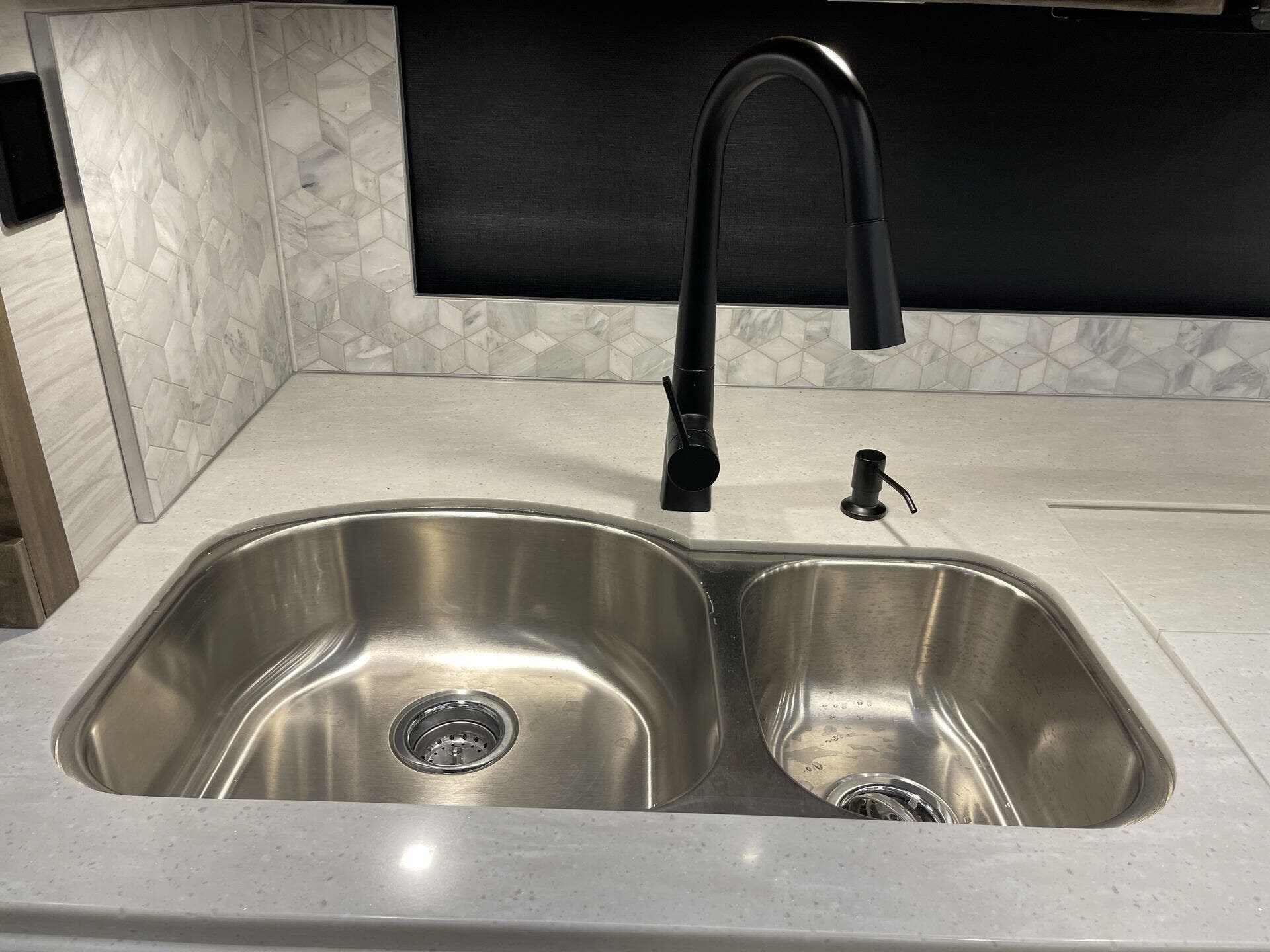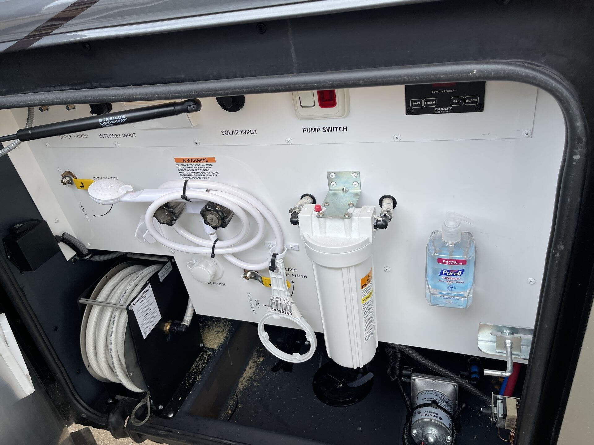 - Water capacities of 100 gallons fresh, 55 black, and 100 grey water tanks