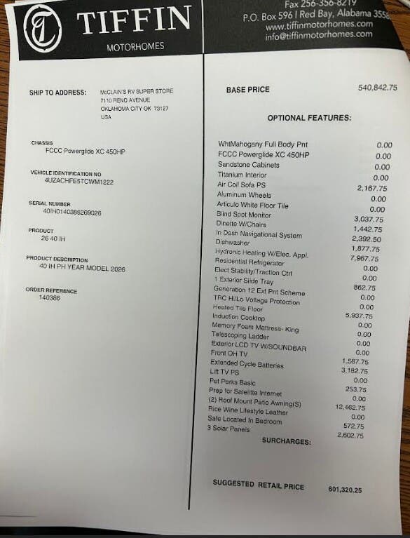 Request More Info on this 2026 Tiffin Phaeton 40IH Offered for sale by McClain's RV Oklahoma City