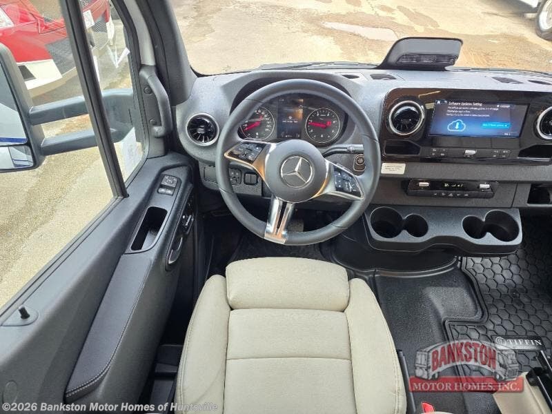With any Wayfarer Class C diesel coach by Tiffin Motorhomes you will enjoy luxury features both inside and out. There are one-piece molded gel-coat fiberglass front and rear caps plus full-body paint and two layers of clear coat for added protection. The Mercedes-Benz 4500XD dual wheel cutaway chassis provides a strong foundation, and the 2.0L V4 turbo diesel high output 208 HP diesel engine with 332 lb-ft torque will keep you going adventure after adventure! You will love the drive just as much as the destination with adjustable captain's seats that are also heated, intelligent navigation, and a Mercedes-Benz MBUX multimedia system with a 10.25" touchscreen. Wherever you decide to roam, you will be met with interior comforts that include handcrafted overhead cabinetry, solar and privacy shades, solid surface galley countertops and task lighting, and a wardrobe in the bedroom to keep your space tidy.