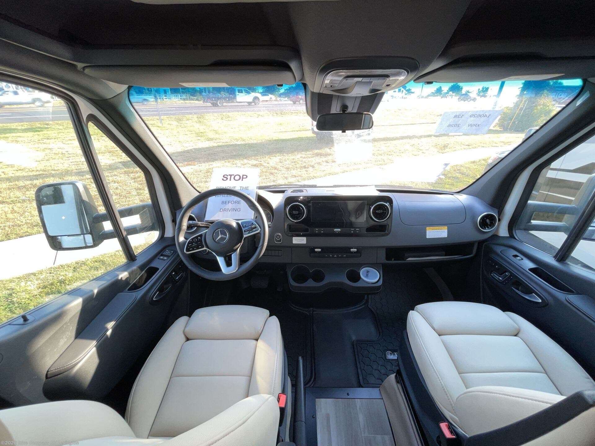 With any Wayfarer Class C diesel coach by Tiffin Motorhomes you will enjoy luxury features both inside and out. There are one-piece molded gel-coat fiberglass front and rear caps plus full-body paint and two layers of clear coat for added protection. The Mercedes-Benz 3500XD dual wheel cutaway chassis provides a strong foundation, and the 2.0L V4 turbo diesel high output 208 HP diesel engine with 332 lb-ft torque will keep you going adventure after adventure! You will love the drive just as much as the destination with adjustable captain's seats that are also heated, intelligent navigation, and a Mercedes-Benz MBUX multimedia system with a 10.25" touchscreen. Wherever you decide to roam, you will be met with interior comforts that include handcrafted overhead cabinetry, solar and privacy shades, solid surface galley countertops and task lighting, and a wardrobe in the bedroom to keep your space tidy.