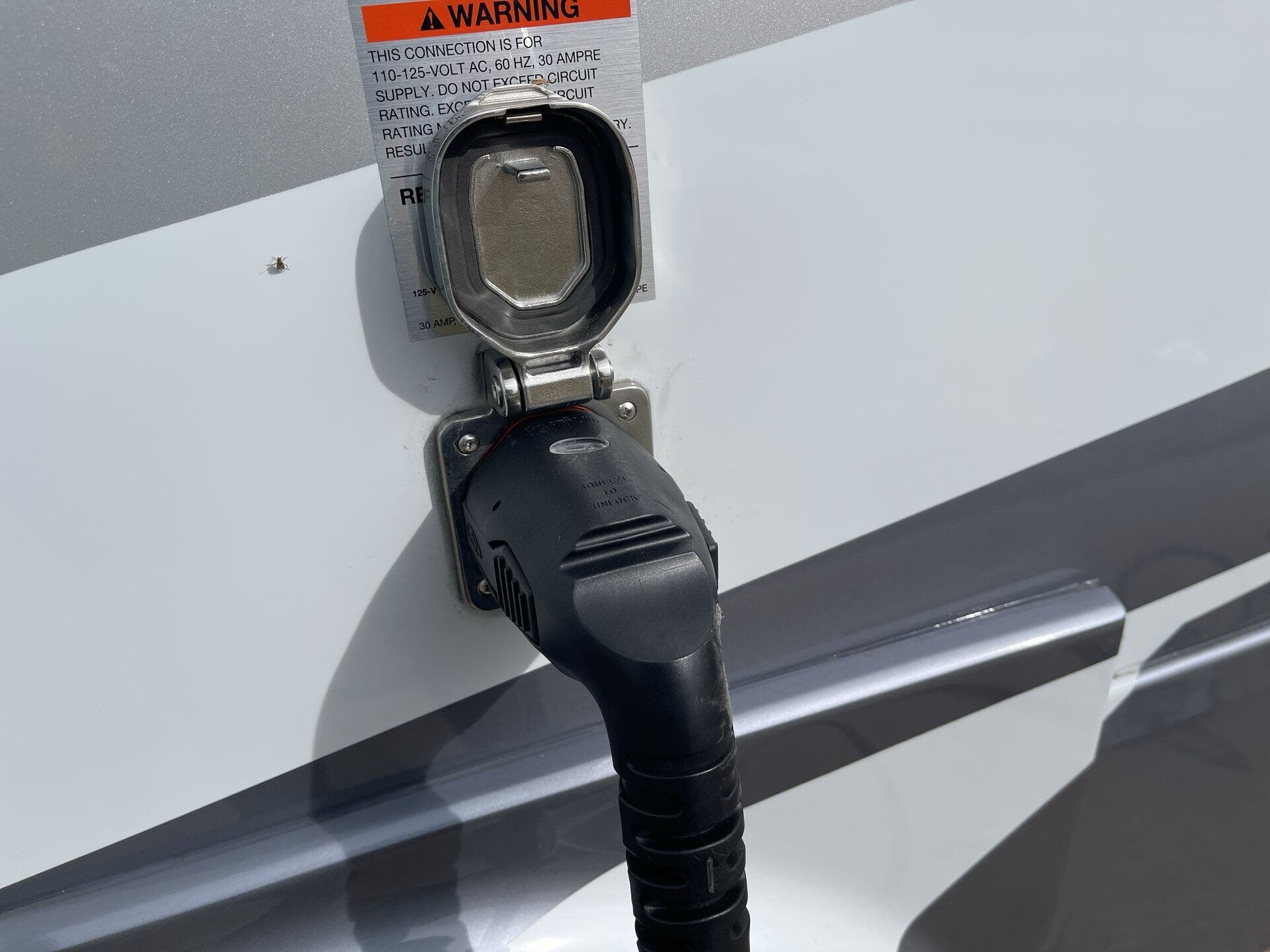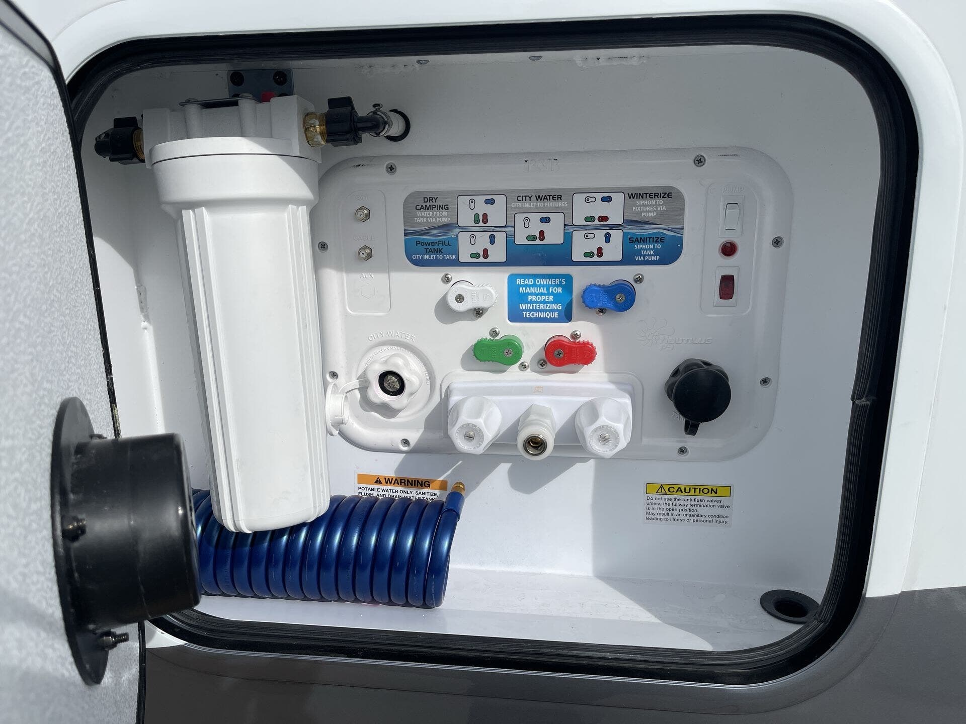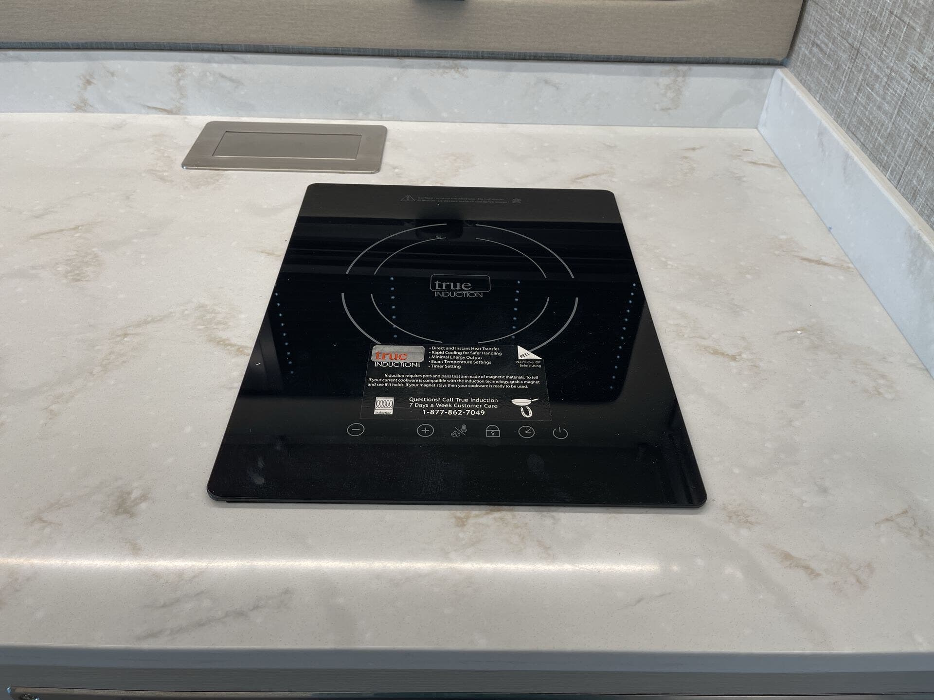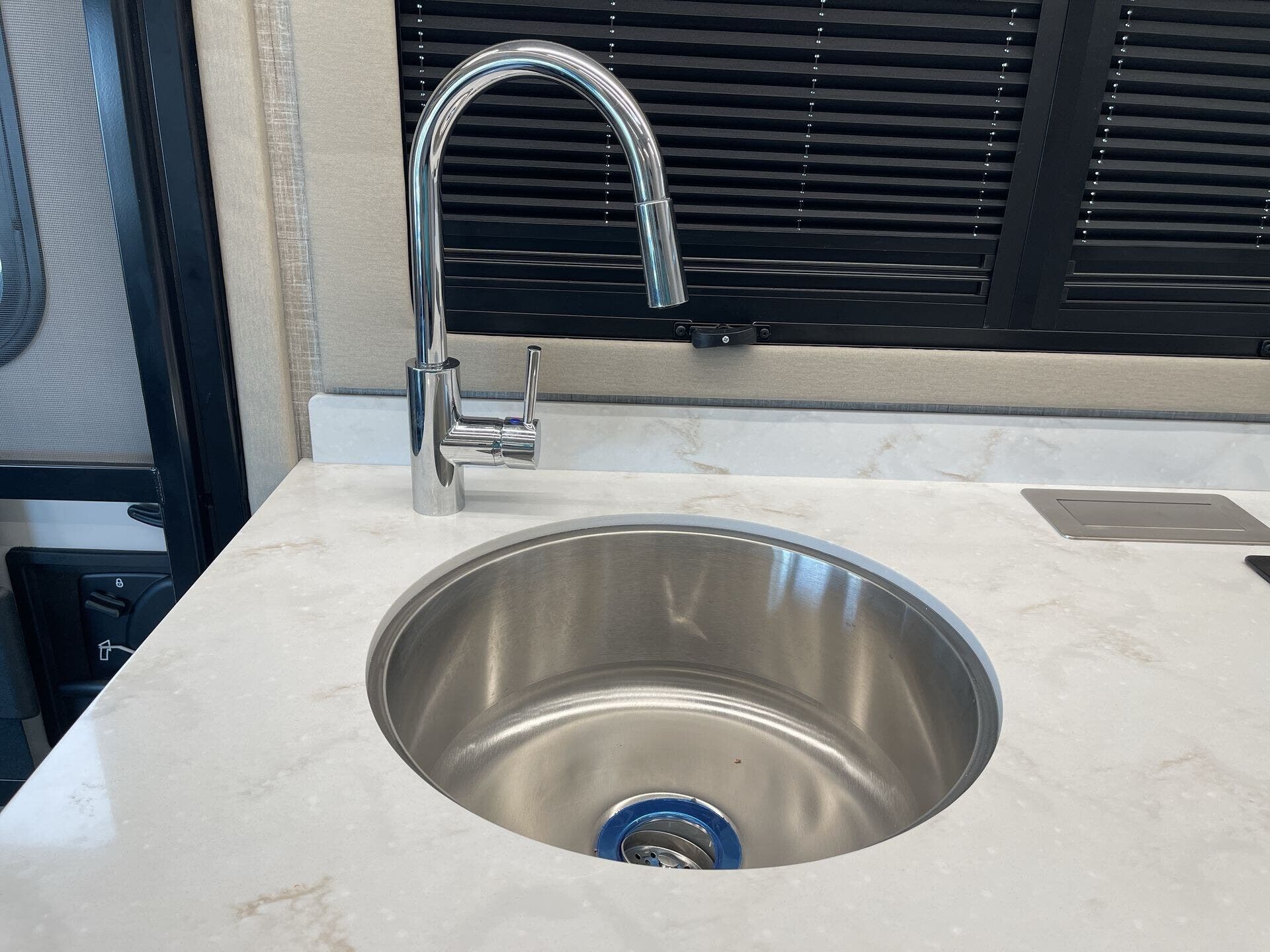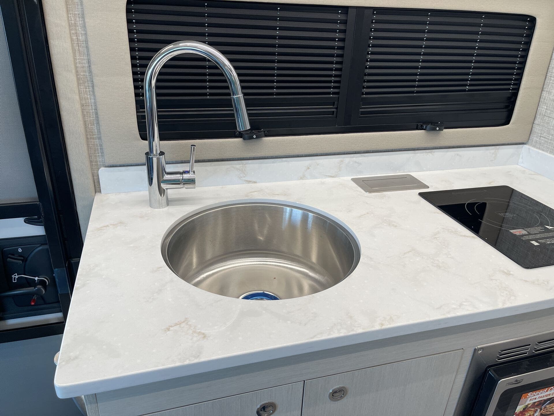 Stay comfortable with a dedicated 15,000 BTU air conditioner and a water system supporting 32 gallons of fresh water, complemented by black and grey water capacities of 26 and 30 gallons respectively. Designed to provide relaxation after a day of exploration, the interior boasts a clean, modern aesthetic with ample space for relaxation and socialization.