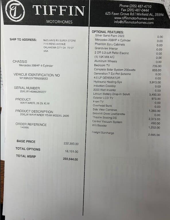 Request More Info on this 2026 Tiffin Wayfarer 25XLW Offered for sale by McClain's RV Oklahoma City