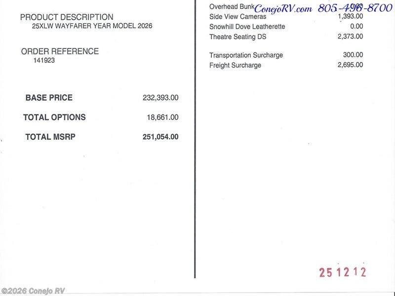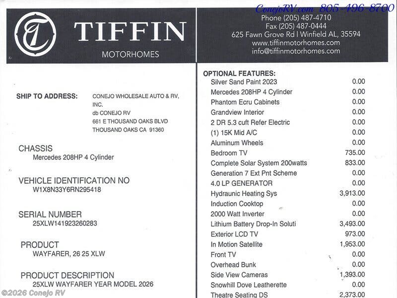 Request More Info on this 2026 Tiffin Wayfarer 25XLW Offered for sale by Conejo RV