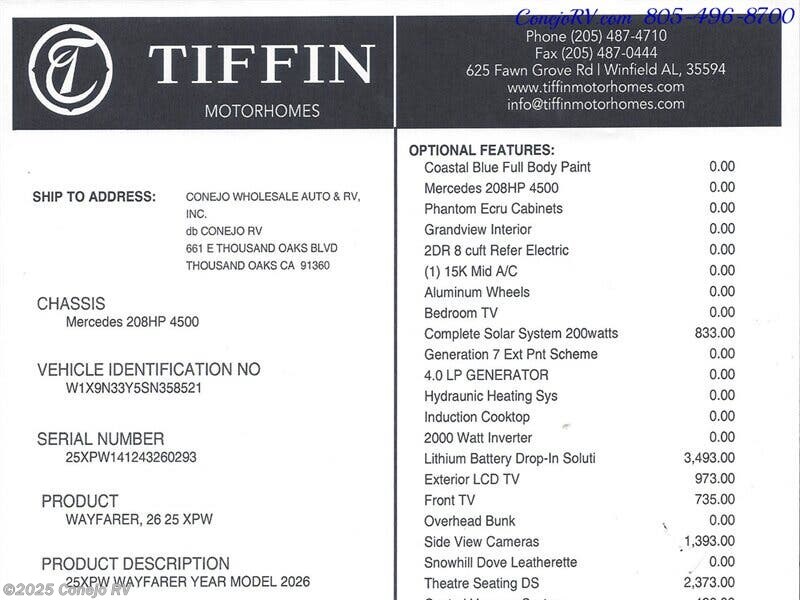 Request More Info on this 2026 Tiffin Wayfarer 25XPW Offered for sale by Conejo RV