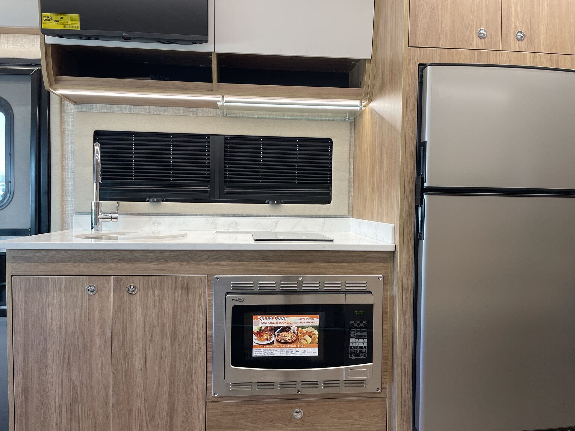 Convection Microwave, Refrigerator, Stove Top Burner, Water Heater -