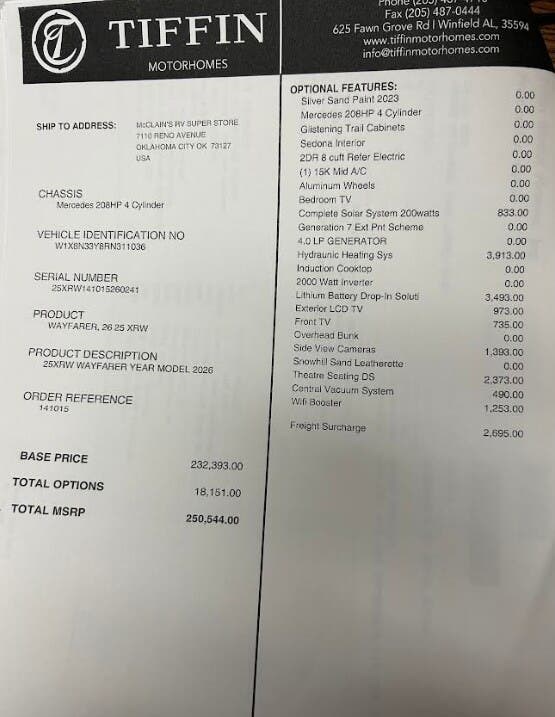 Request More Info on this 2026 Tiffin Wayfarer 25XRW Offered for sale by McClain's RV Oklahoma City