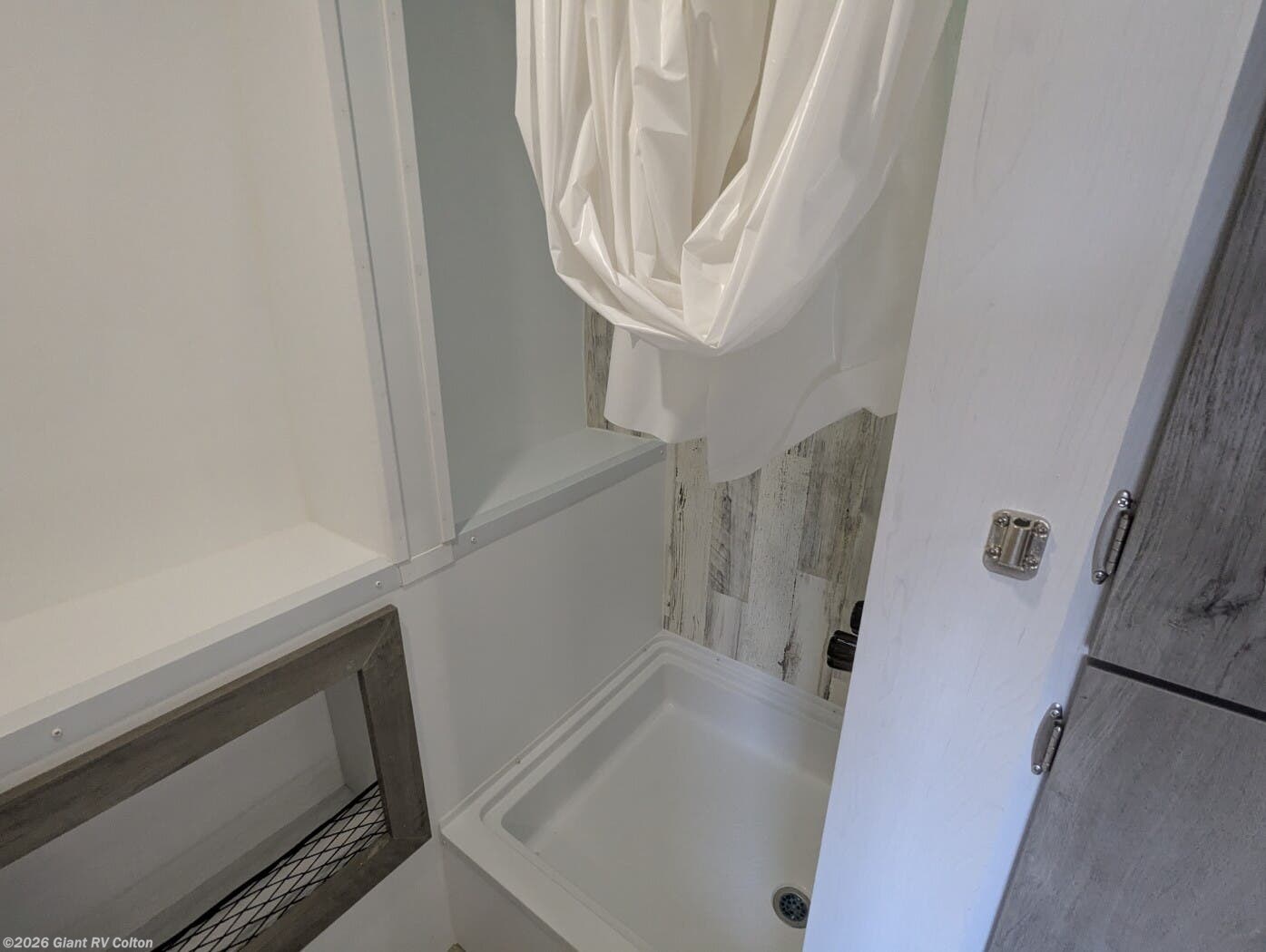 - Compact & Cozy Layout: Sleeps up to 3 with a front full bed, booth dinette, and a rear bathroom with a 24” x 25” shower for camping comfort.