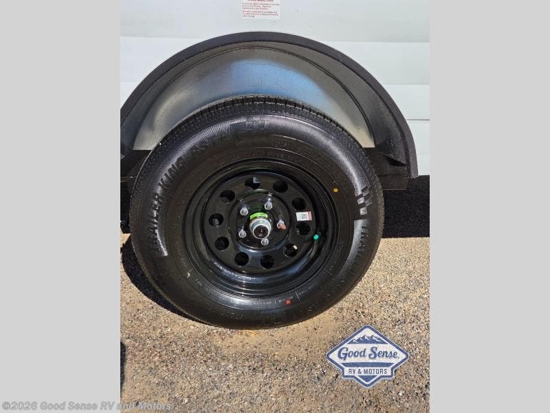 3,5003 comma 500 3,500lbs. Key features include a 12V 7-cu ft refrigerator, side-mount A/C and solar prep, a tankless water heater, and a dry bath with a queen bed and a motion-activated light. The exterior is equipped with a friction-hinge door, tinted windows, a walkable roof, and a roof rack with gear locker storage.